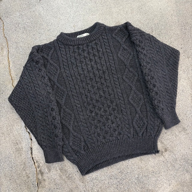 【ブランド】 INISFREE 【商品説明】 〜90年代頃、INISFREEのフィッシャーマンセーターです。 本日は今時期のインナーに最適なウールセーターをまとめてリリースいたします。 天然のウールで編まれたヴィンテージのセーターは、保温力はもちろんのこと、レトロさを感じさせる配色やシルエットが絶妙で、いい意味で決まりすぎない、この時期ついつい手にとってしまうジャンルになります。 こちらは〜90年代頃のINISFREE製の1着です。 いわゆるアランニットと呼ばれるデザインの個体です。 アランニットは、20世紀初頭にアラン諸島にて漁師の作業服として生まれました。 独特の手編みの柄は、家紋や豊漁をモチーフにデザインされている物で、家族代々受け継がれています。 そのため、不幸にも水難事故等で身元がわからなくなった際に、着用しているニットの柄でどこの家の漁師かを判別するのにも用いられたと言われております。 ナチュラルカラーが多いアランニットですが、ブラックに近いダークグレーが良い1枚です。 ややタイト目なシルエットで、ジャストでクラシックに着用いただけるサイズ感かと思います。 ニットの名産地アイルランド製でクオリティも間違いないです。 是非この機会にご検討ください。 【サイズ】 サイズ表記 - ※採寸値は平置き状態のものです 肩幅:約59(両肩の端から端までの直線の長さ) 身幅:約55.5(両脇の端から端までの長さ) 袖丈:約42.5(肩から袖口先までの直線の長さ) 着丈:約57(後襟の付け根から裾までの直線の長さ) ※多少の誤差はご了承下さい 着用モデル 178cm60kg 【カラー】 ダークグレー 【状態】 目立った傷や汚れのないグッドコンディションです。 ※ヴィンテージ商品で年代が古い為、使用感、微細な汚れ、小傷、多少の匂いなどがある可能性がございます。 完璧な状態ではありませんのでご了承下さい。 ご理解頂ける方のみご購入をご検討ください。 ヴィンテージ商品に関しての小傷や汚れ、古着特有の匂いでの返品は一切お断りしております。 商品の性質としてご理解いただきますようお願い致します。 他サイトでも出品していますので、突然売り切れとなる場合がございます。