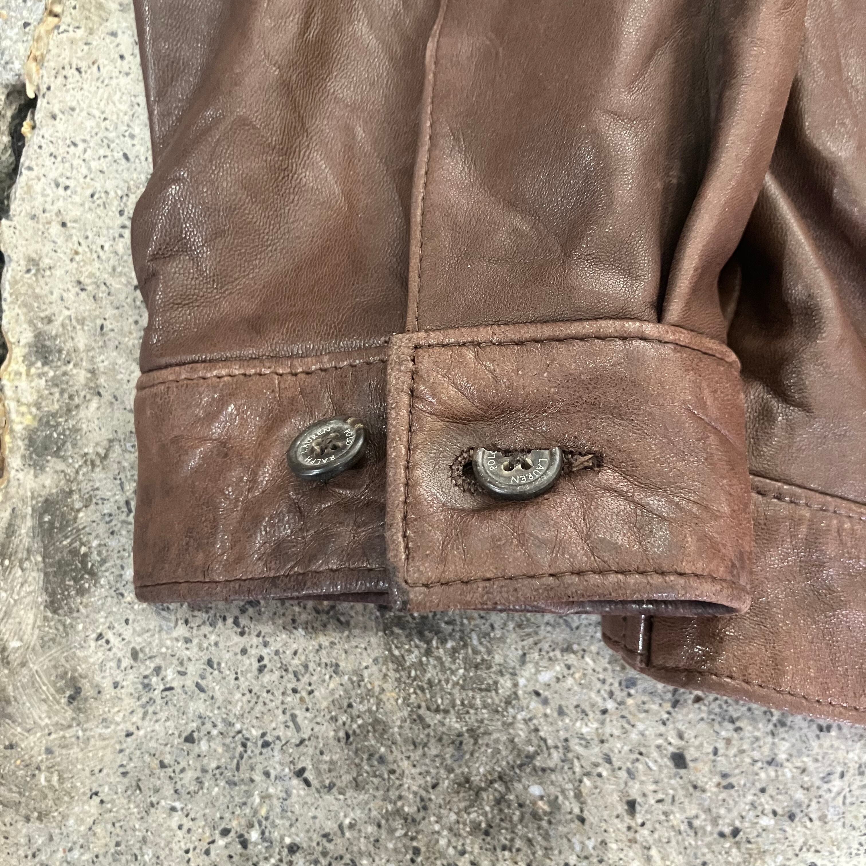 ライニングに一部汚れあり、左袖カフスボタンに割れありですが、ありがちなレザーの裂けもなく、まだまだ着用可能なコンディションです。