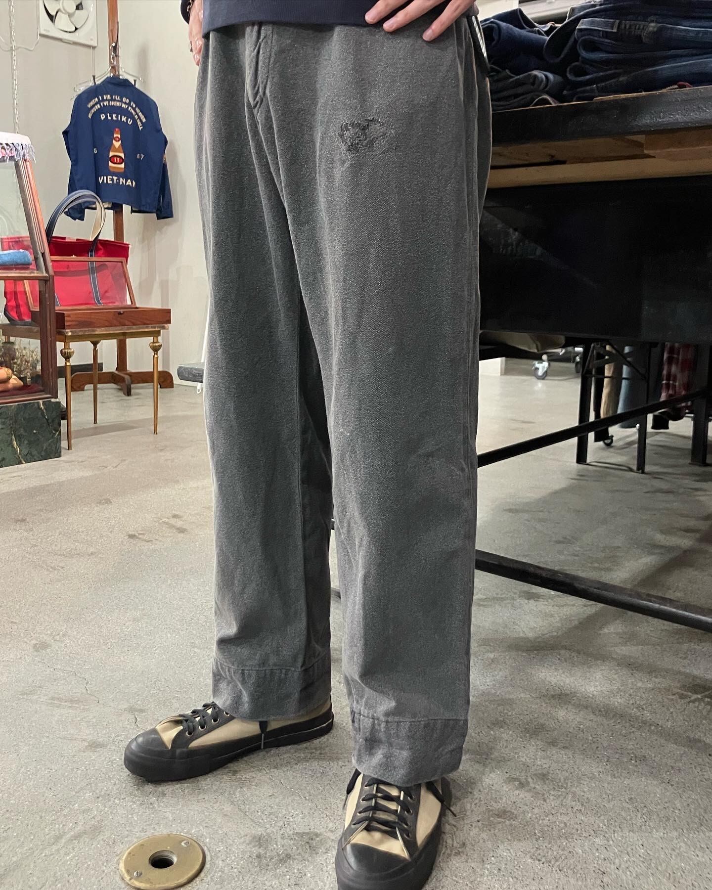 ワークウェアですので、かなりハードに履きこまれたのか、色も良い感じに褪色しており、また、リペアの雰囲気も抜群かと思います。