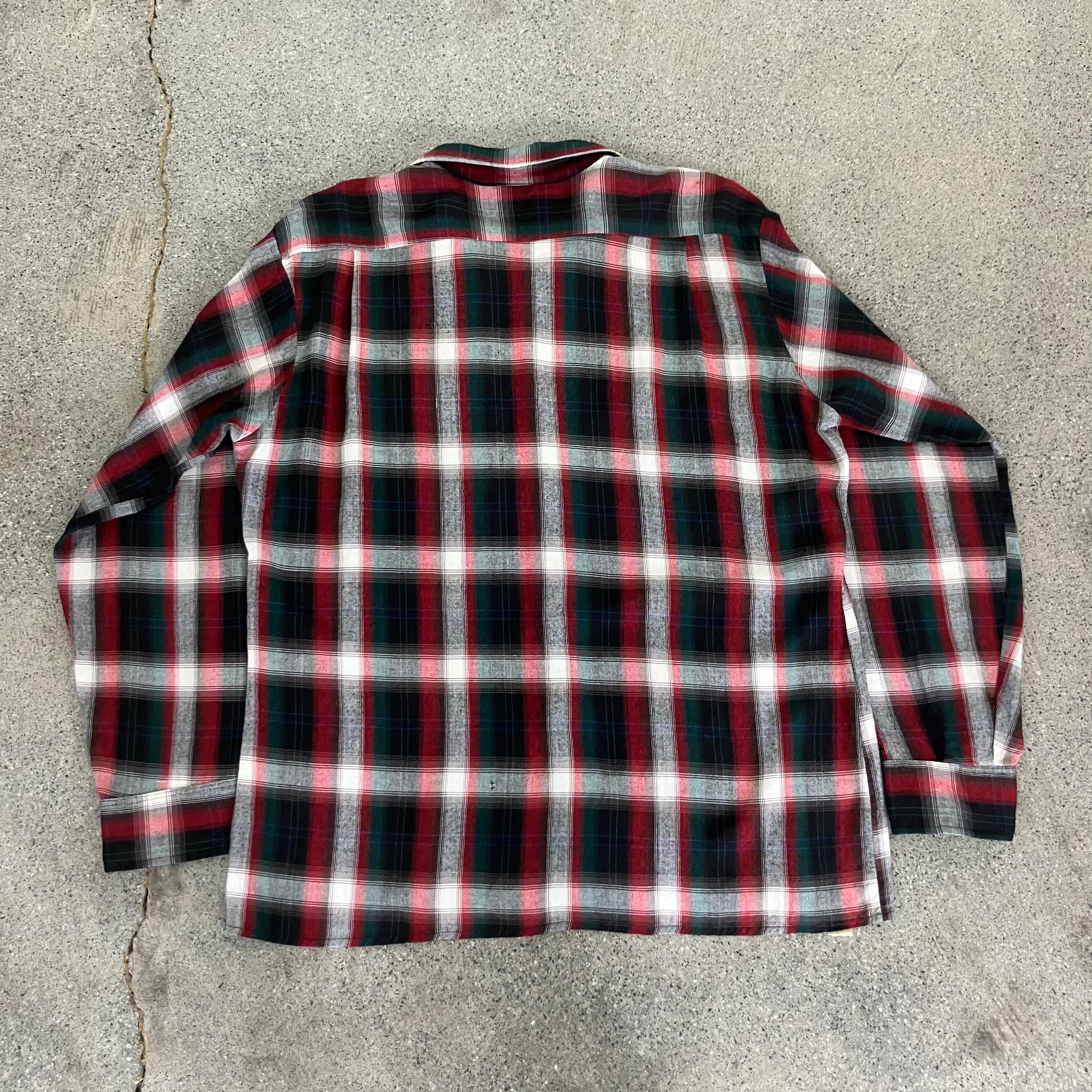 【BARACUTA by VAN HEUSEN】70s Shadow Plaid Open Collar Rayon Shirt XL "Good Color"