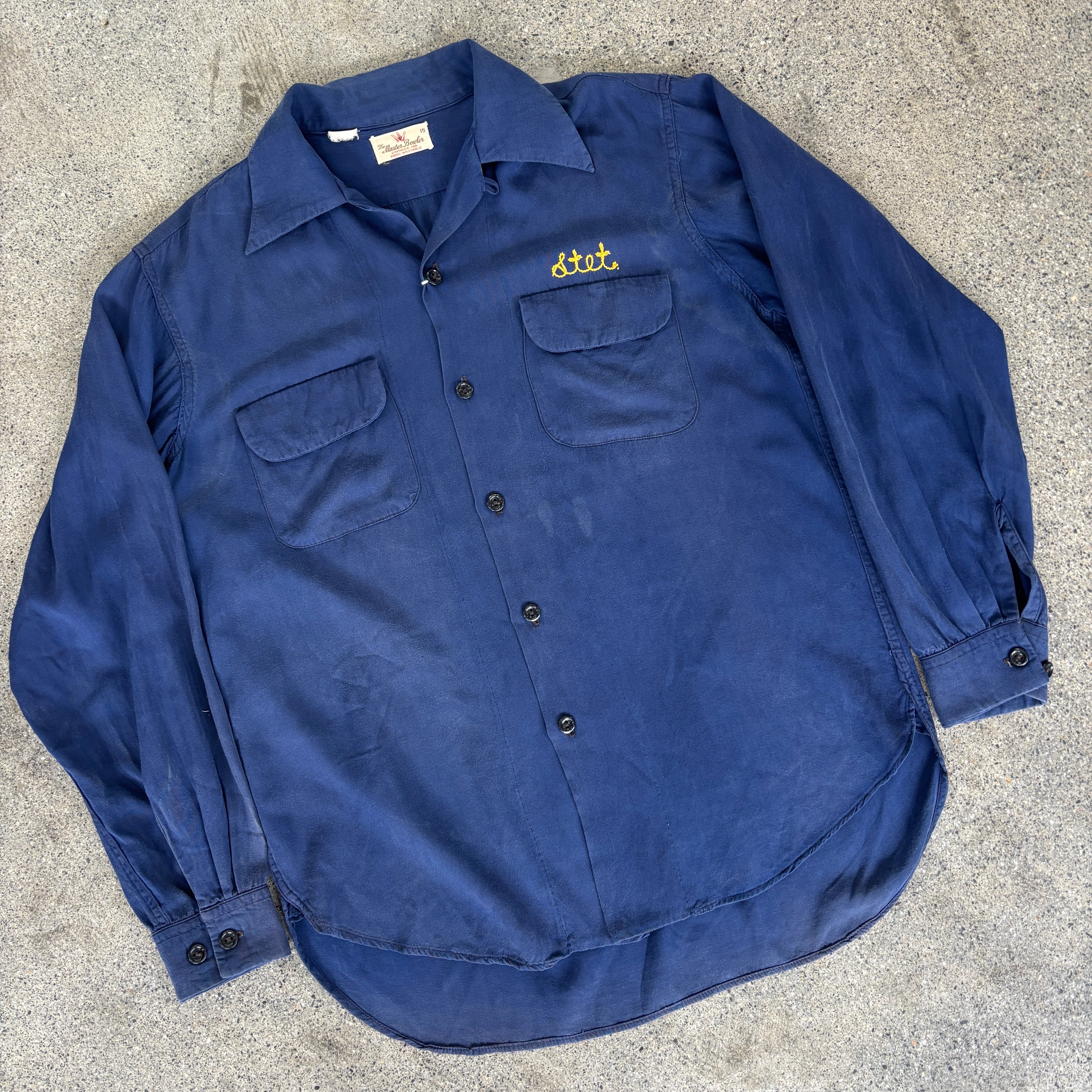 【Master Bowler】~60s Navy Rayon Shirt M "Good Color"