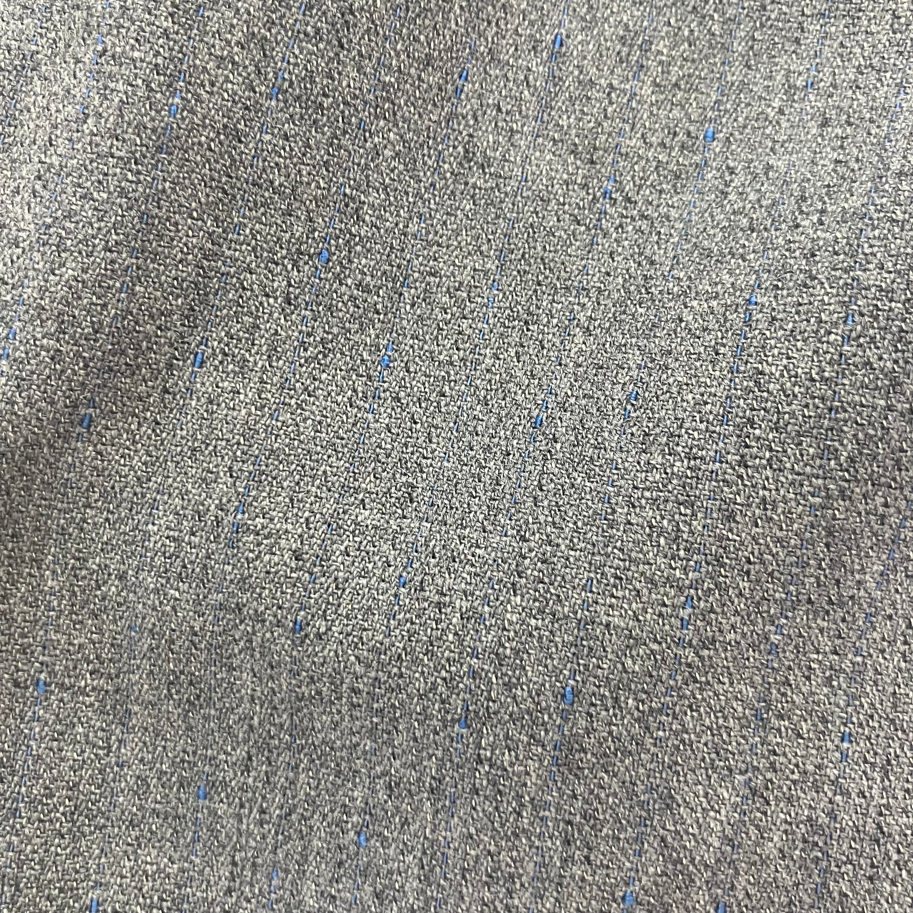 グレーベースのウール地に、細かく刺繍されたブルーのストライプが絶妙な雰囲気を放つ、かなり良いファブリックが用いられている1本になります。