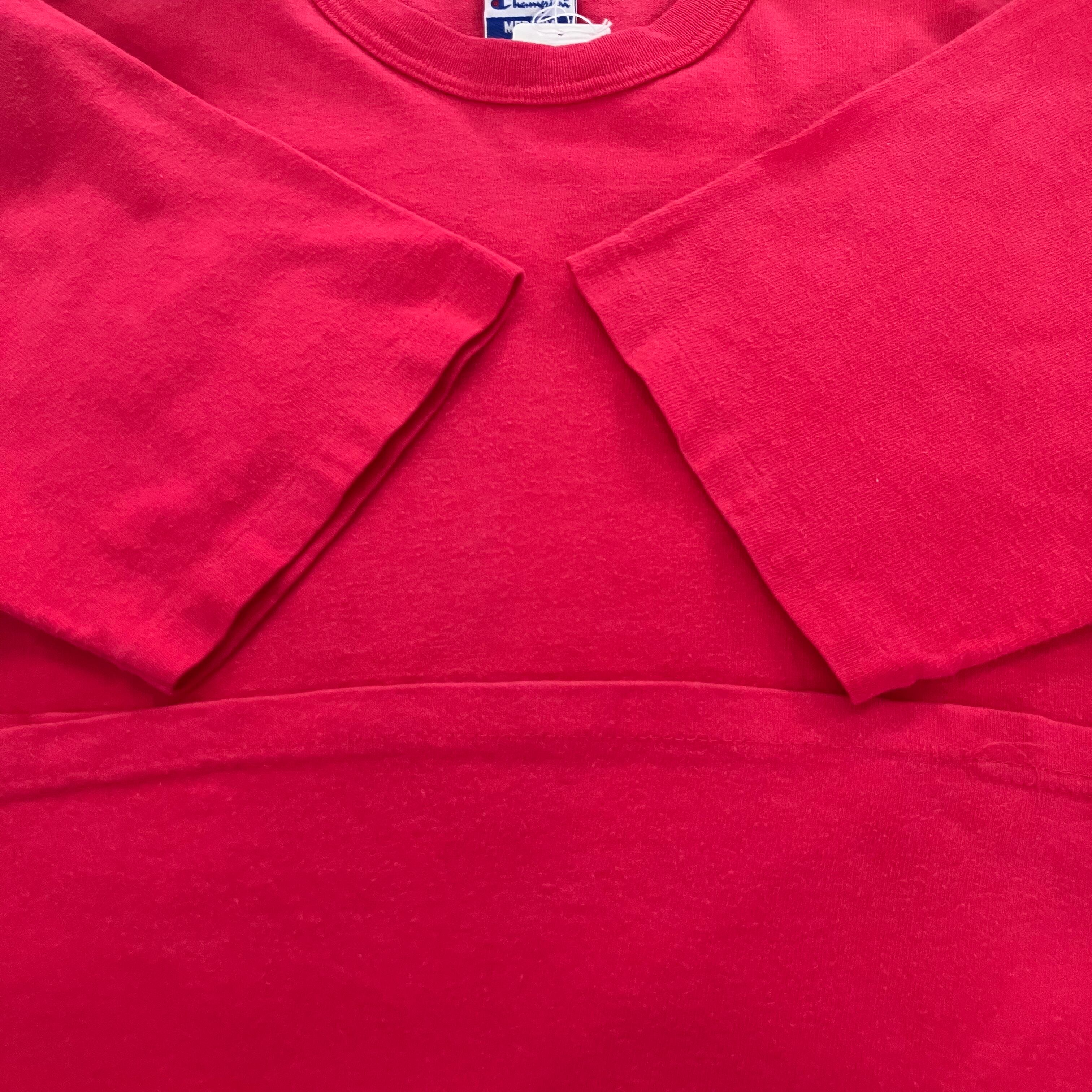 さすがはあのチャンピオンというだけあり、数十年前のTシャツとは言え、非常にガッシリしたコットンの風合いは未だに健在です。