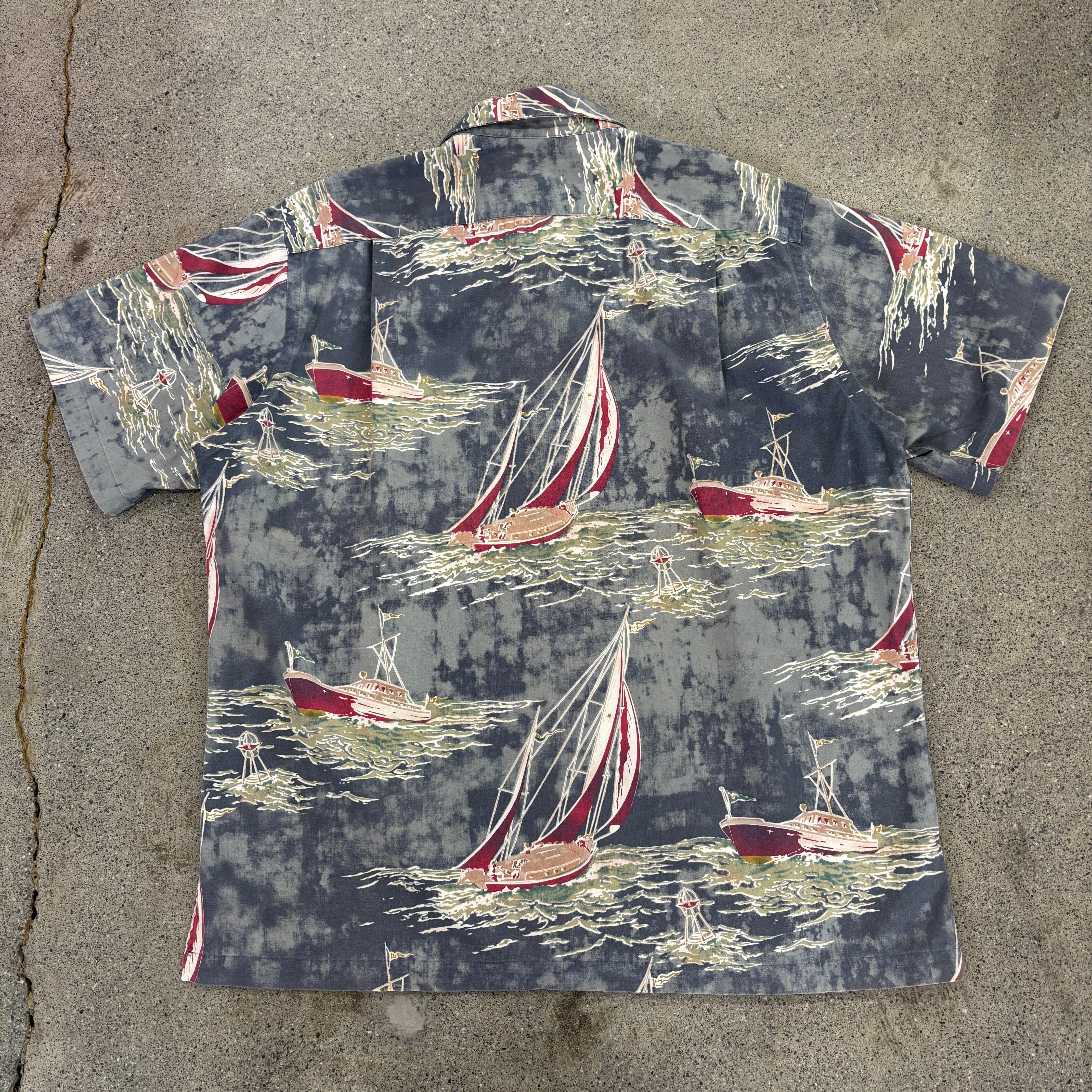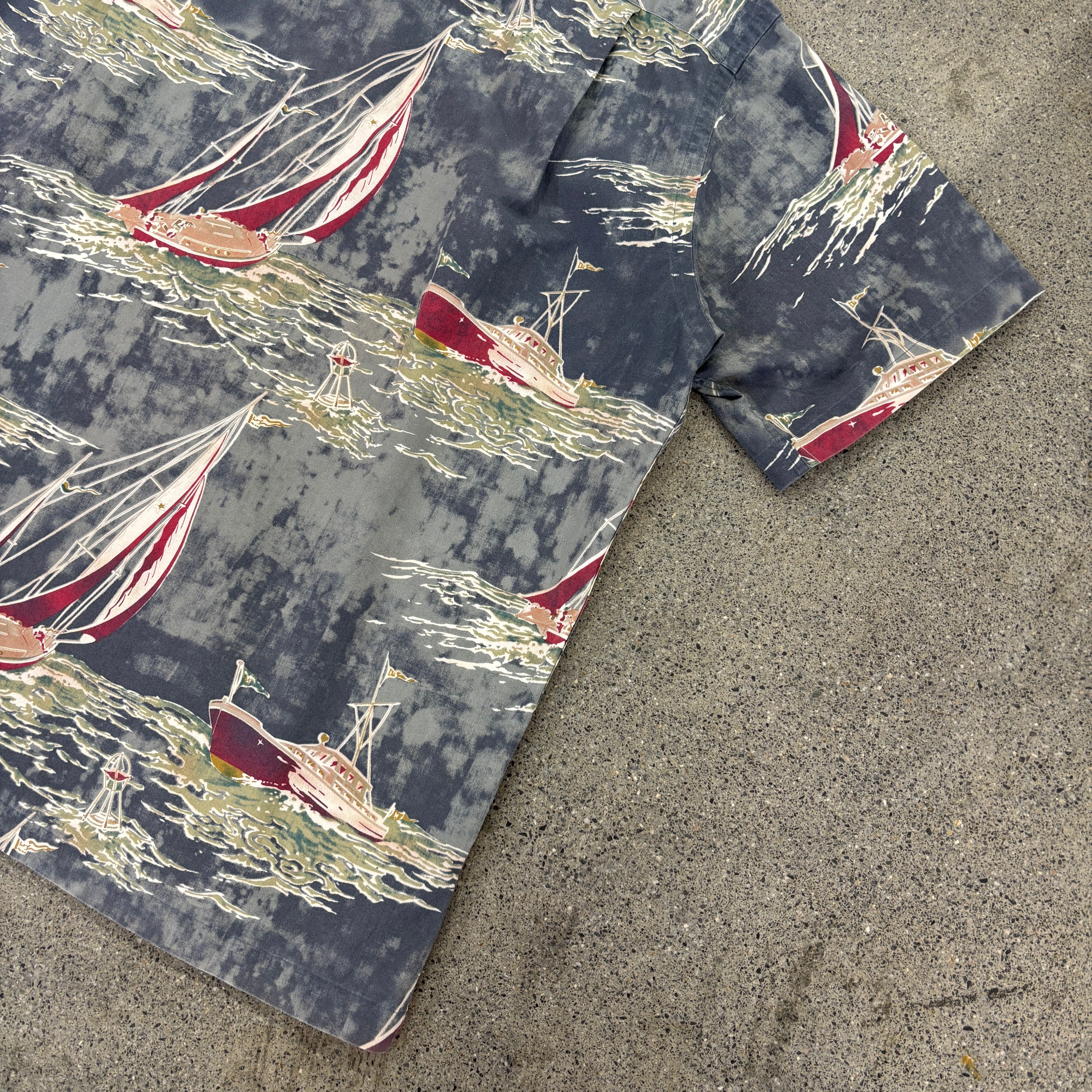こちらは、スモーキーな色味が特徴的でボートやセーリングが入った柄でポニーなしの1枚です。