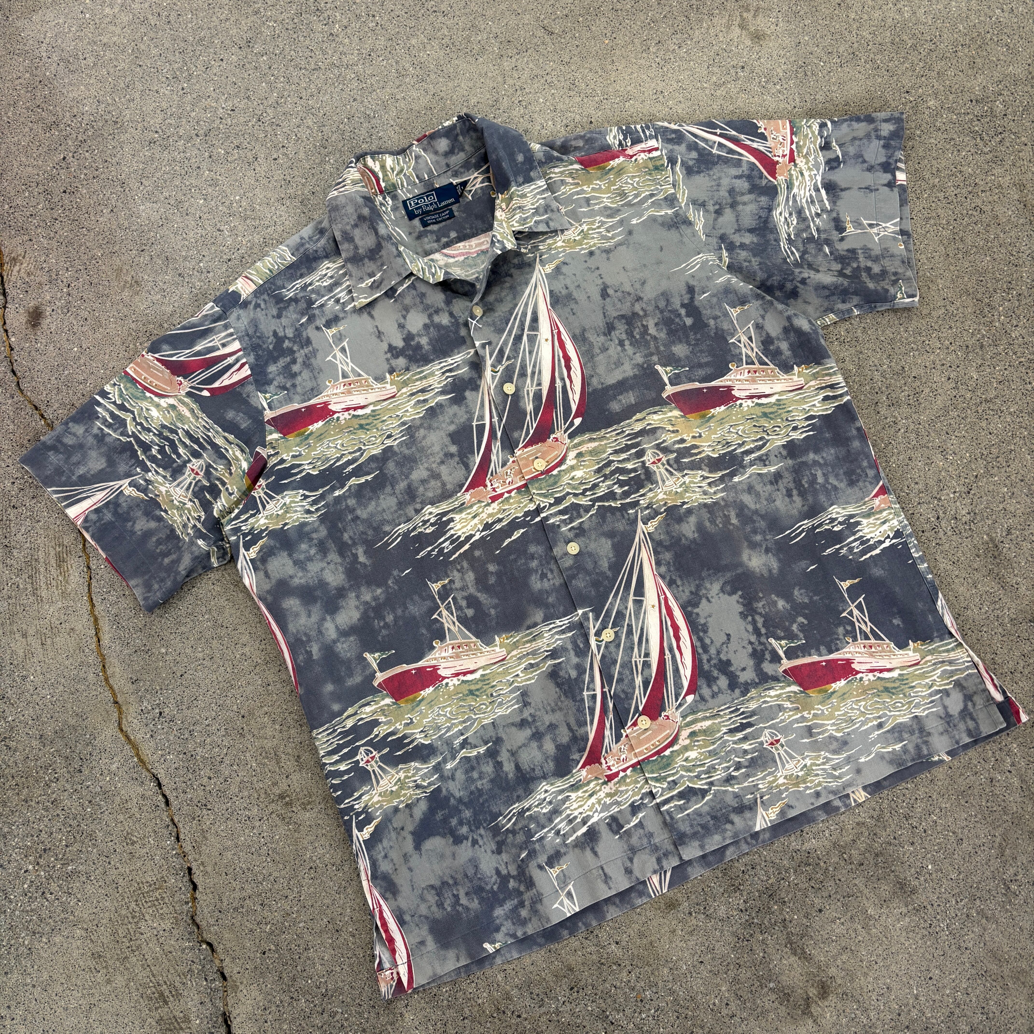 【Polo by Ralph Lauren】90s VINTAGE CAMP Open Collar Shirt L "Good Pattern"