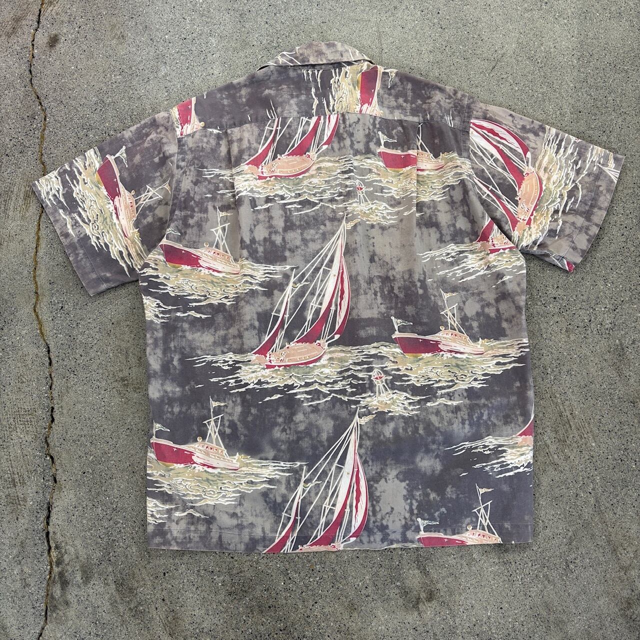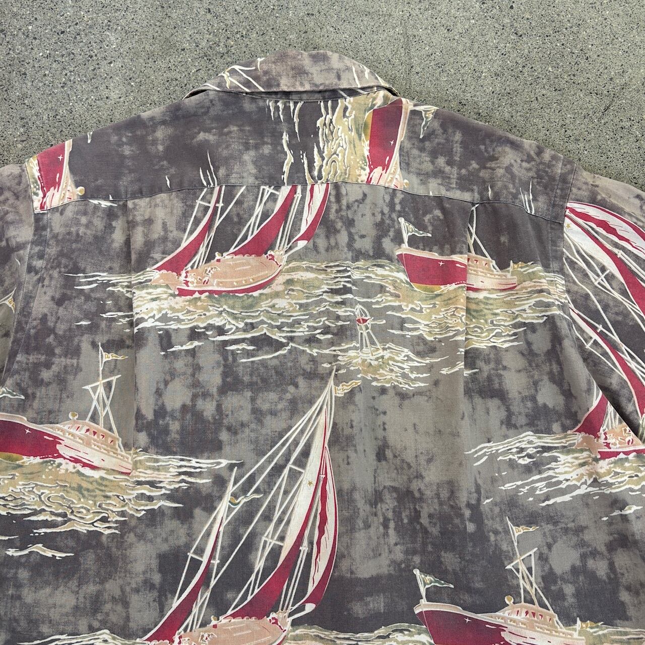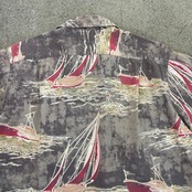 こちらは、スモーキーな色味が特徴的でボートやセーリングが入った柄でポニーなしの1枚です。