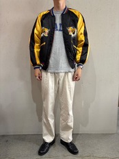 ジップには、SPEED社のバタフライが用いられており、リブも4段の多色使い、そして、ポケットのカンヌキが矢印型になっている、スカジャンの中でも初期の個体になるかと思います。