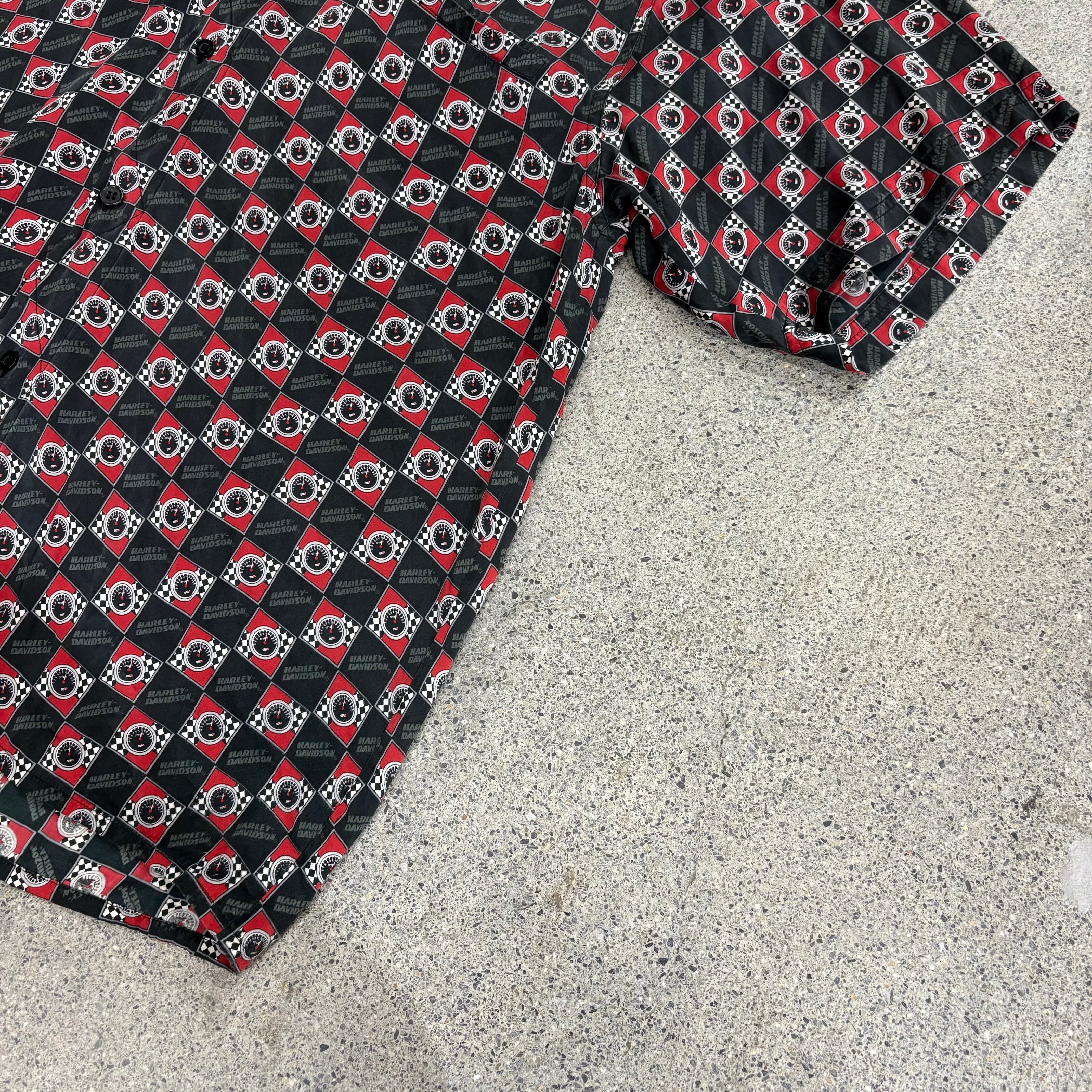 2000年代〜、ハーレーのシルク総柄シャツになります。