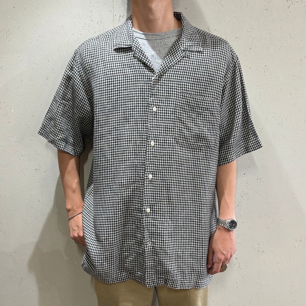 【Polo by Ralph Lauren】90s CALDWELL Open Collar Shirt L "Black Gingham/All Linen"