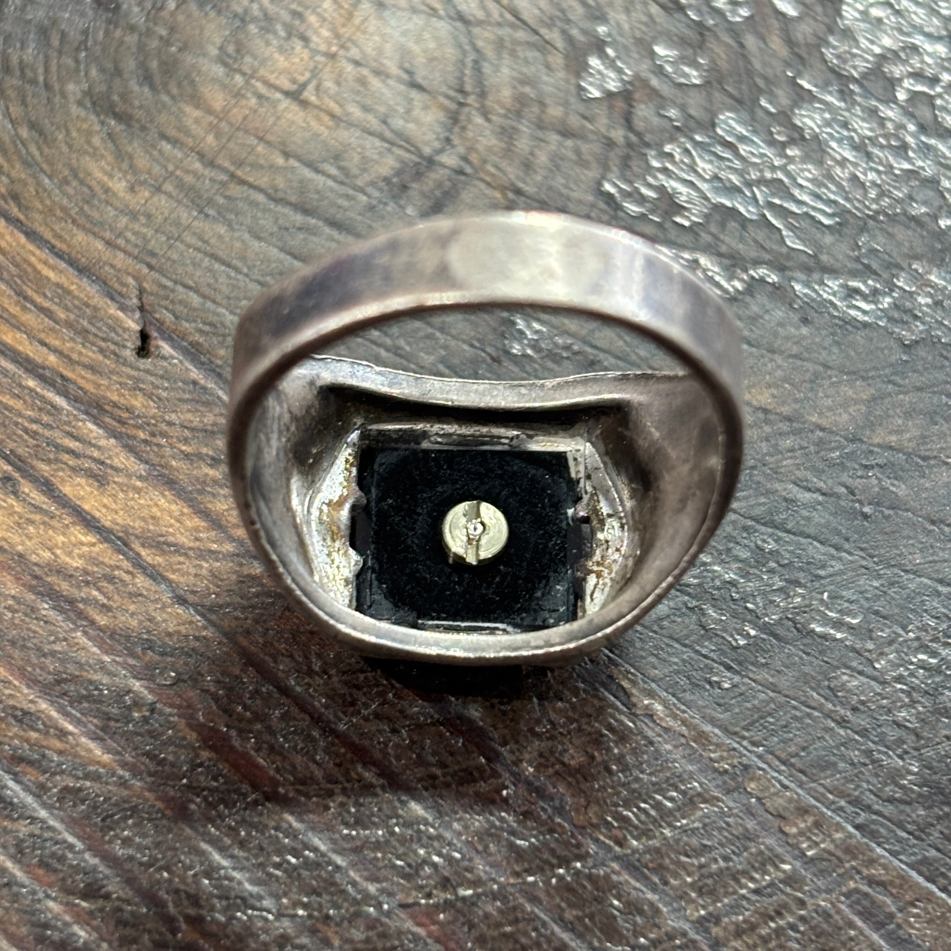 【Unknown】Onyx Ring 23Size "Silver Combination"