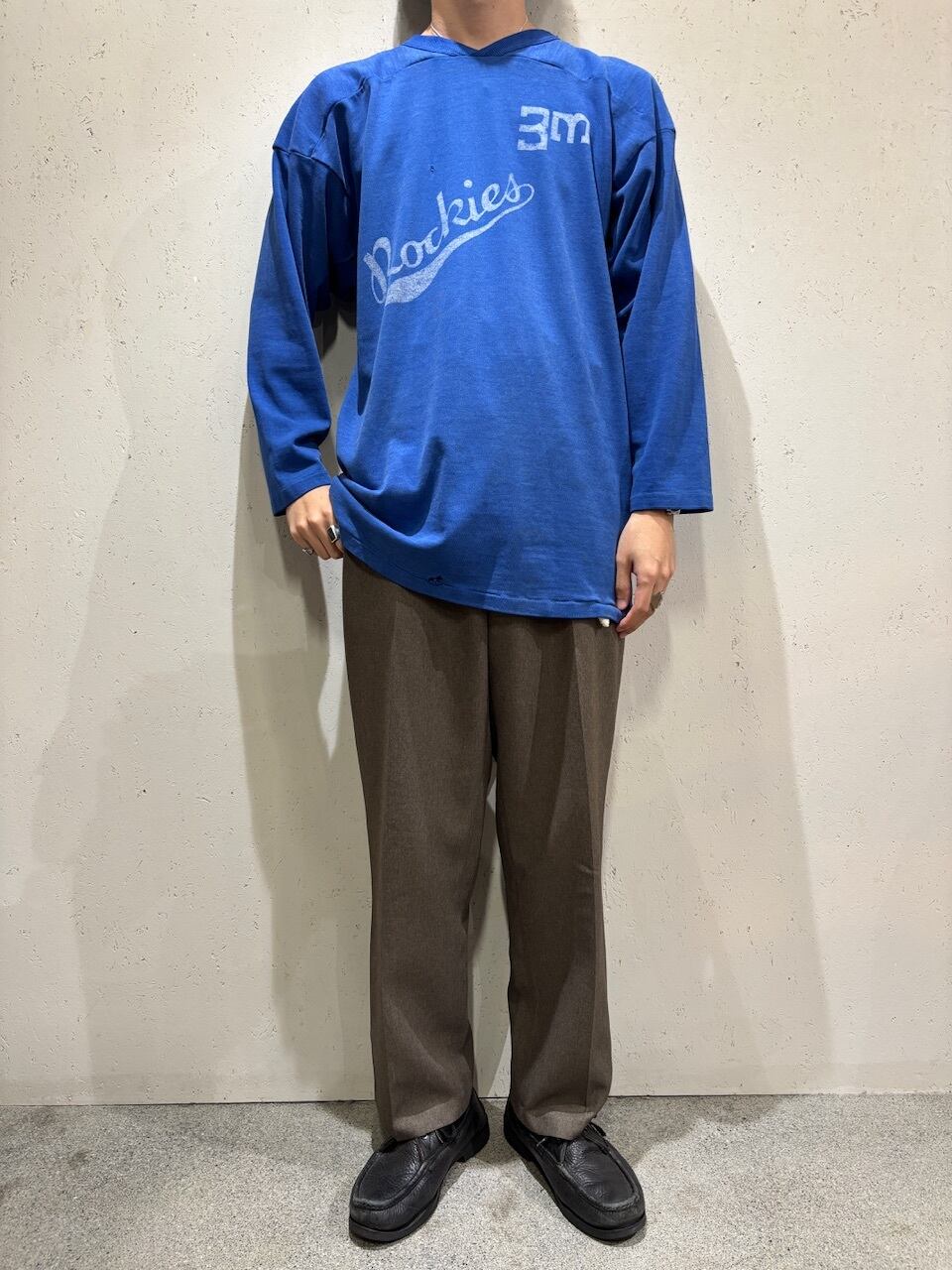 個人的には短丈のデニムジャケットやヴィンテージスウェットなどの外しとしてサラッと着てもらいたい一本です。
