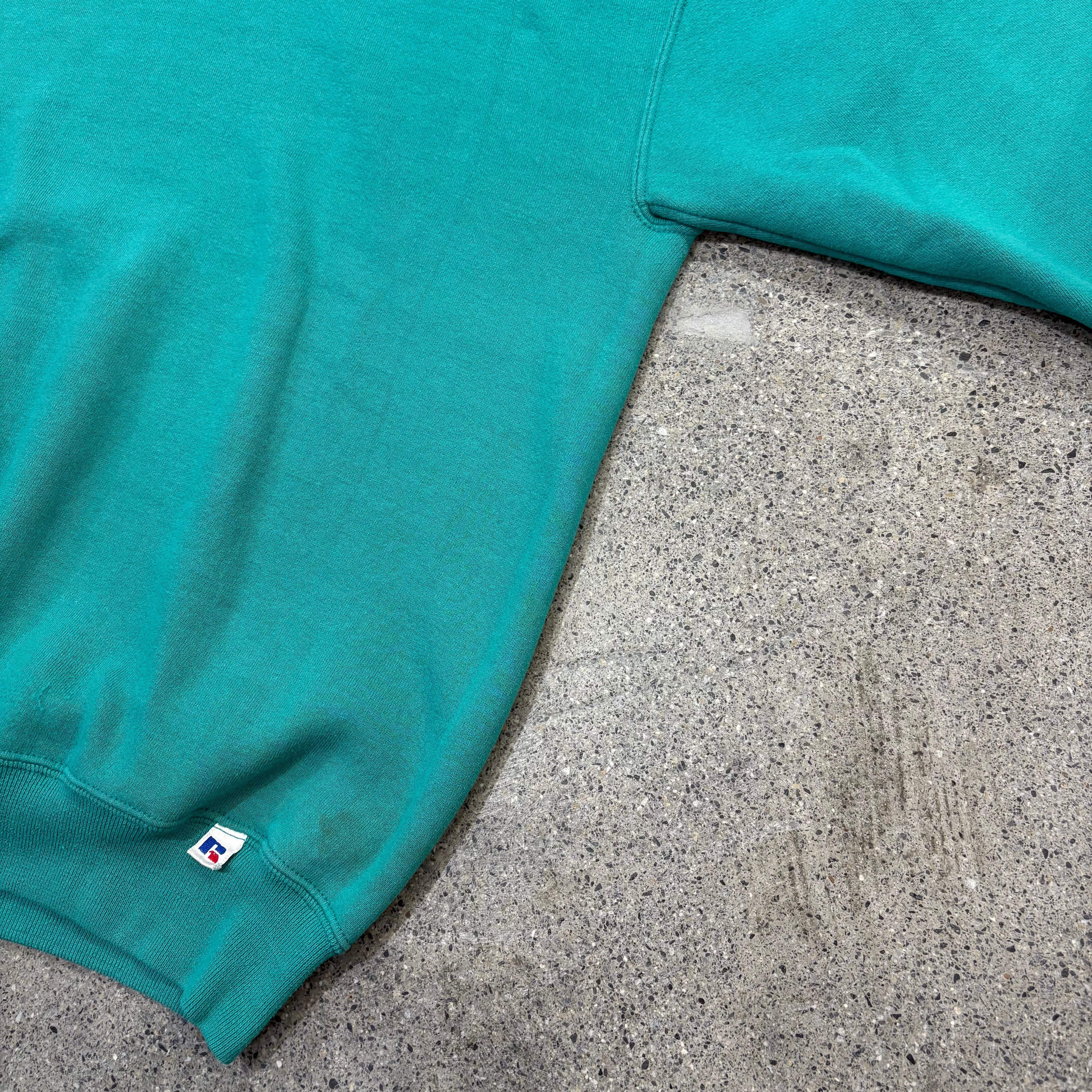 【Russell】90s Front V Sweat Made in USA XXL "Turquoise"
