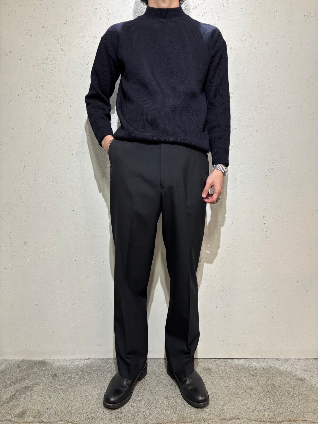 ブラックのソリッドなスラックスで、シルエットも抜群な、痒いところに手が届くモデルです。