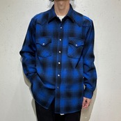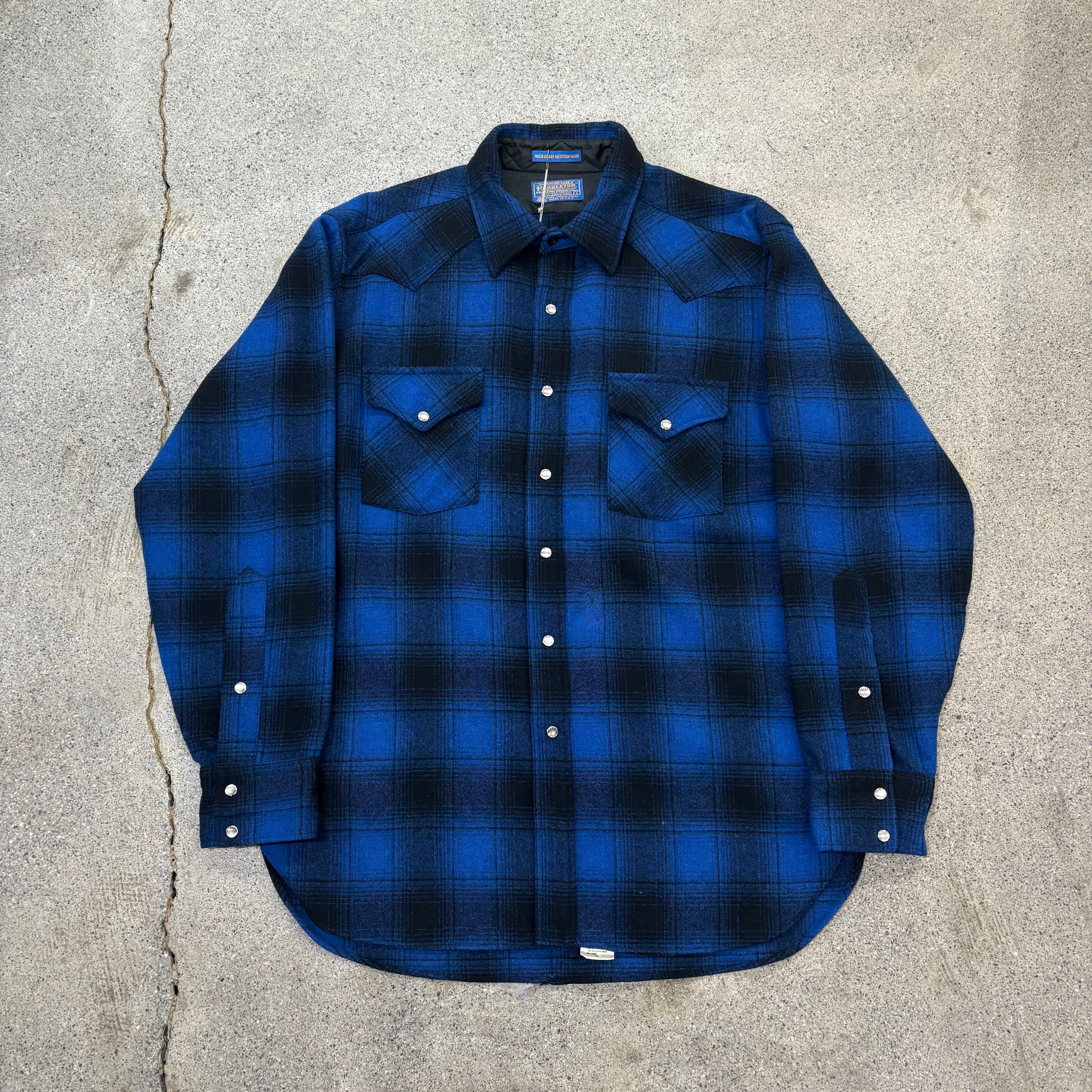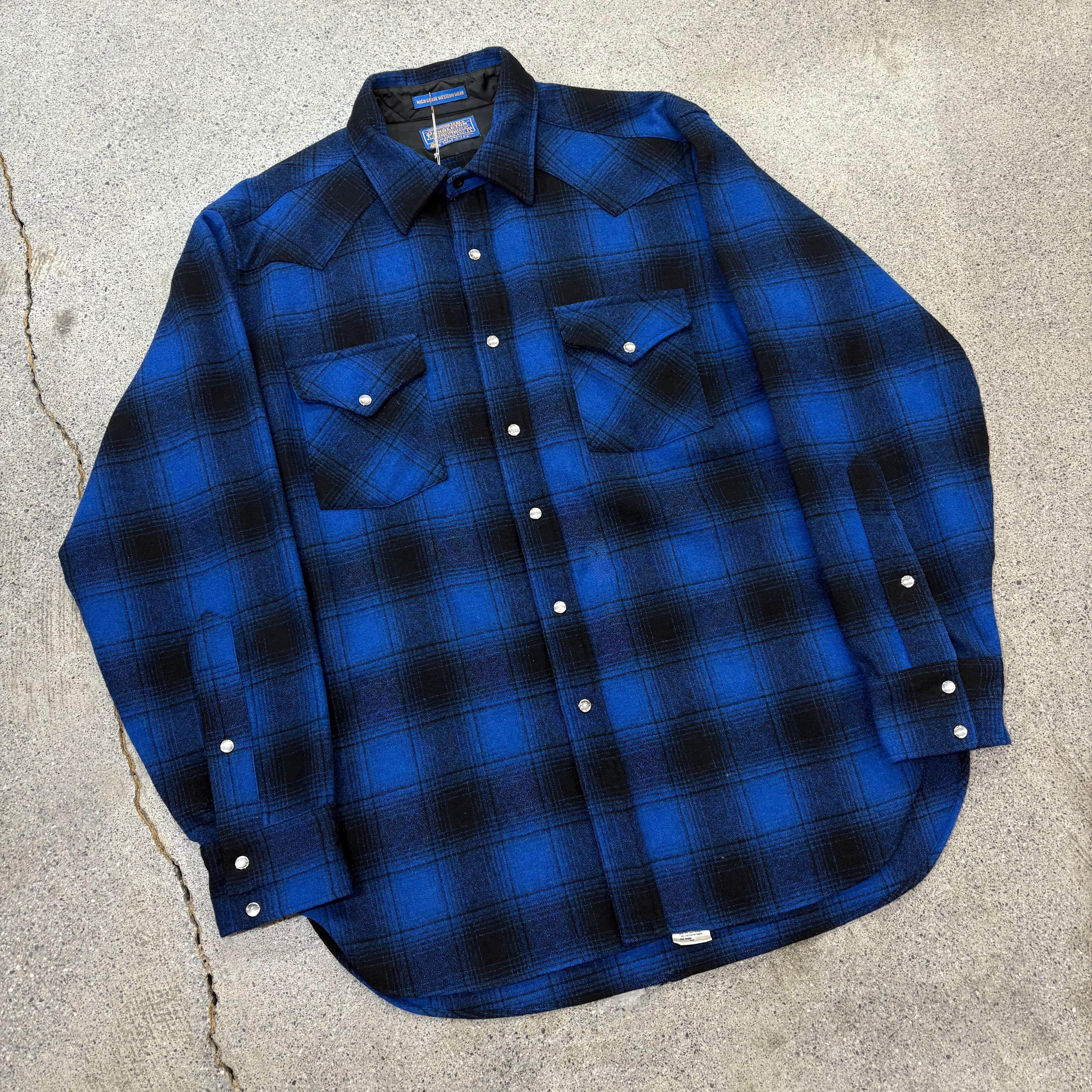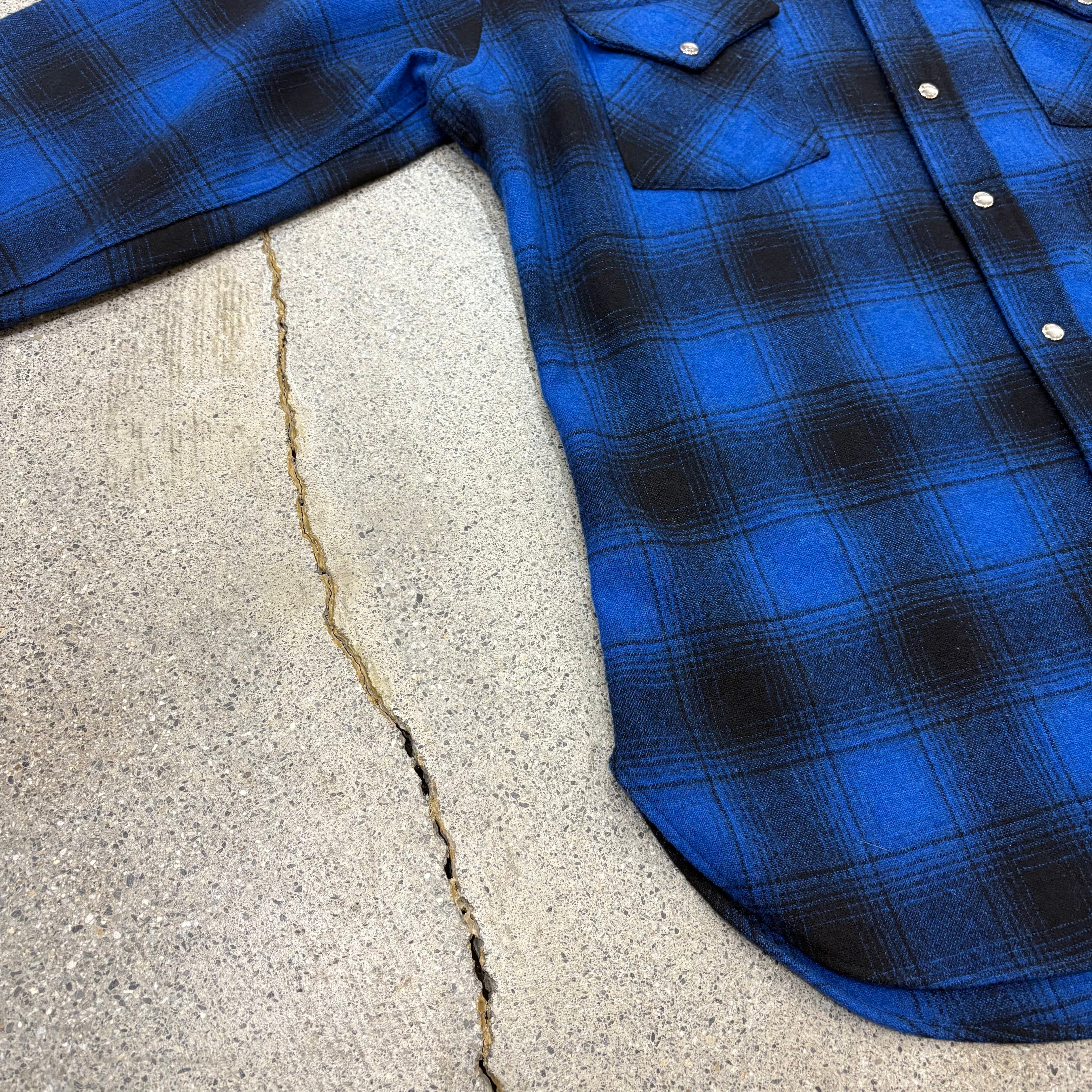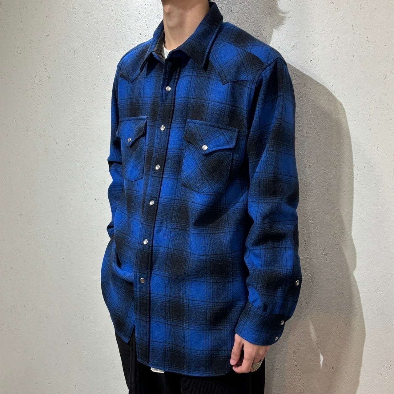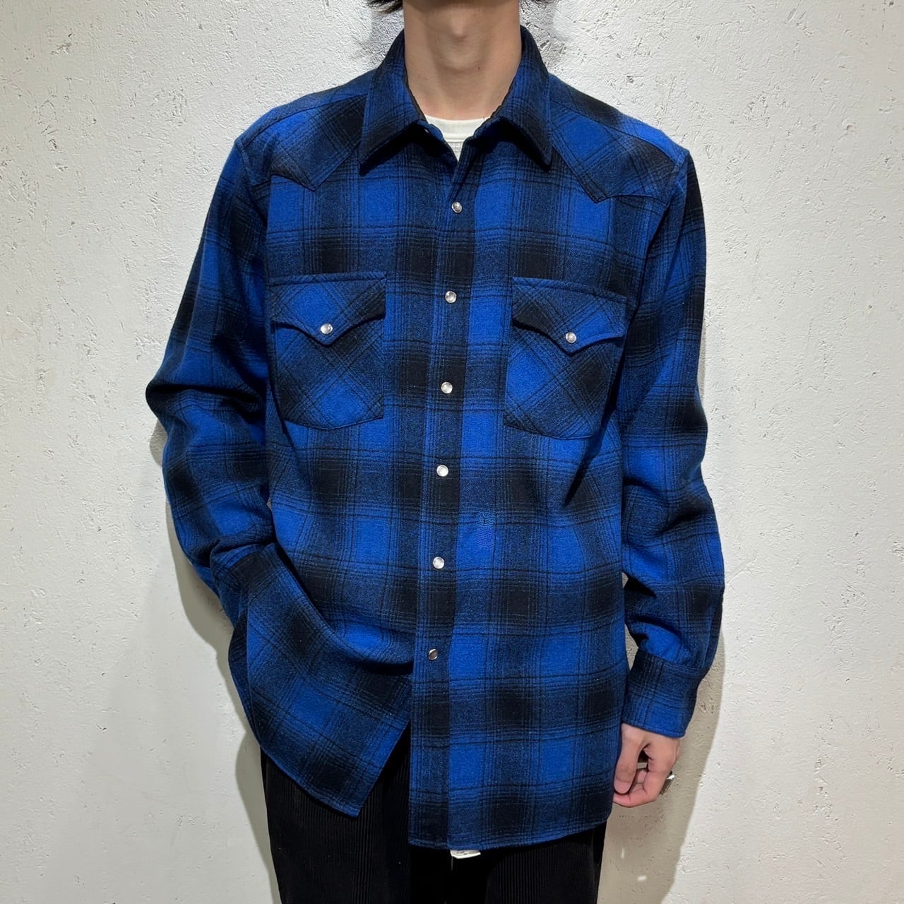 【Pendleton】70s Wool Western Shirt L "Shadow Plaid"