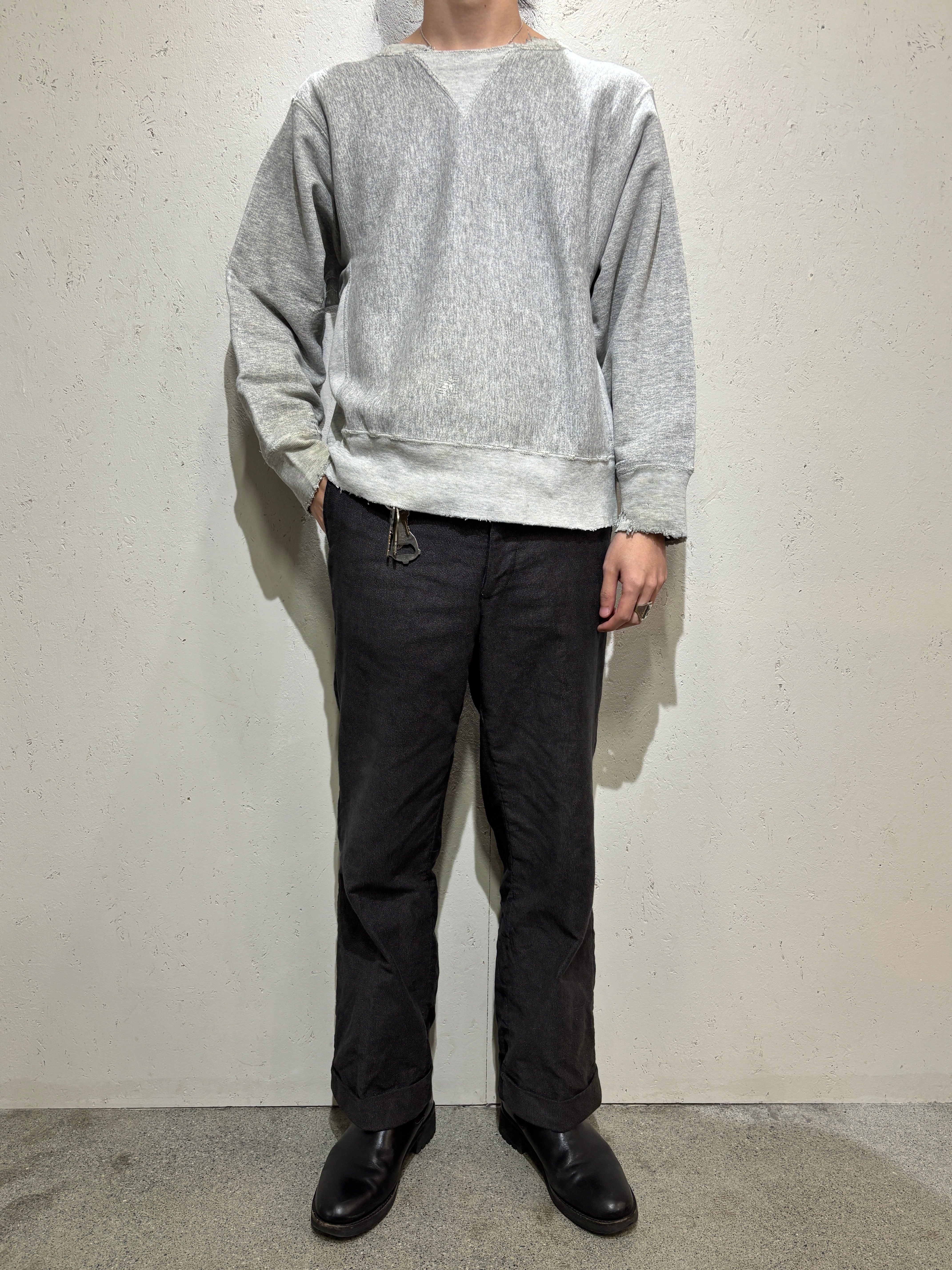 サイズはMですので良い感じに丈が詰まっており、ヴィンテージスウェットの感覚で着用いただけます。