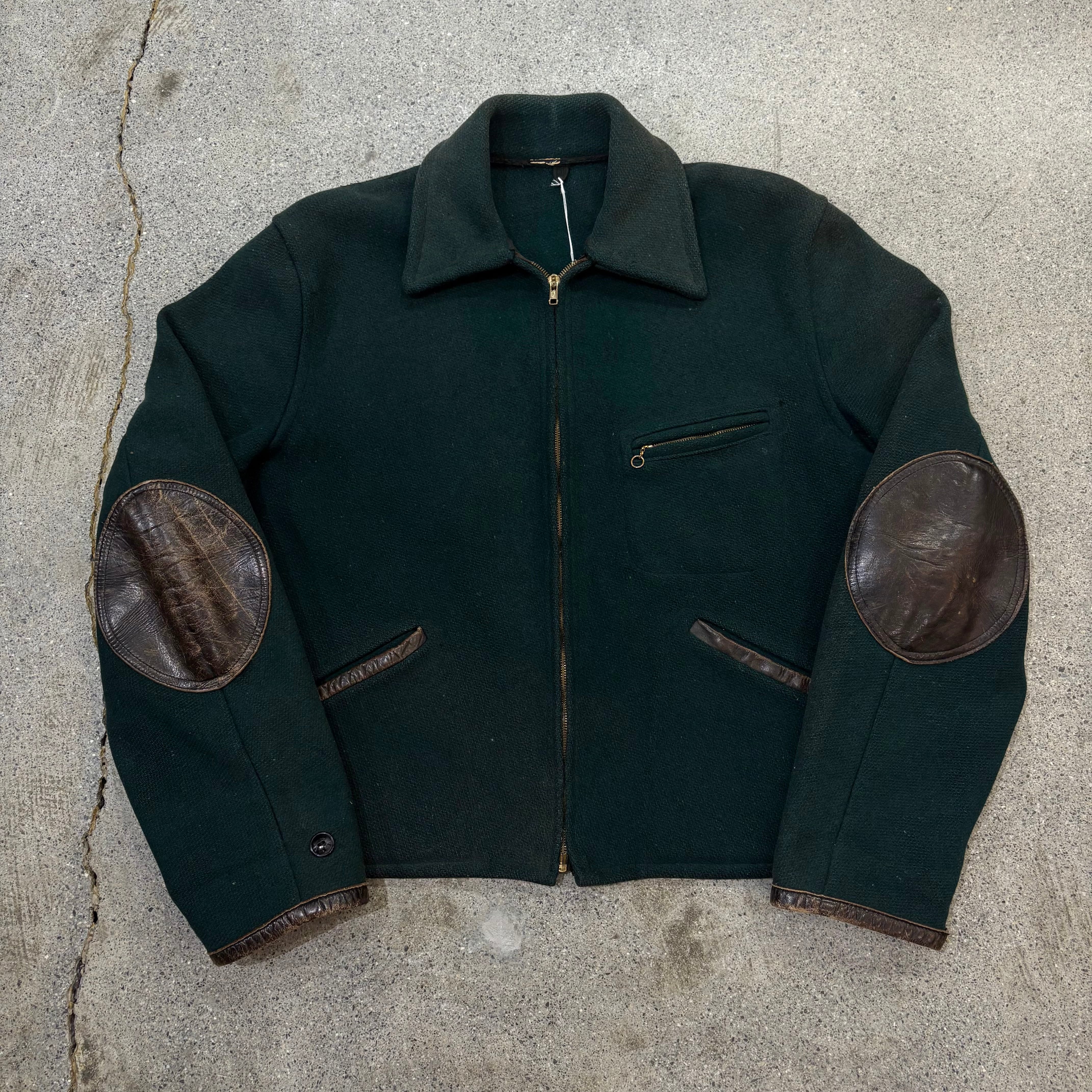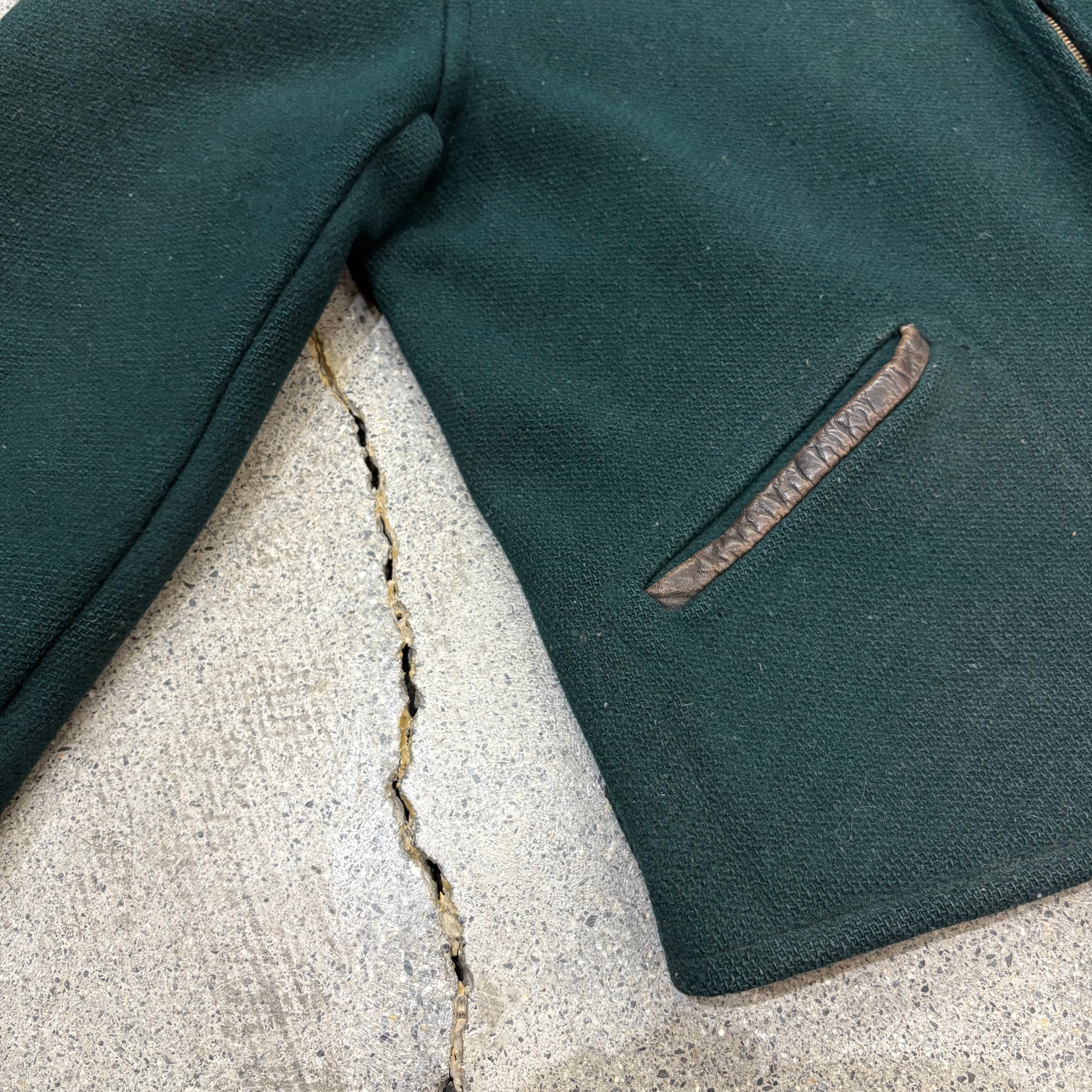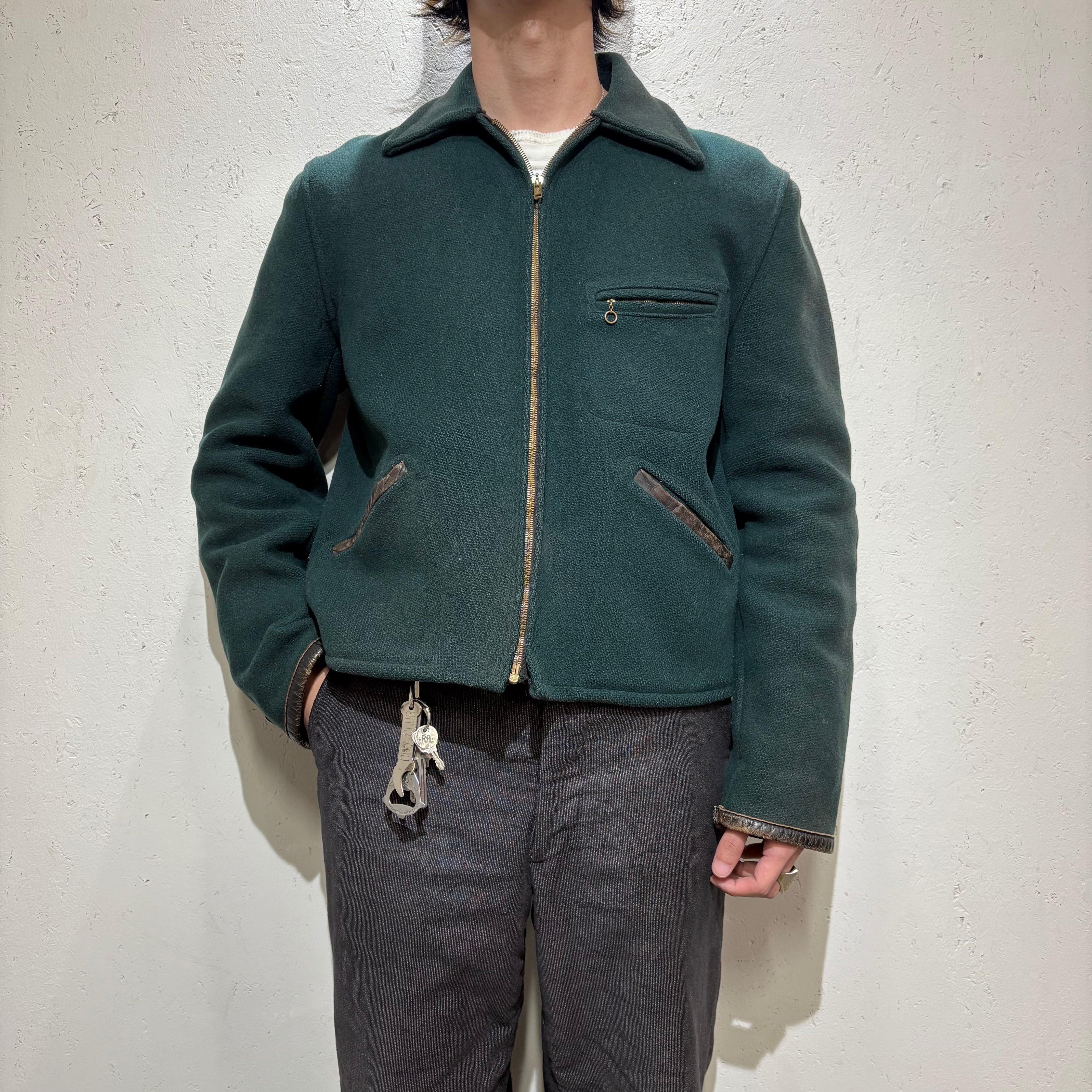 【Unknown】50~60s Wool × Leather Sports Jacket "Green Color"