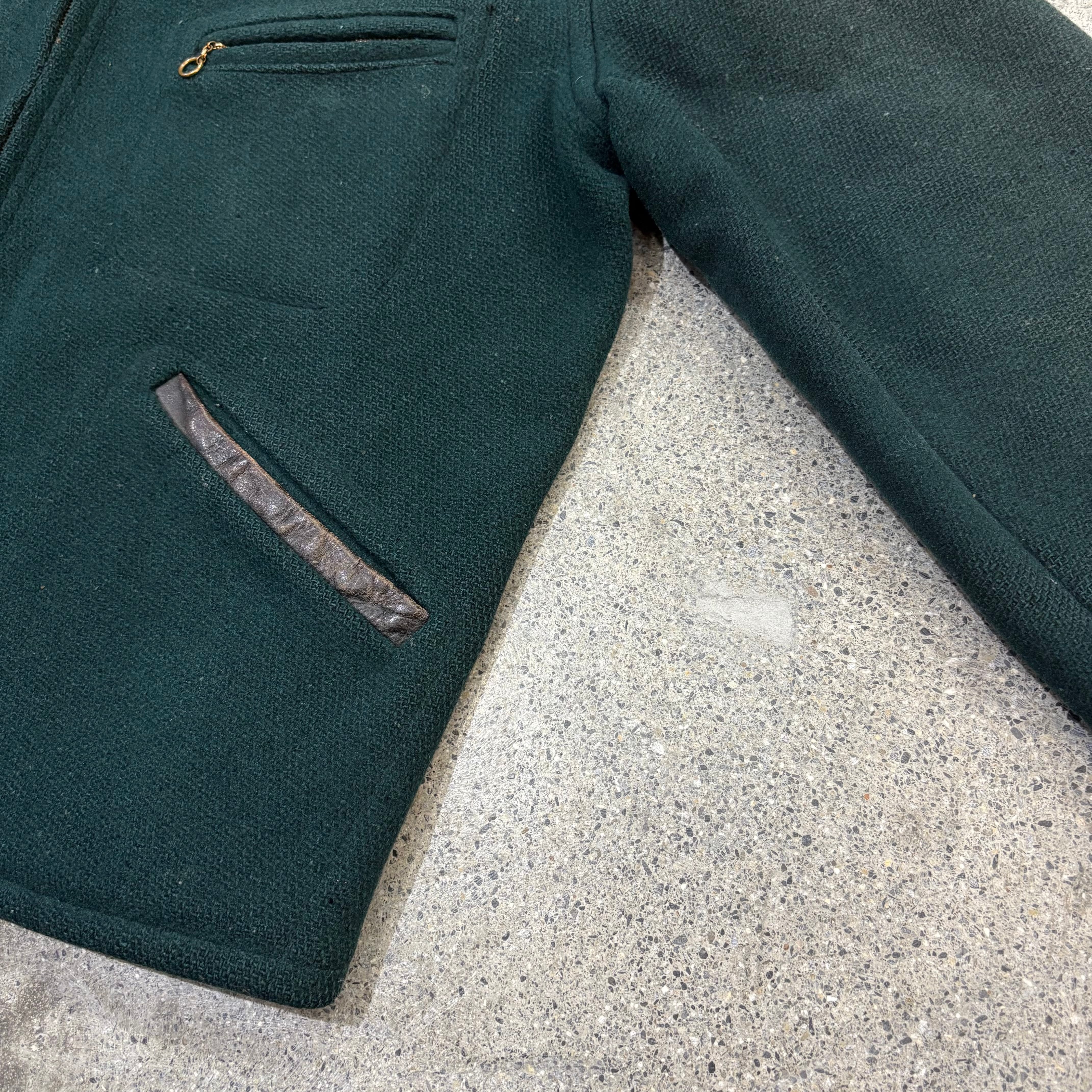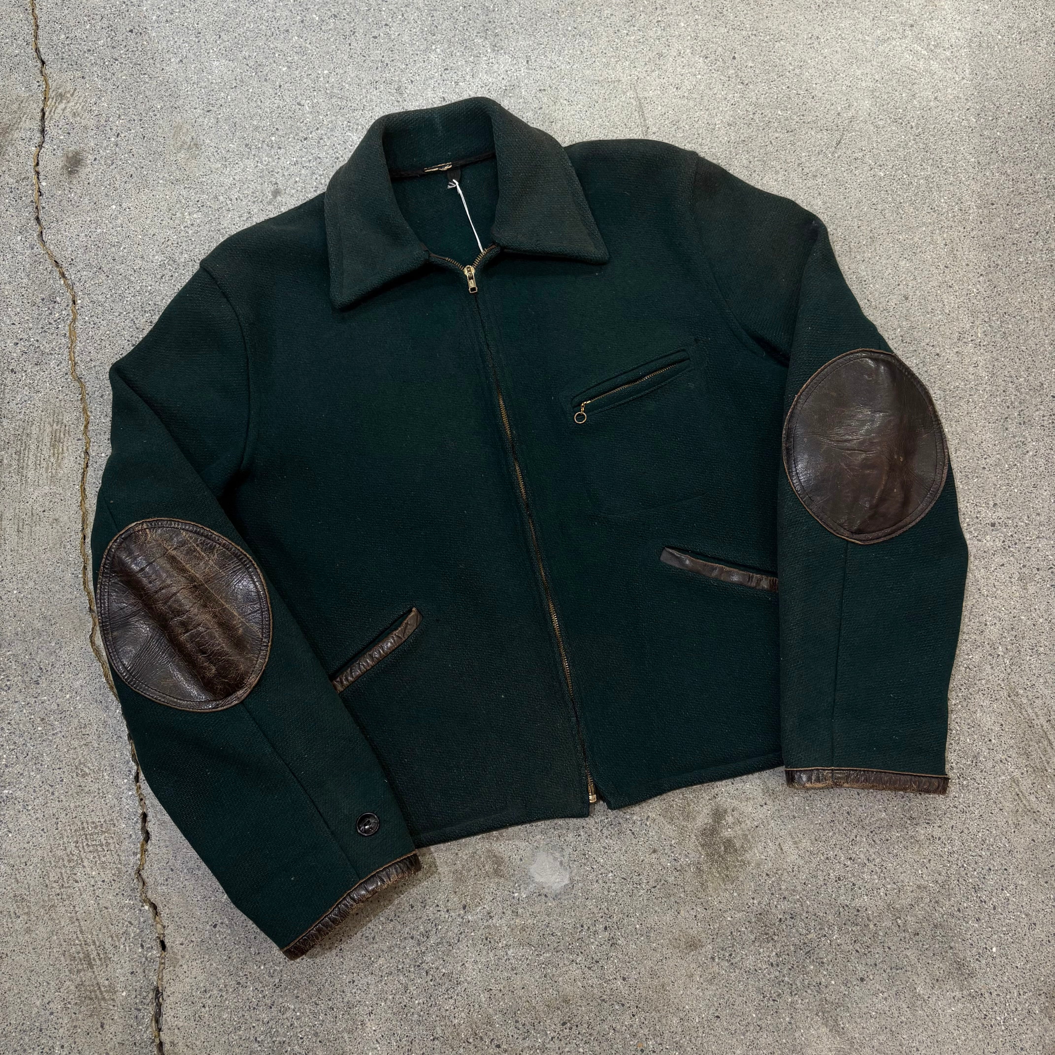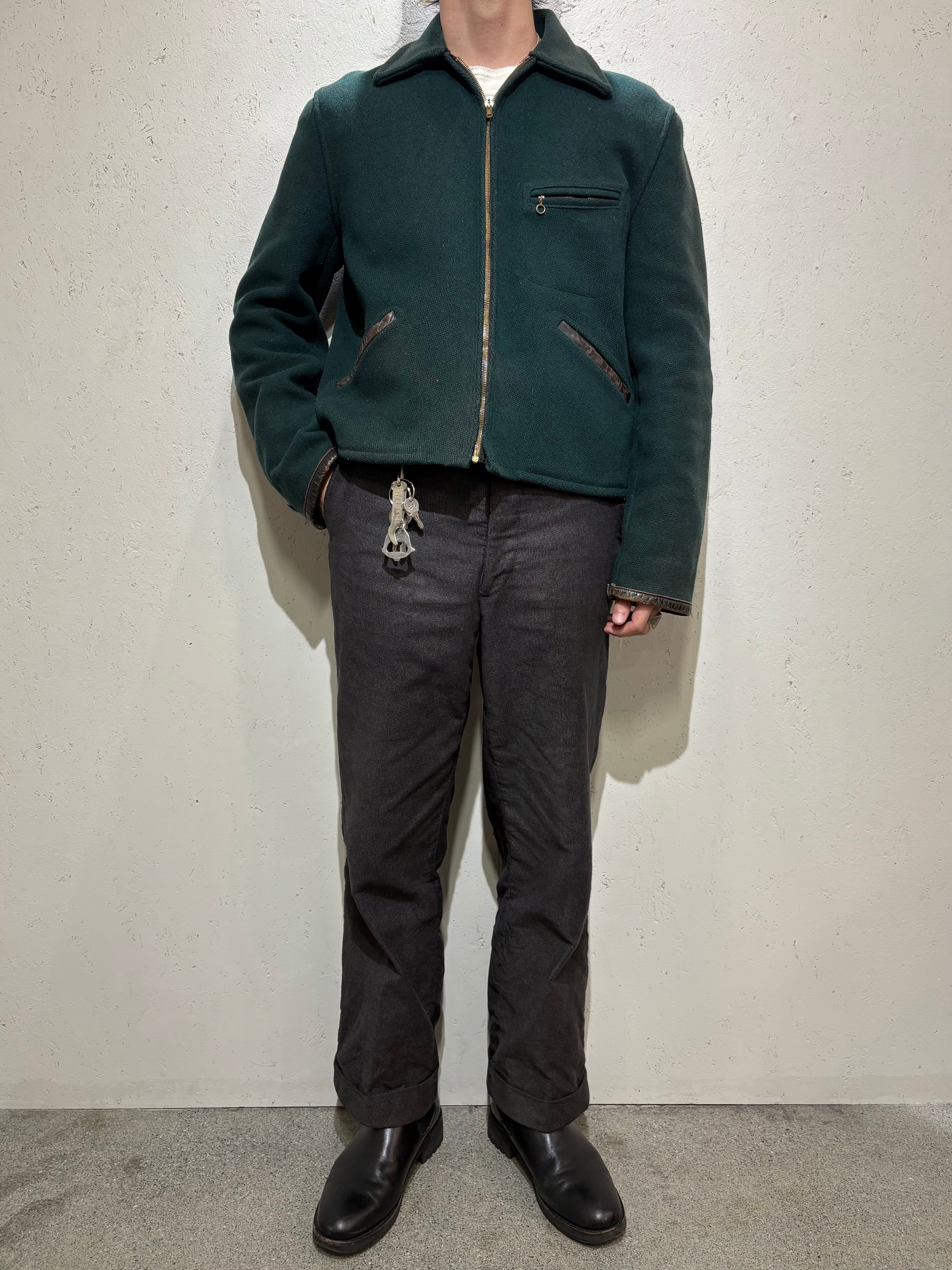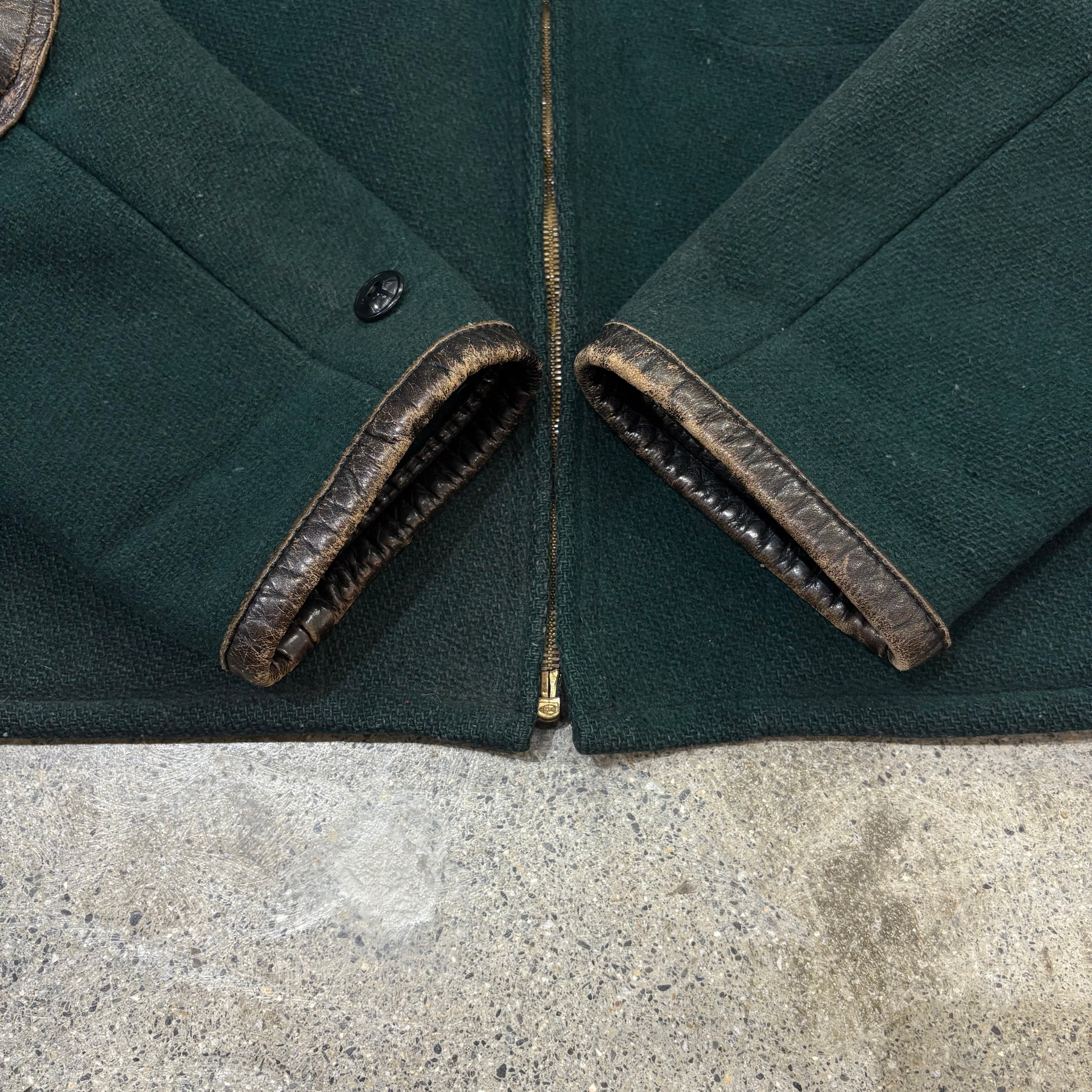 【Unknown】50~60s Wool × Leather Sports Jacket "Green Color"