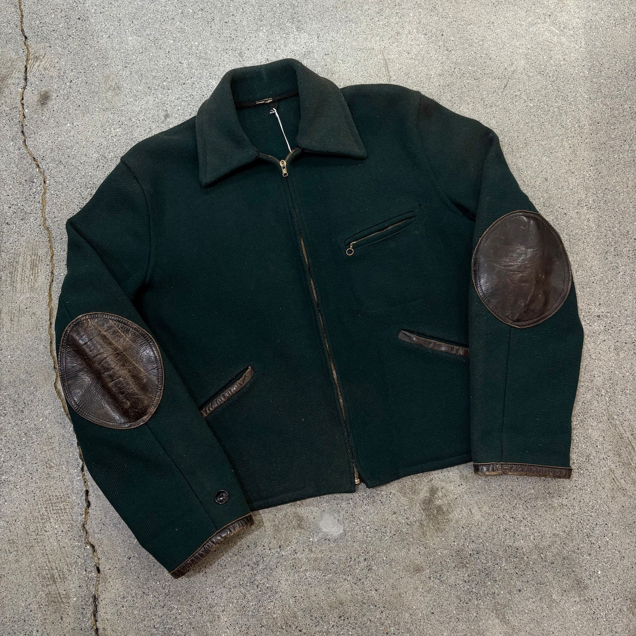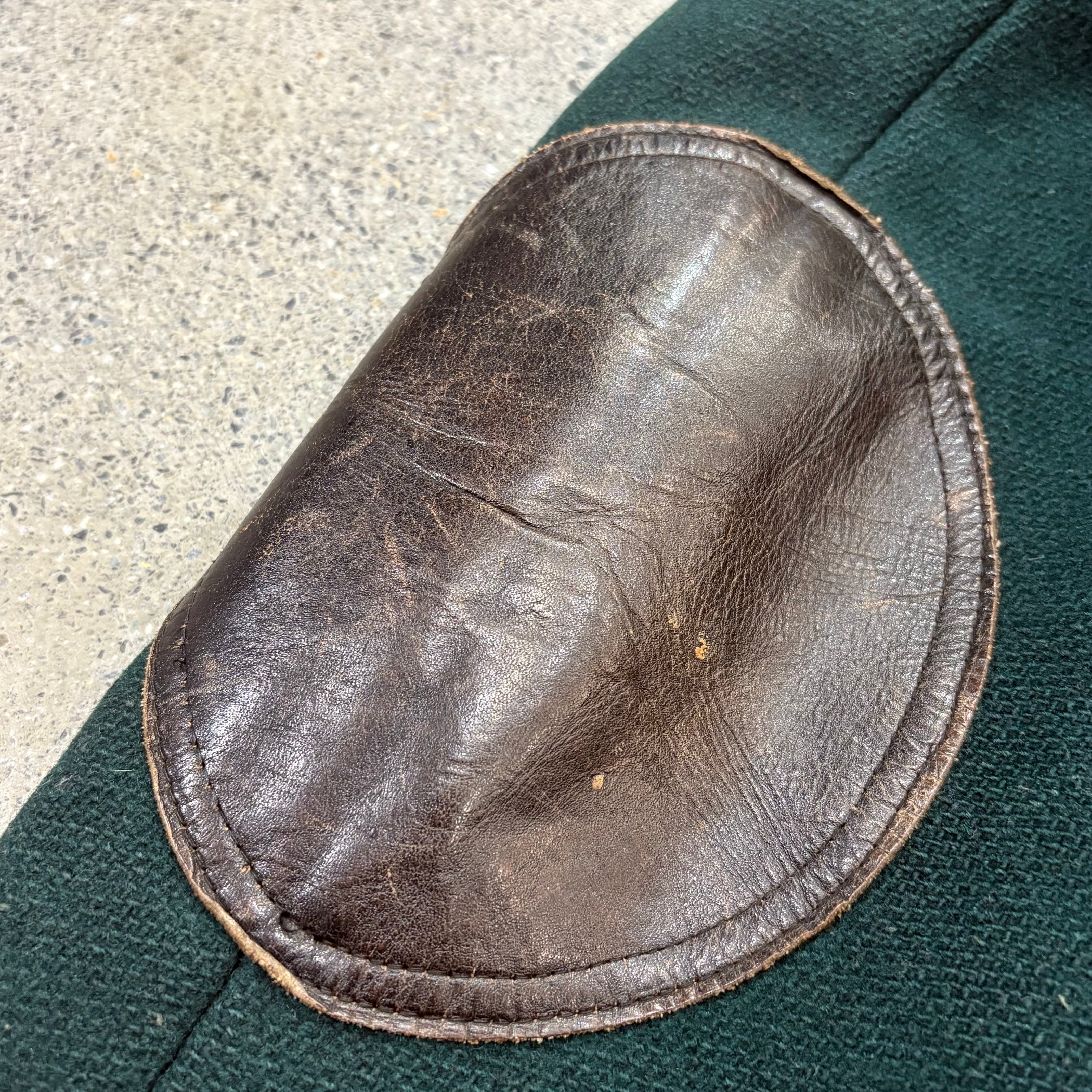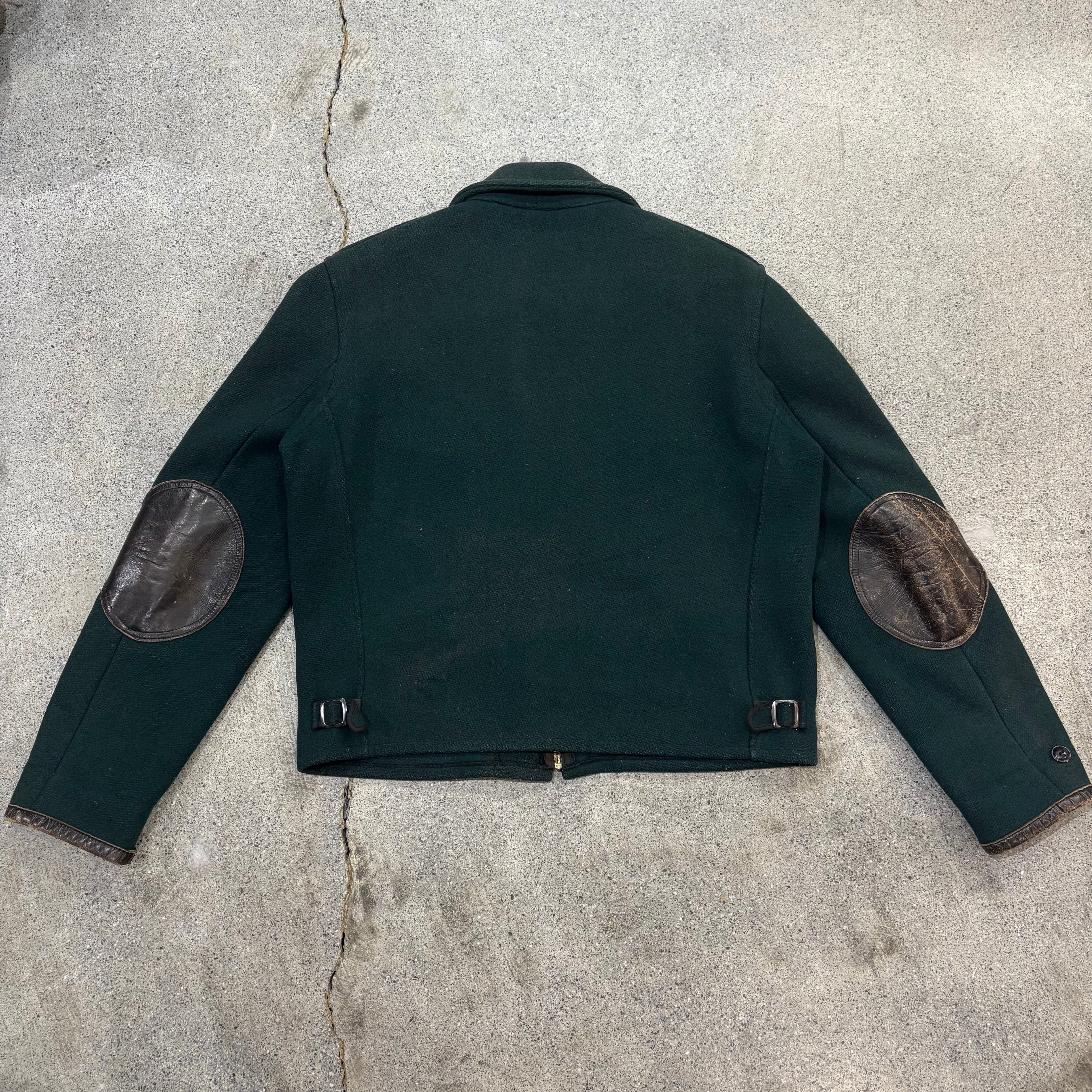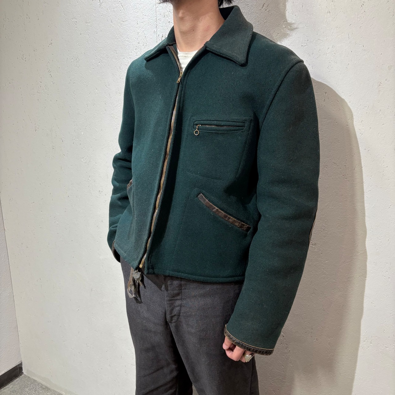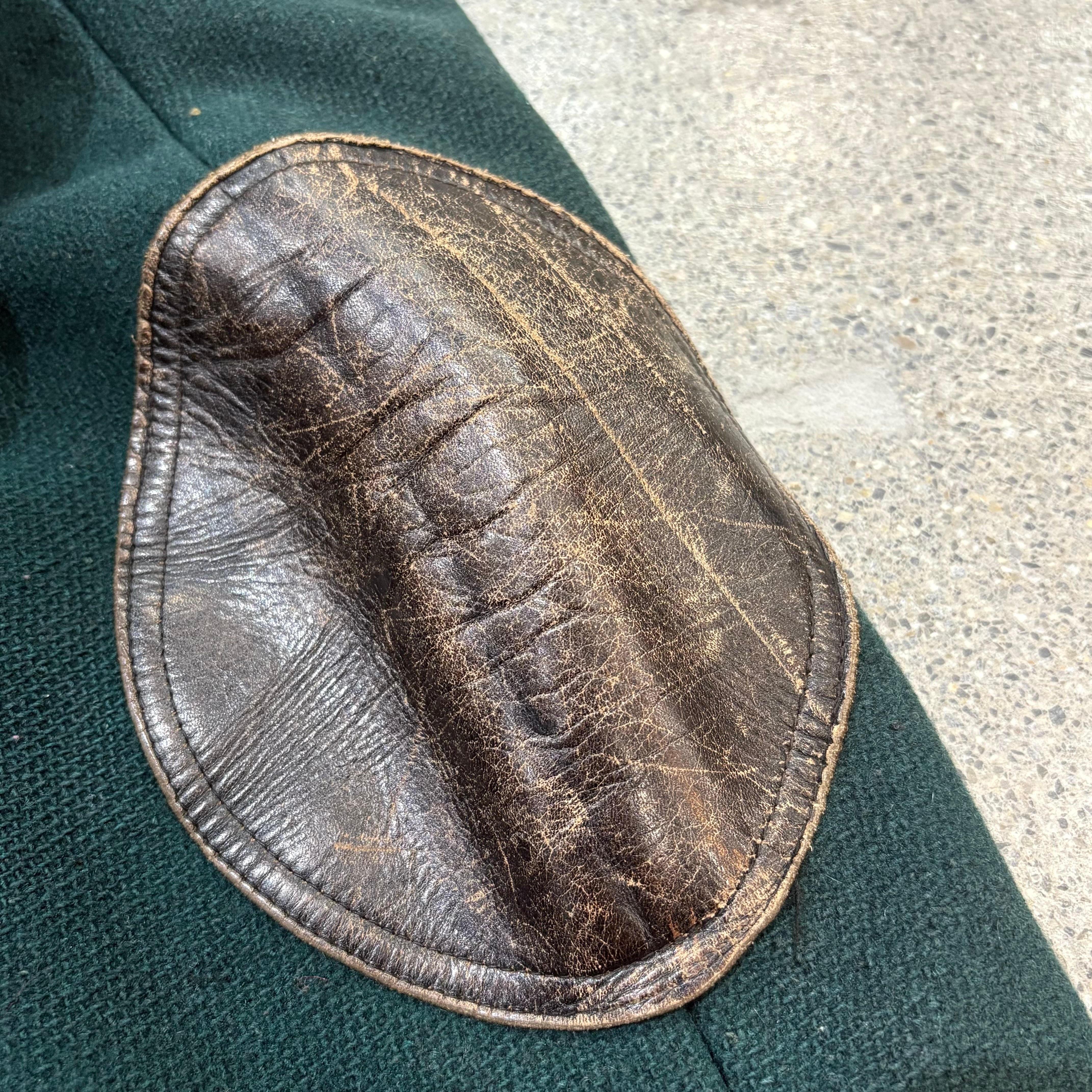 こちらはグリーンのウールボディにレザーのパイピングやエルボーパッチが施された1着です。