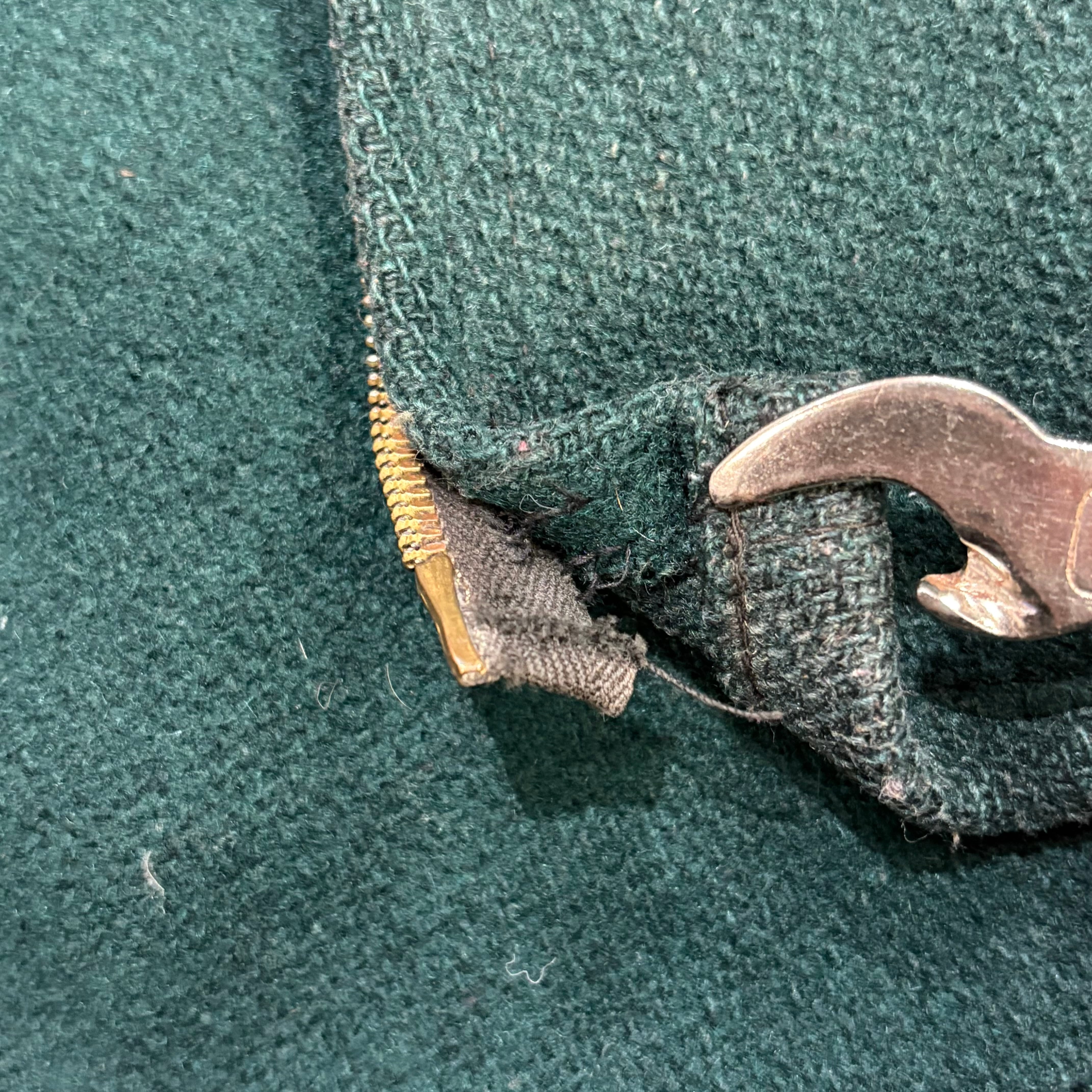 左カフスボタン欠損、左袖先レザーパイピングホツれ、ジップ取り付け部一部ホツれはございますが、虫食い等のないUSEDコンディションです。
