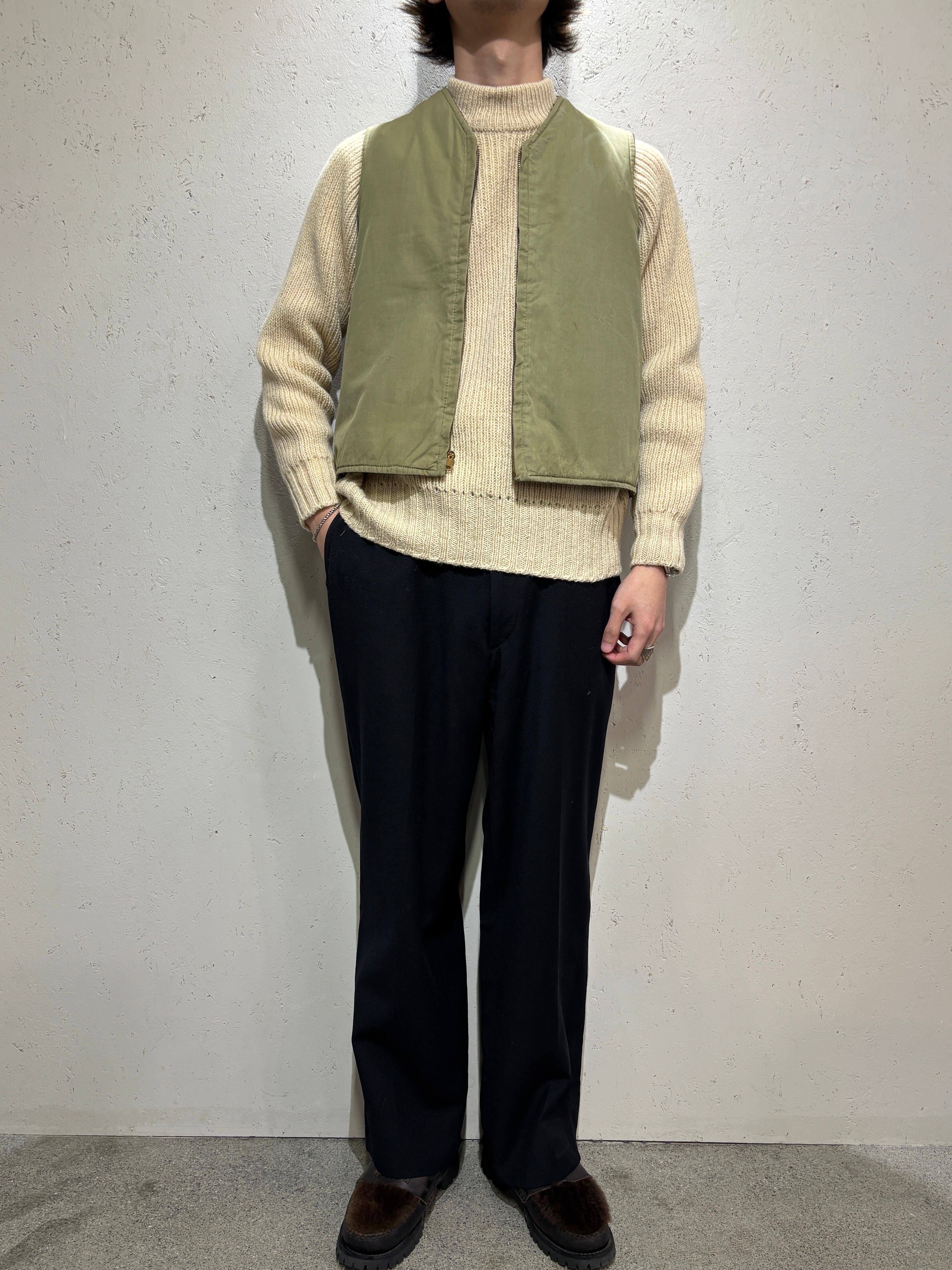 スウェットやセーターの上から着用いただいたりデニムジャケット等のアウターの上から合わせていただくことで、スタイリングのアクセントにもなりますし、それらのアイテムを寒い時期でも長く楽しんでいただけるというメリットもございます。