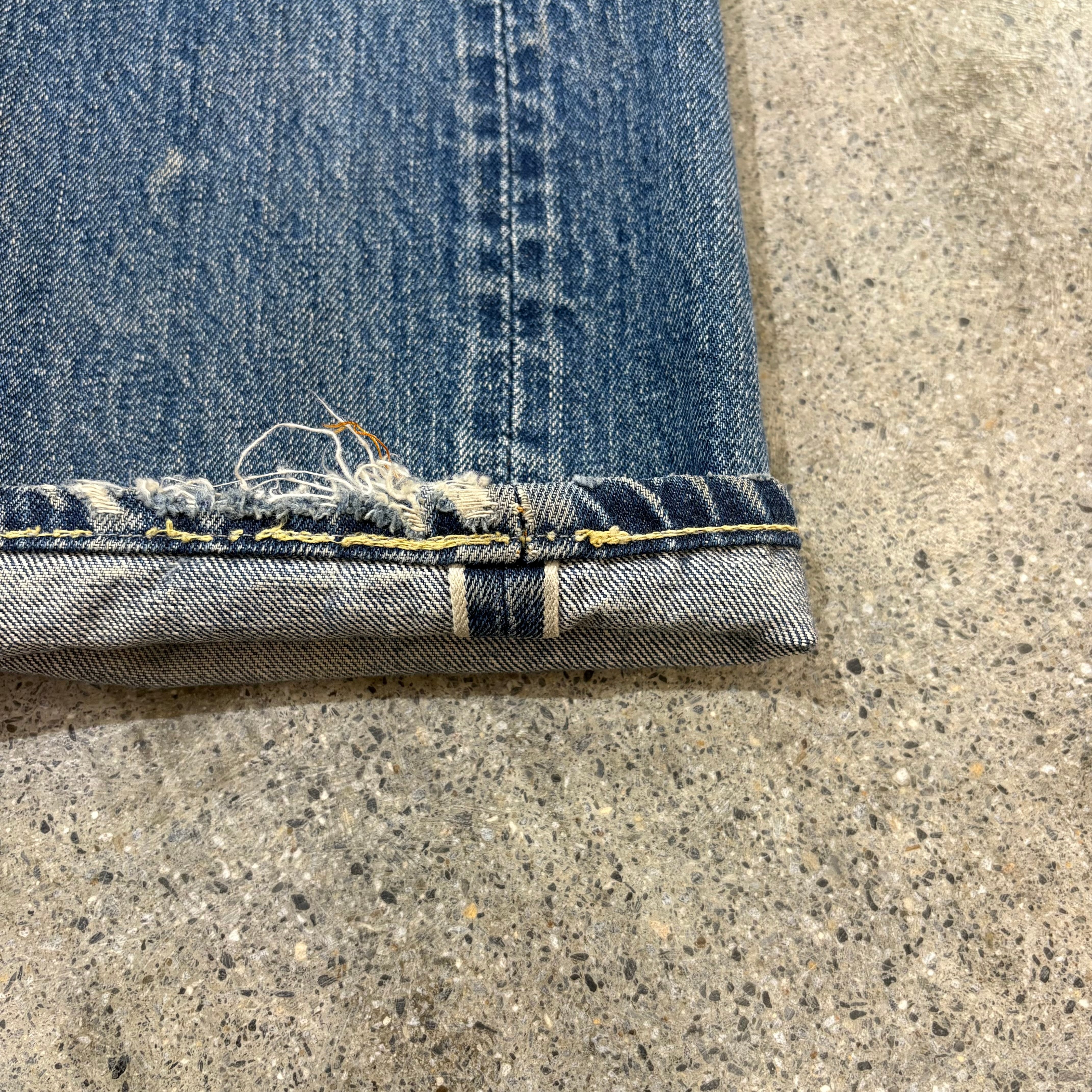 裾はイエロー綿糸の残るオリジナルレングスです。