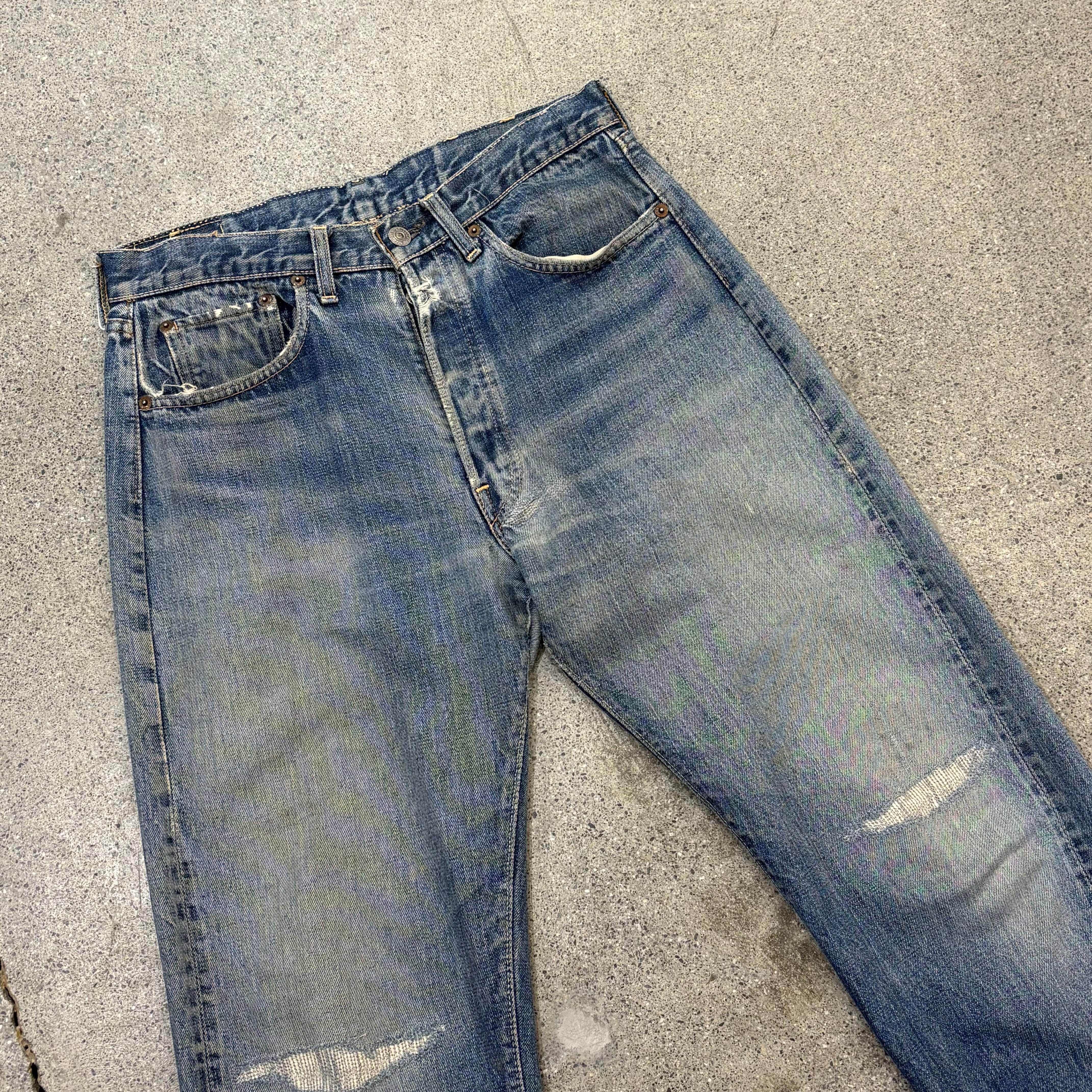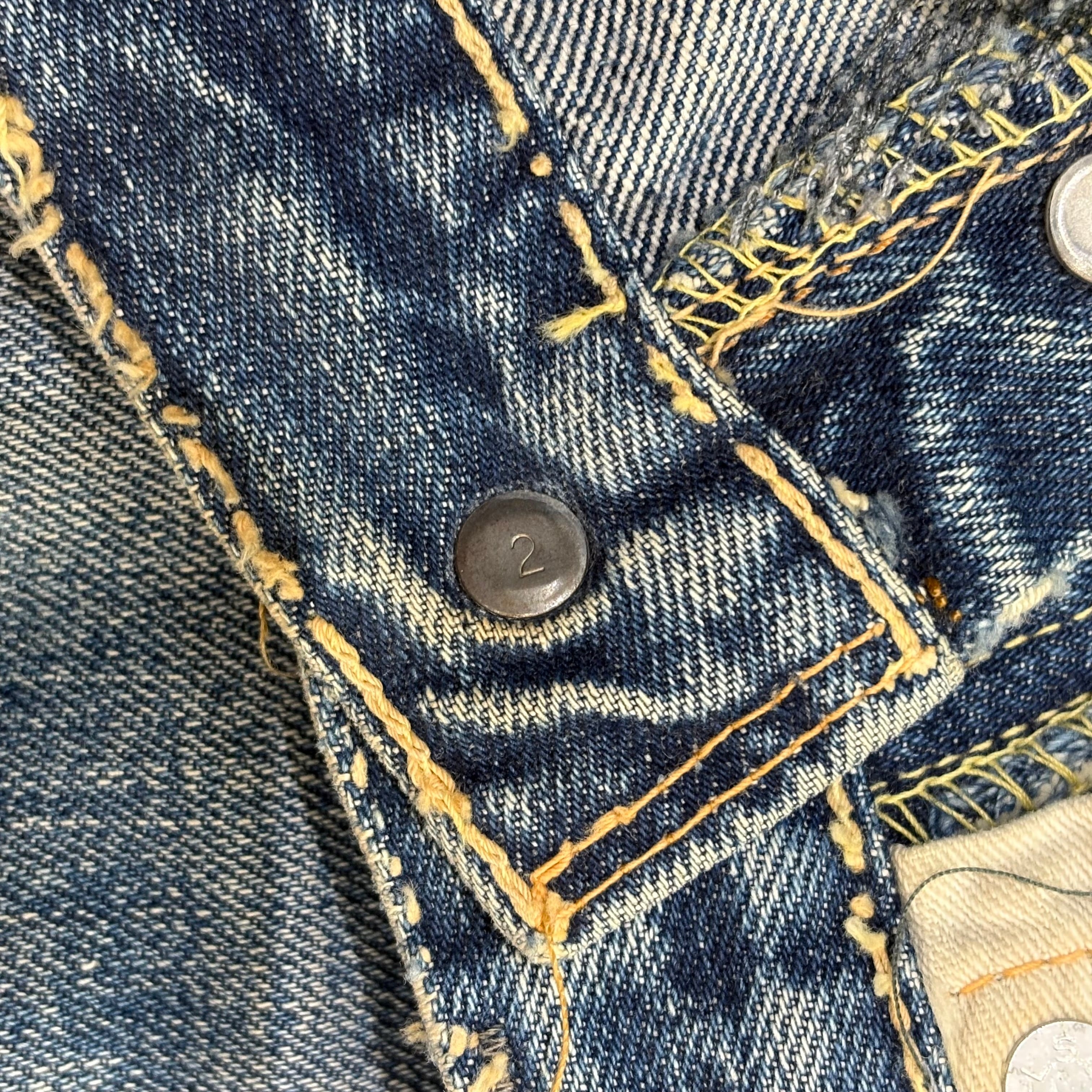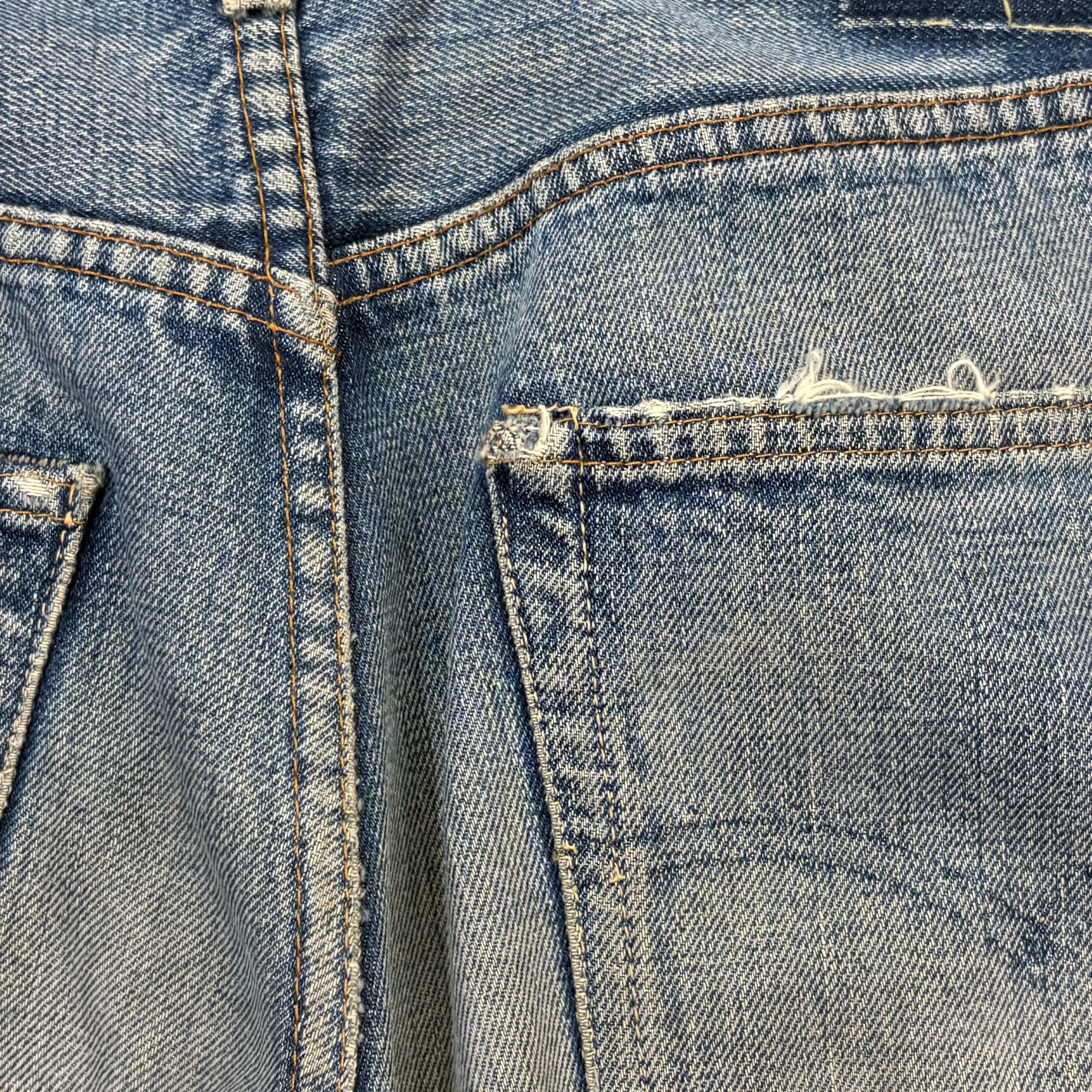 ところどころリペアはございますが、むしろヴィンテージジーンズらしい味のある個体かと思います。