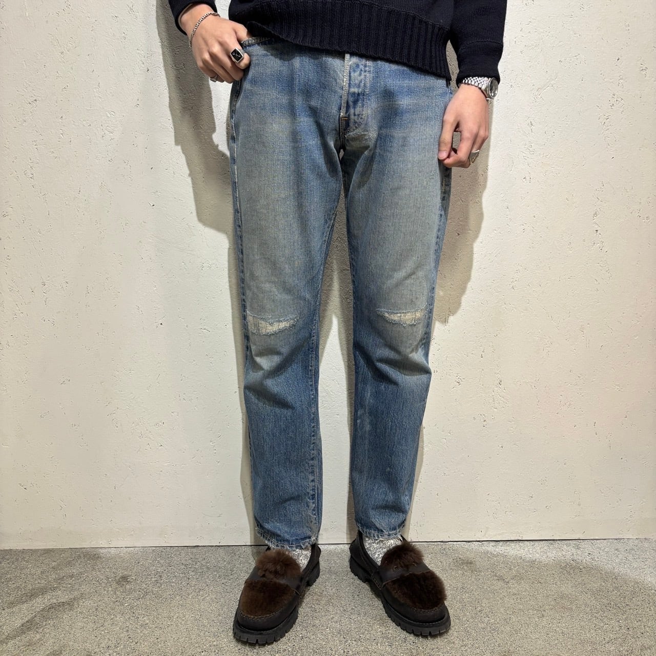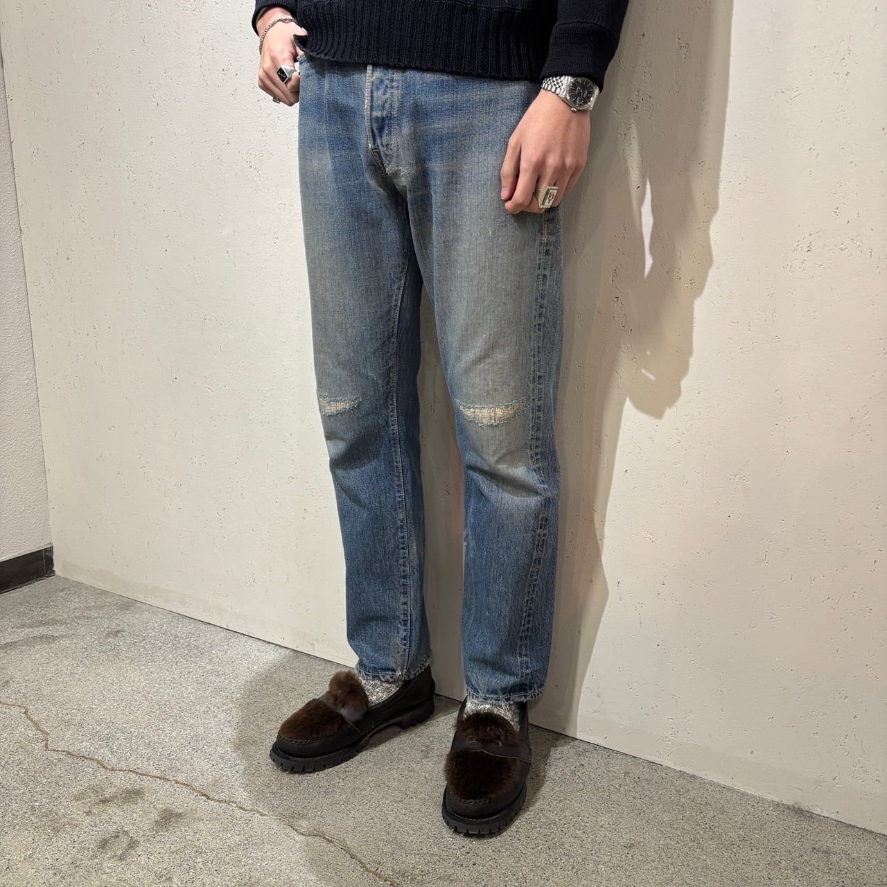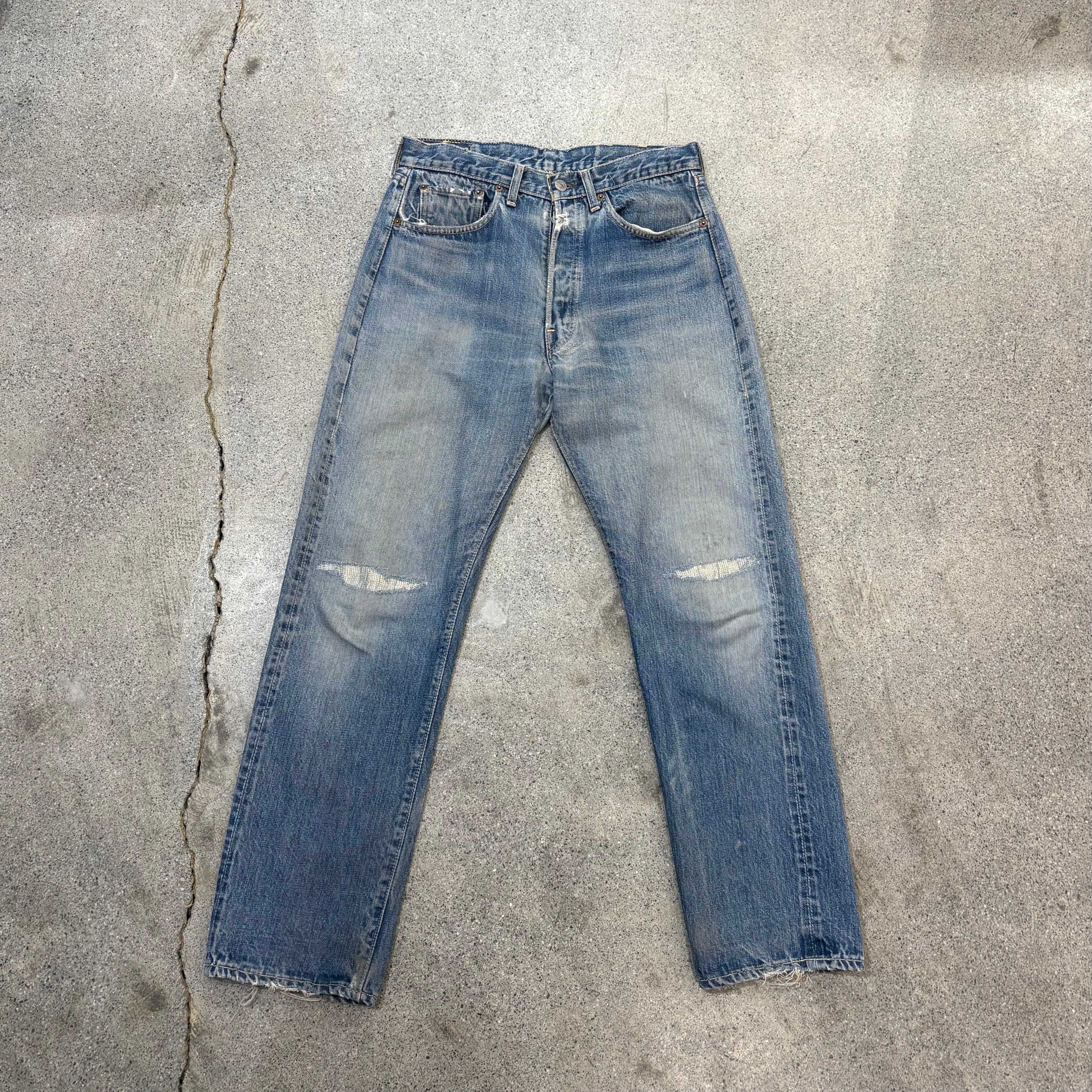ところどころリペアはございますが、むしろヴィンテージジーンズらしい味のある個体かと思います。