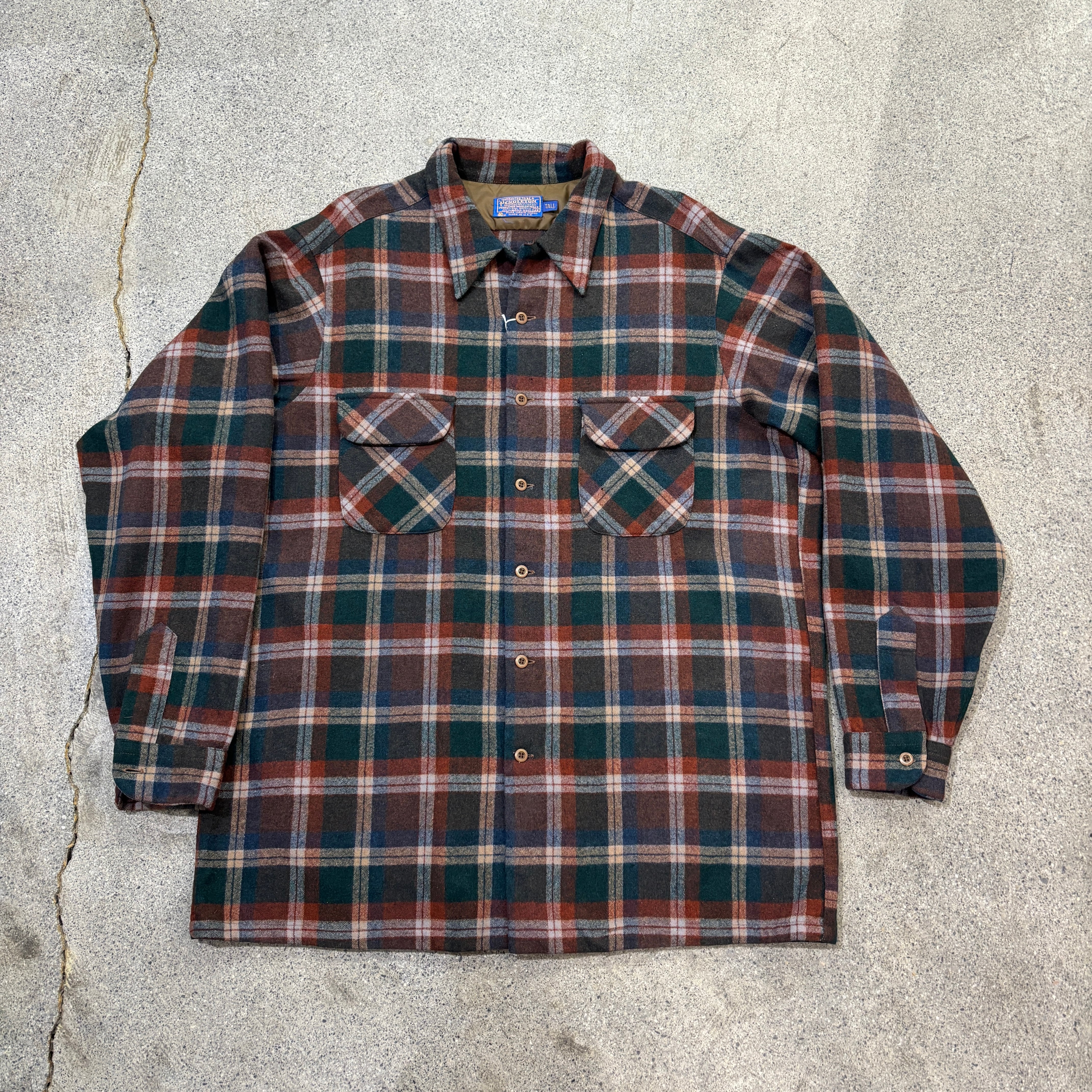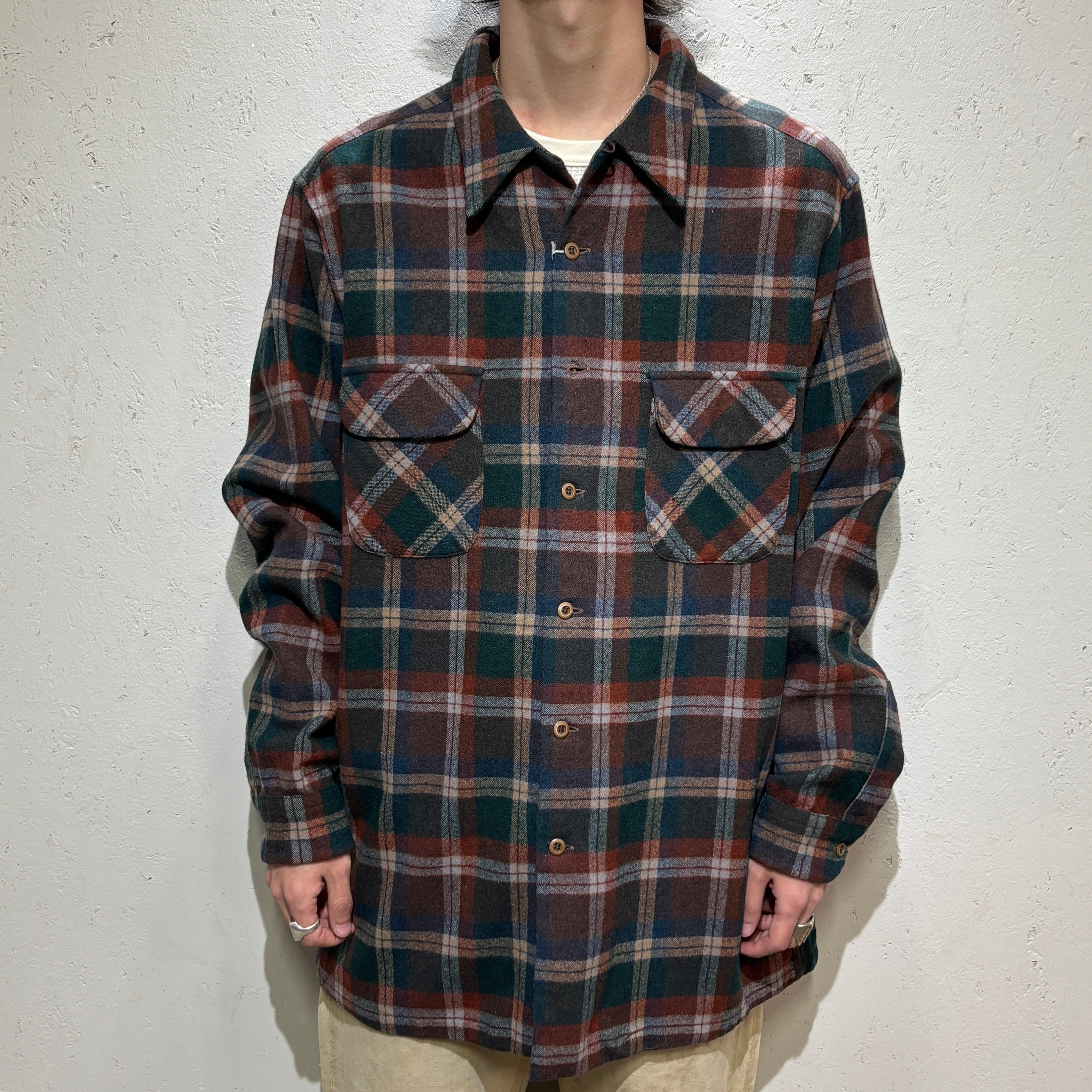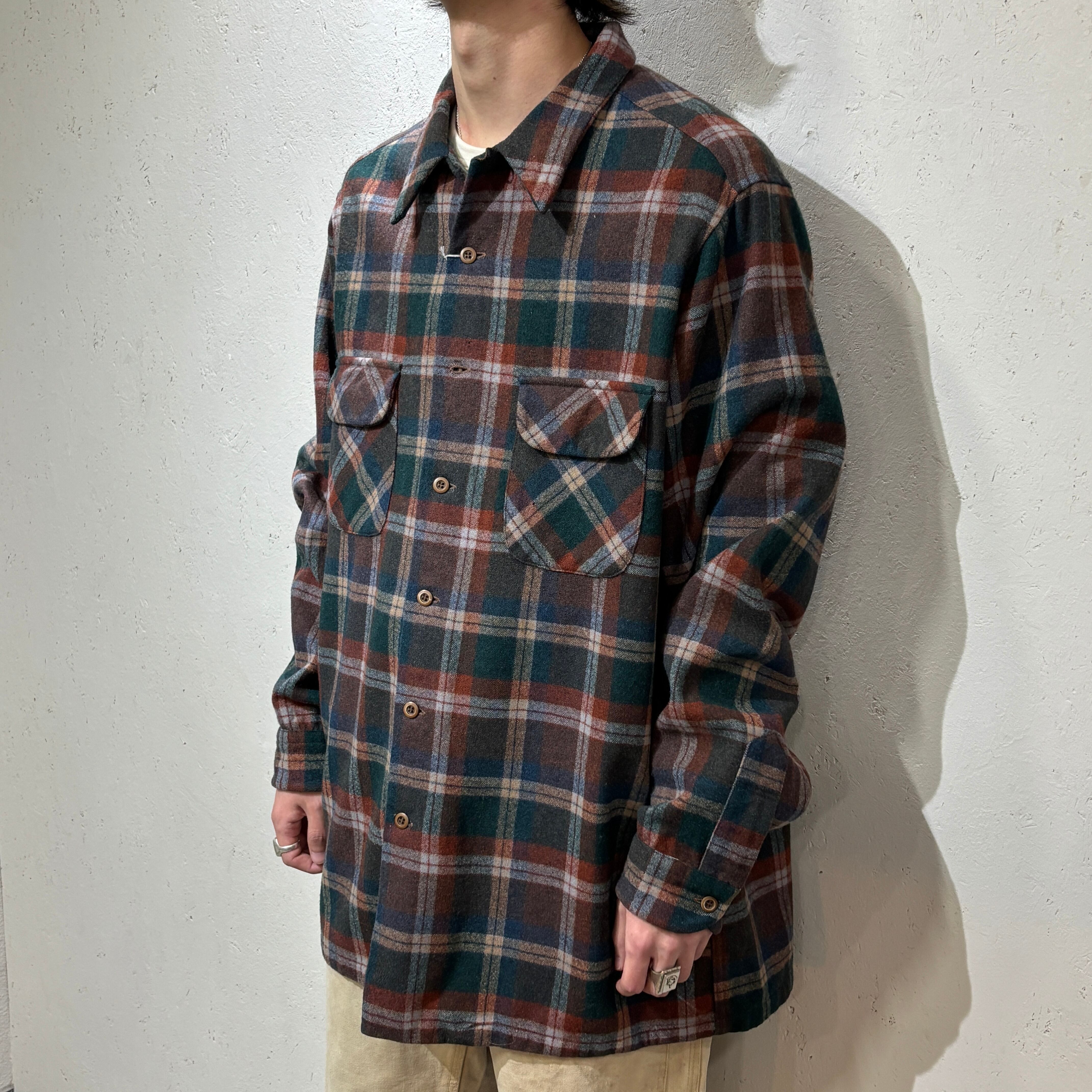 【Pendleton】Around 70s wool Shirt 2XL Tall "Good Color"