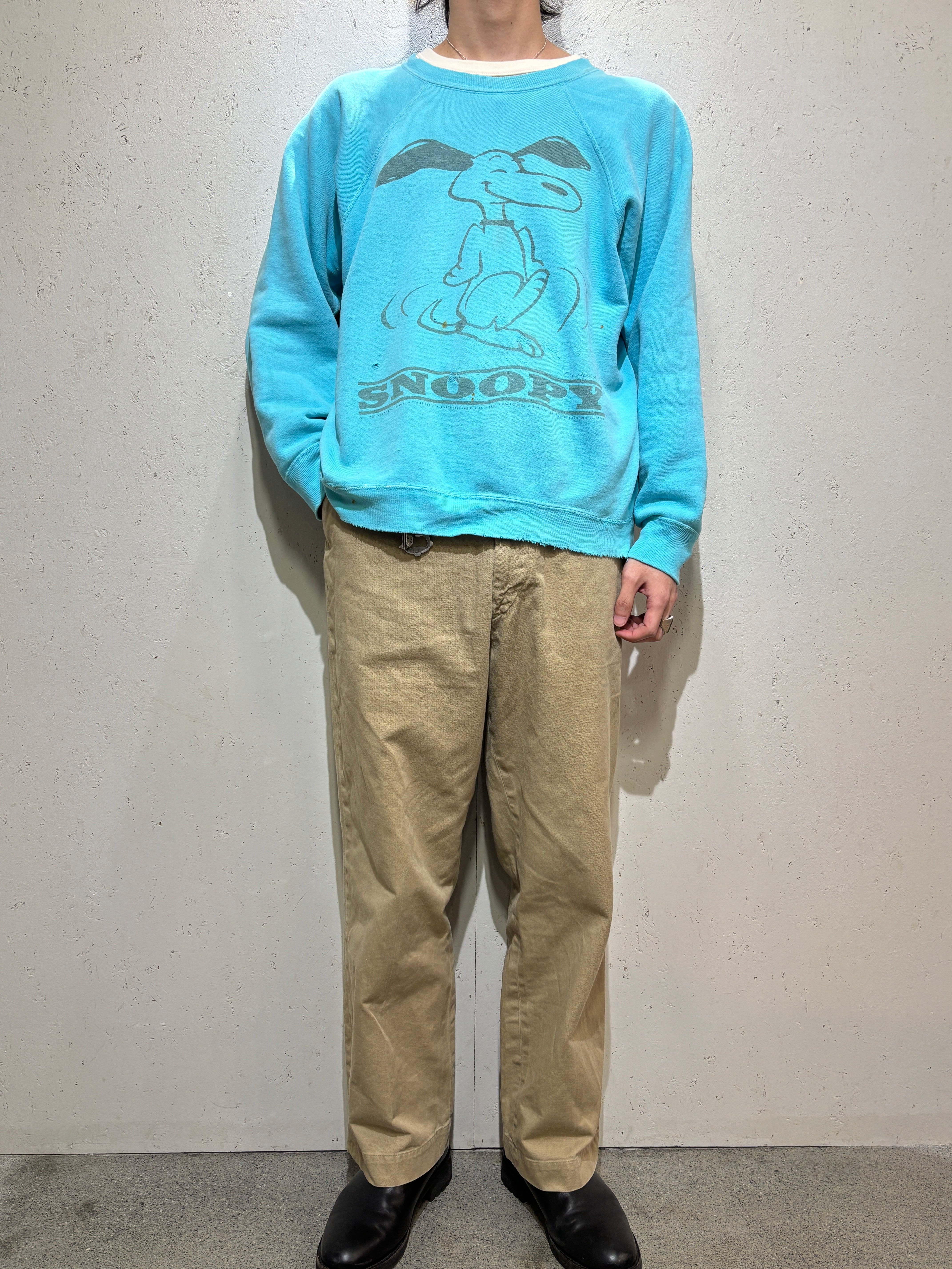 スプルースといえば、スヌーピーやチャーリーブラウンといったピーナッツのキャラクターと彼らの名言と共に染み込みプリントをしたスウェットが有名で、今回入荷したのはスヌーピーの個体になります。