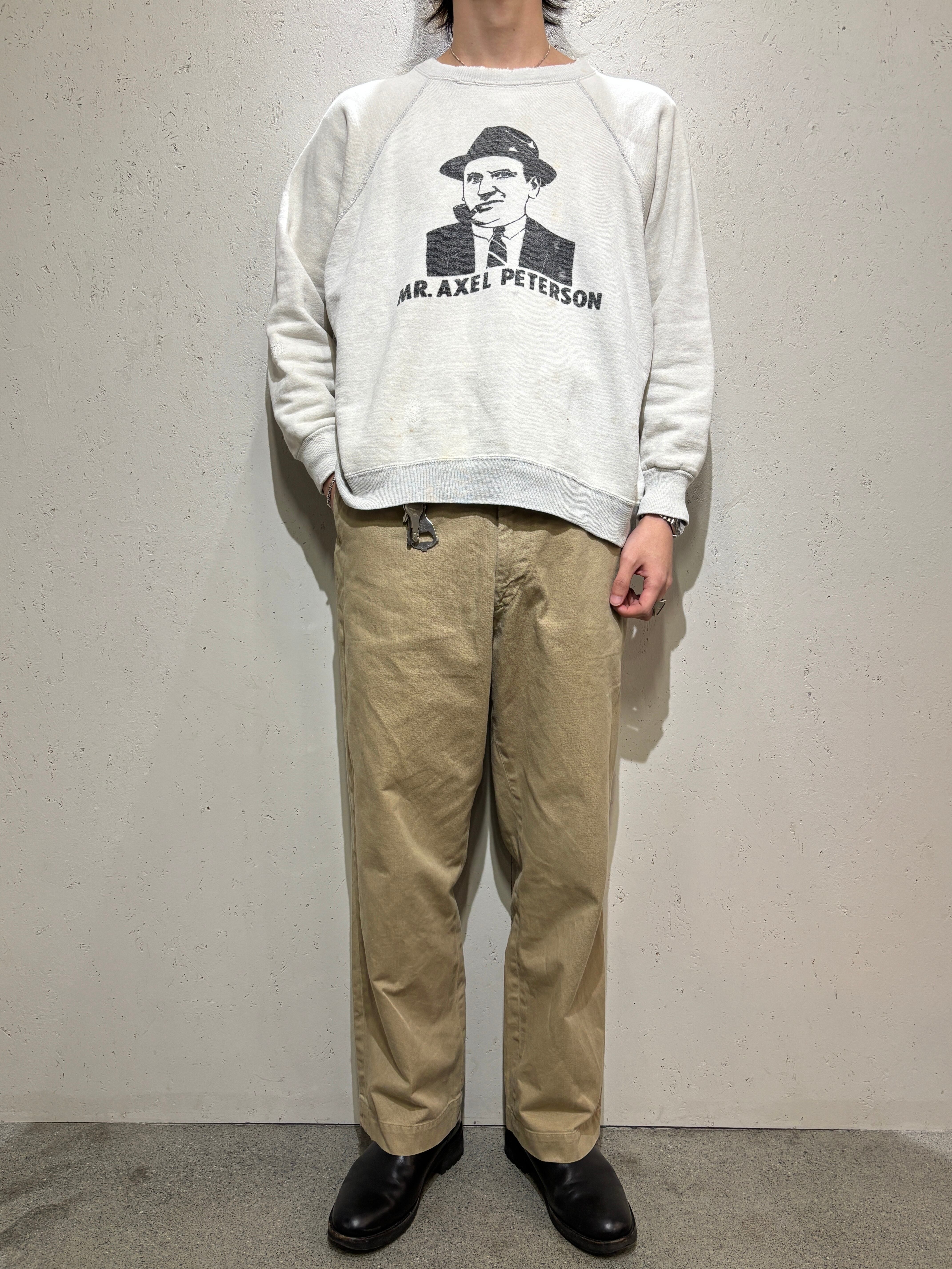 丈感はヴィンテージスウェットらしいサイズ感になりますで、短丈のジャケットと合わせてもらうと抜群です。