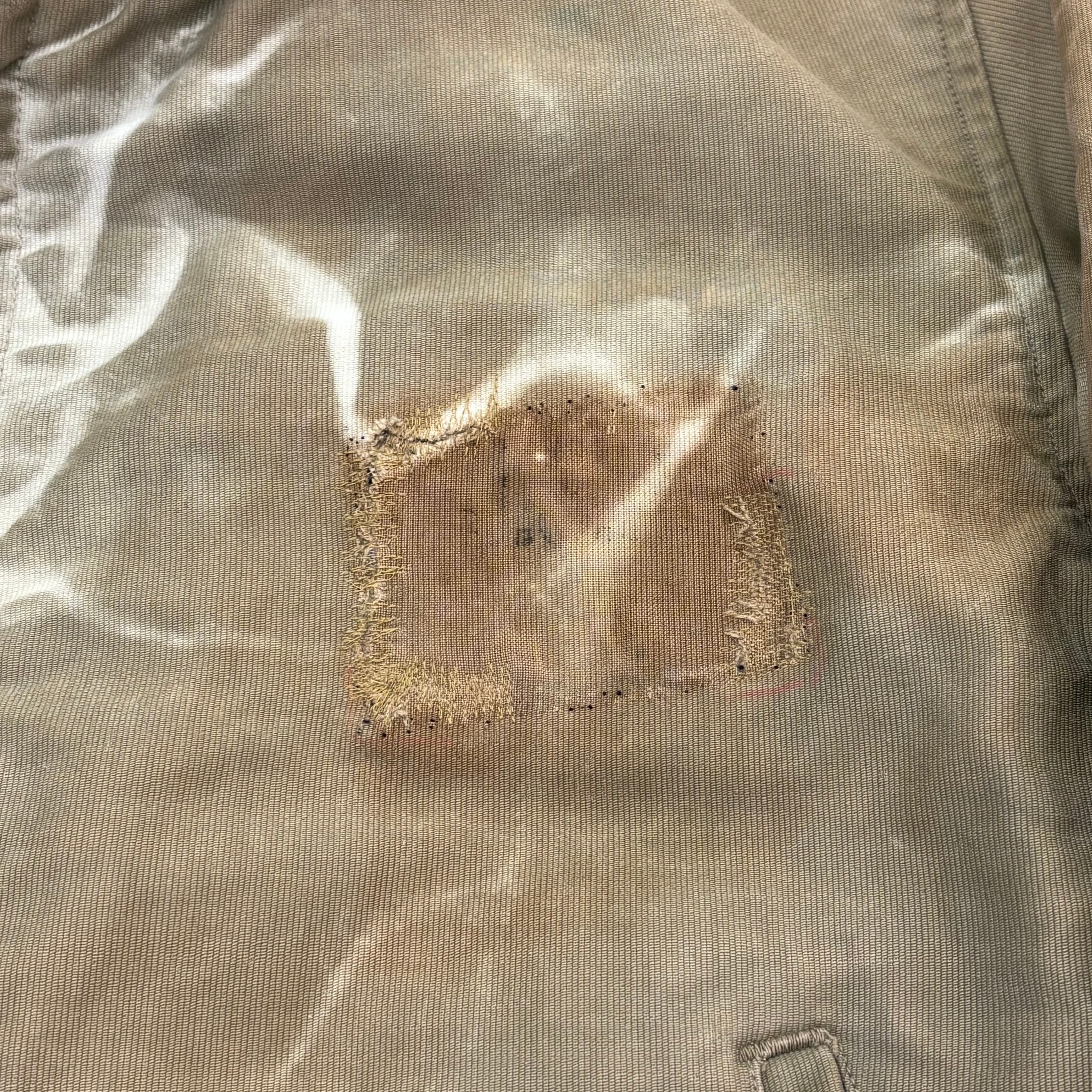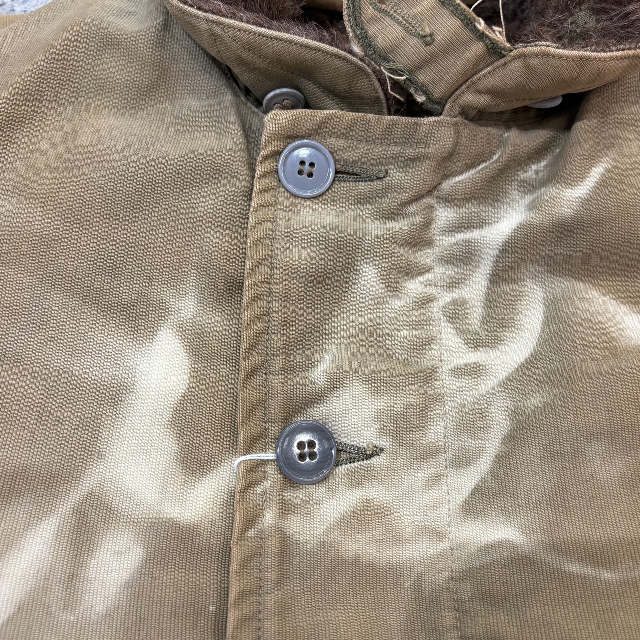 フロントボタン2カ所交換、ジップ破損、シェルに数カ所リペア、ダメージ、リブにダメージはございますが、着用には支障のないコンディションです。