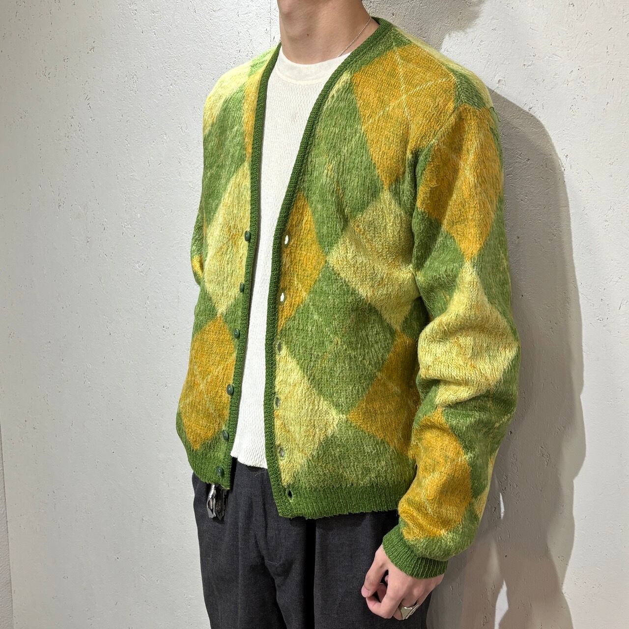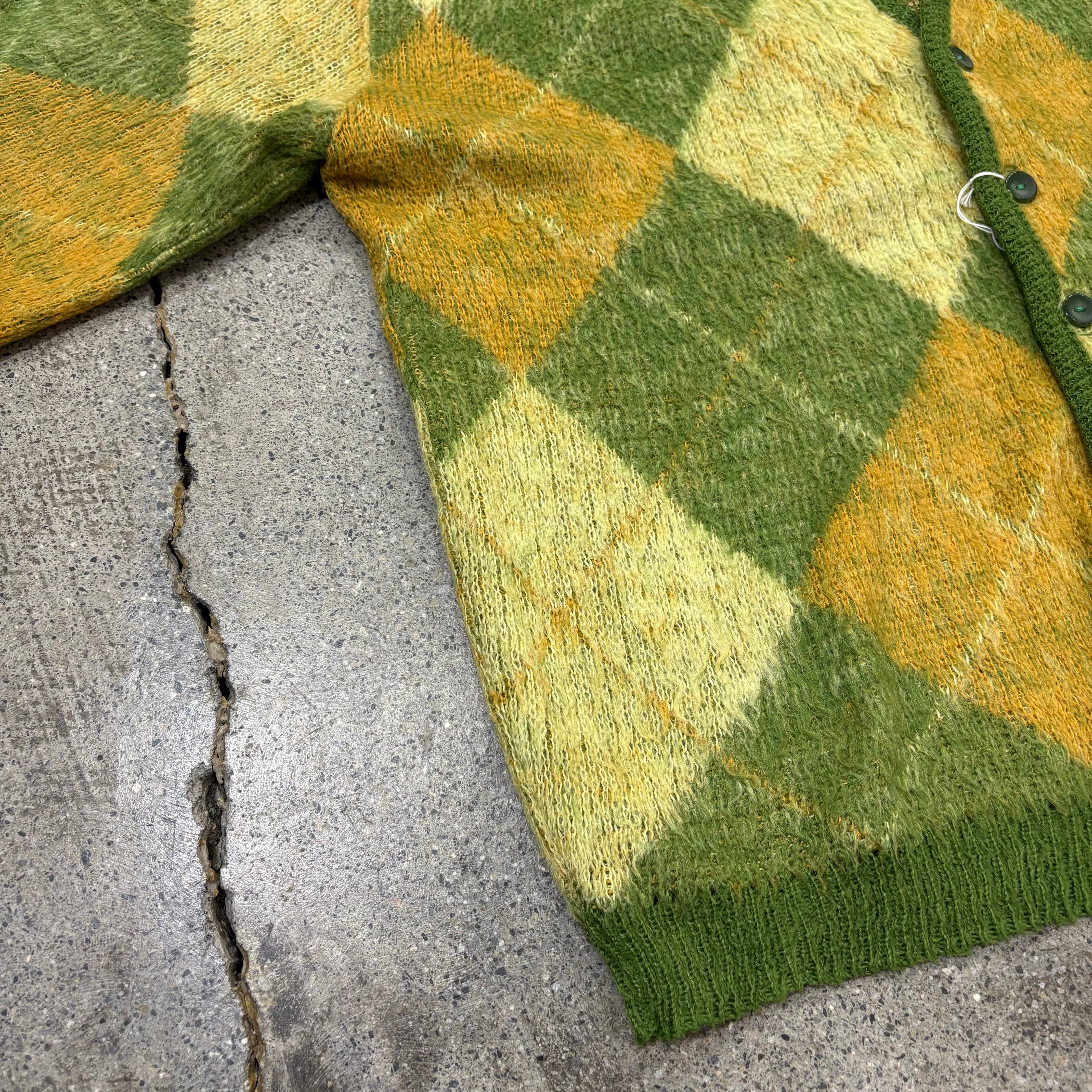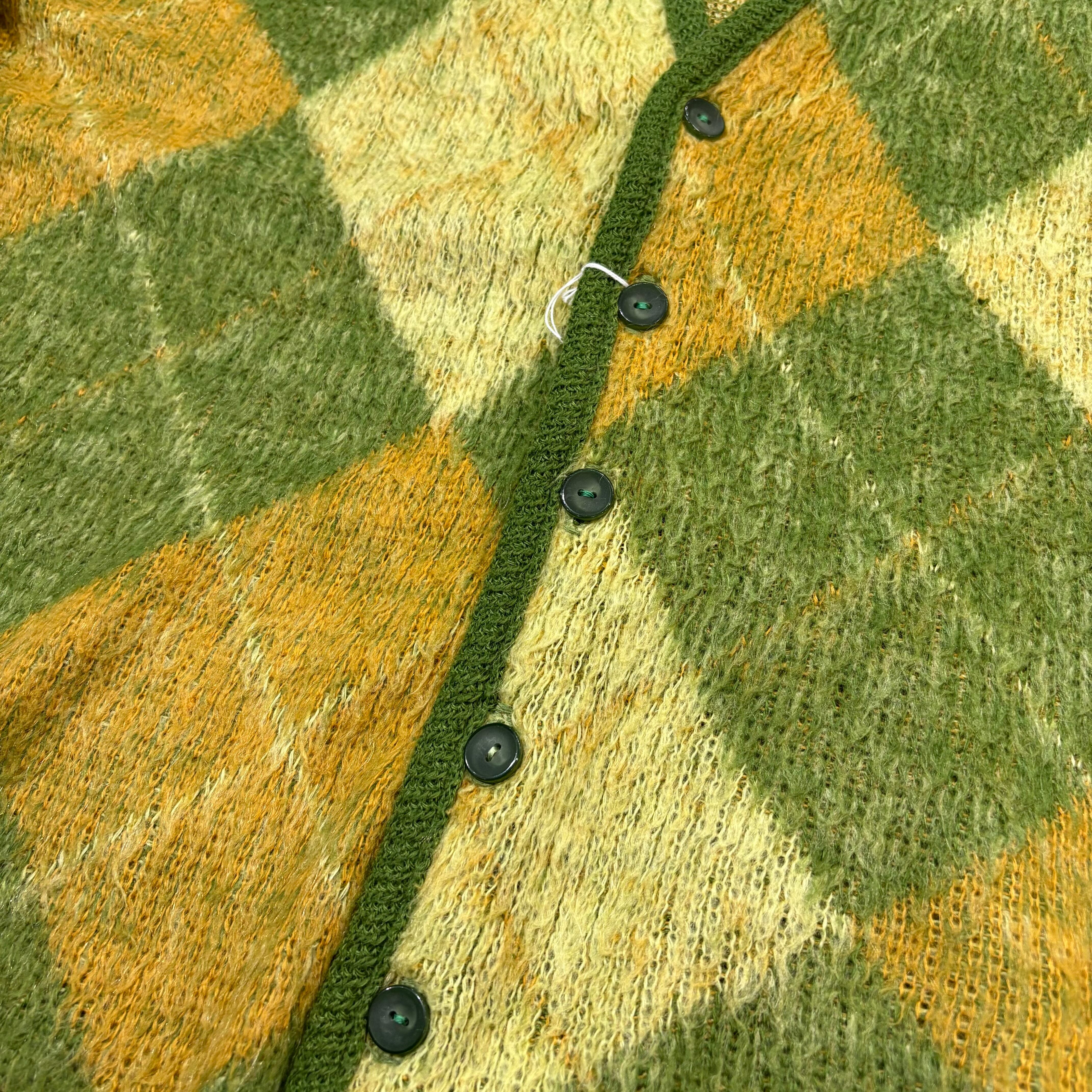 【Unknown】〜60s Mohair Cardigan Approx.M "Argyle"