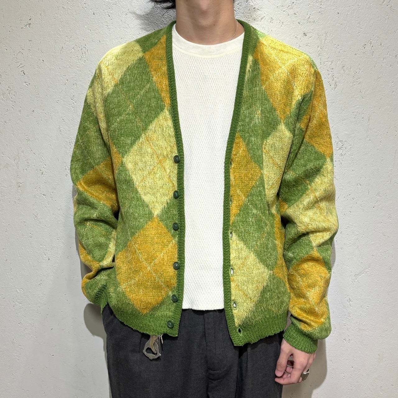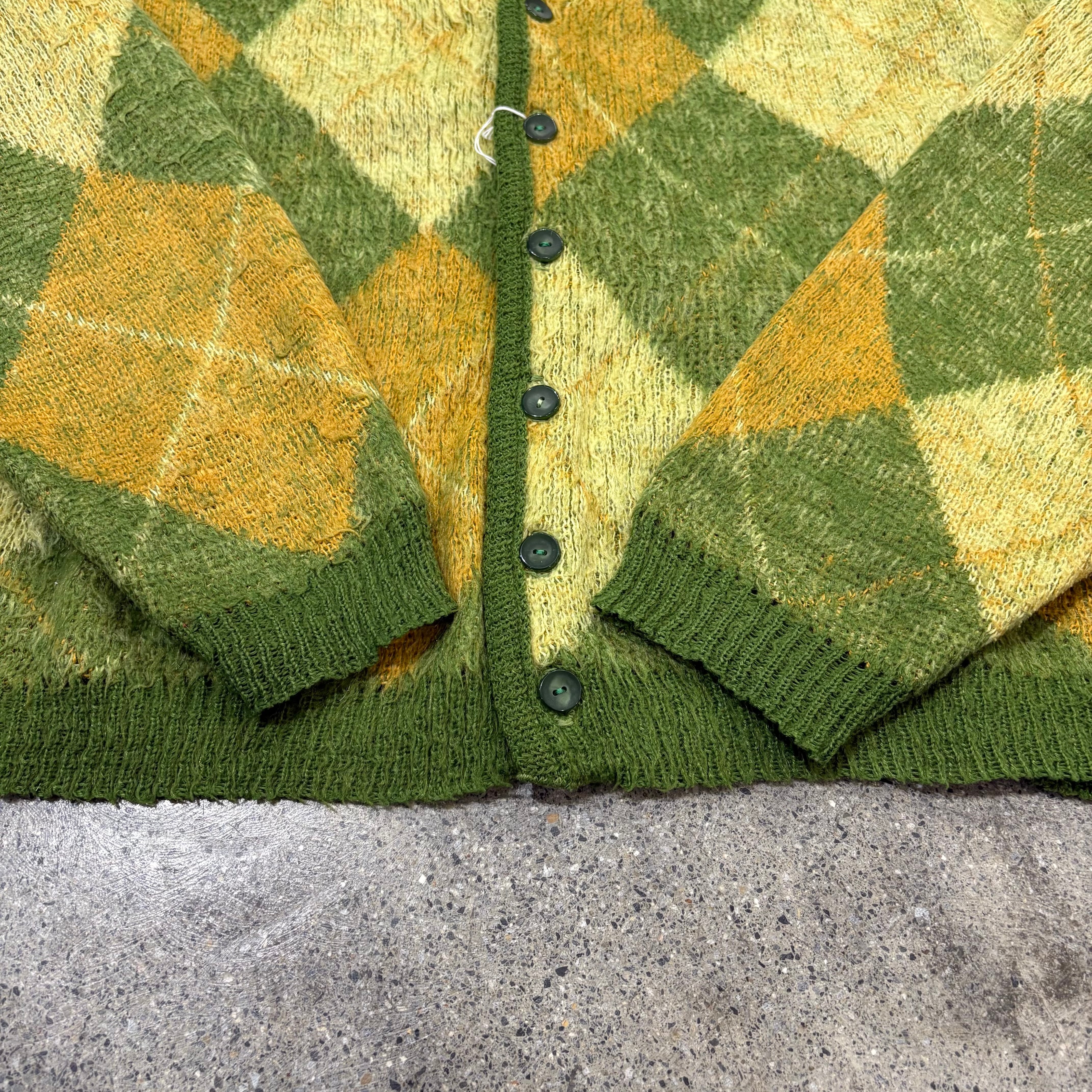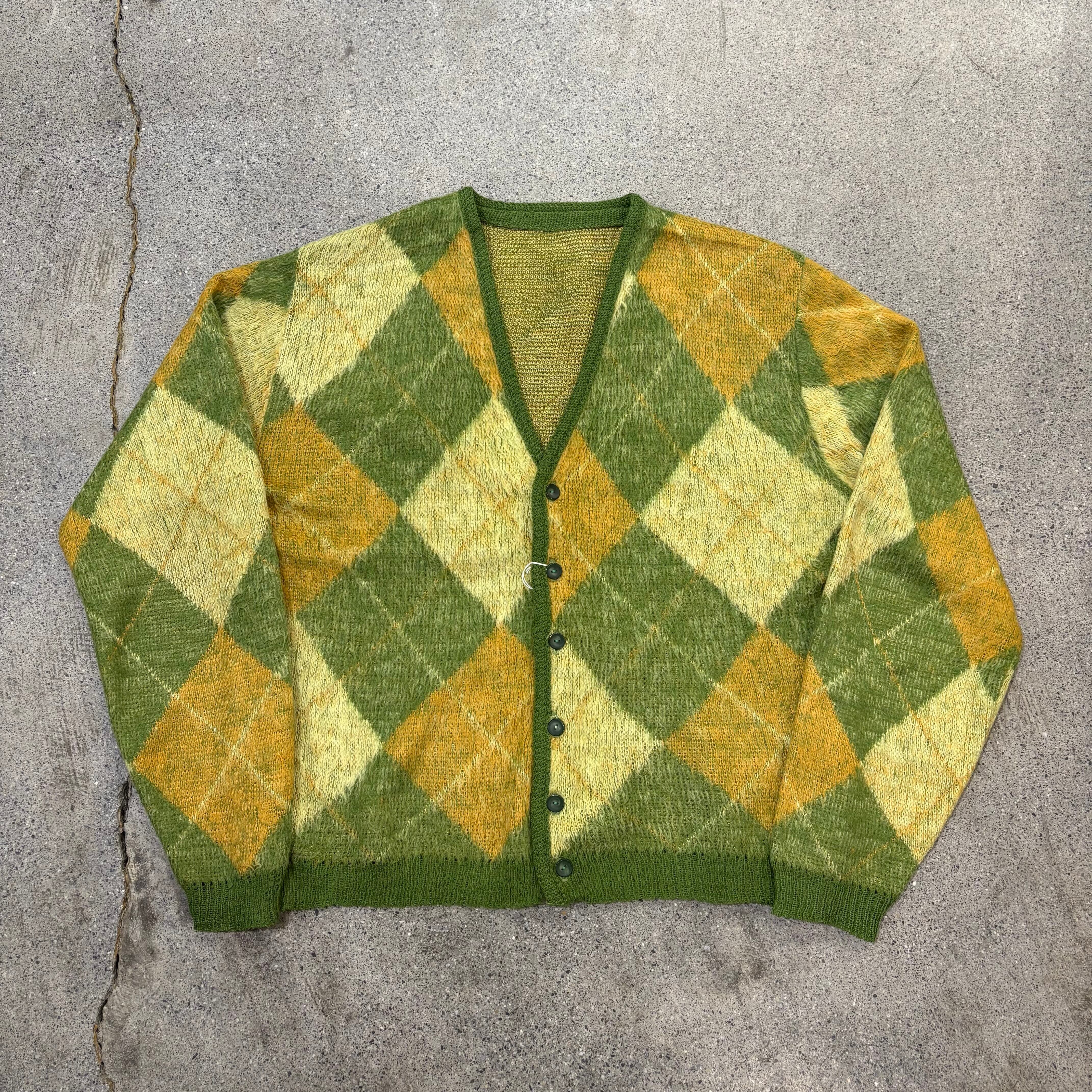 【Unknown】〜60s Mohair Cardigan Approx.M "Argyle"