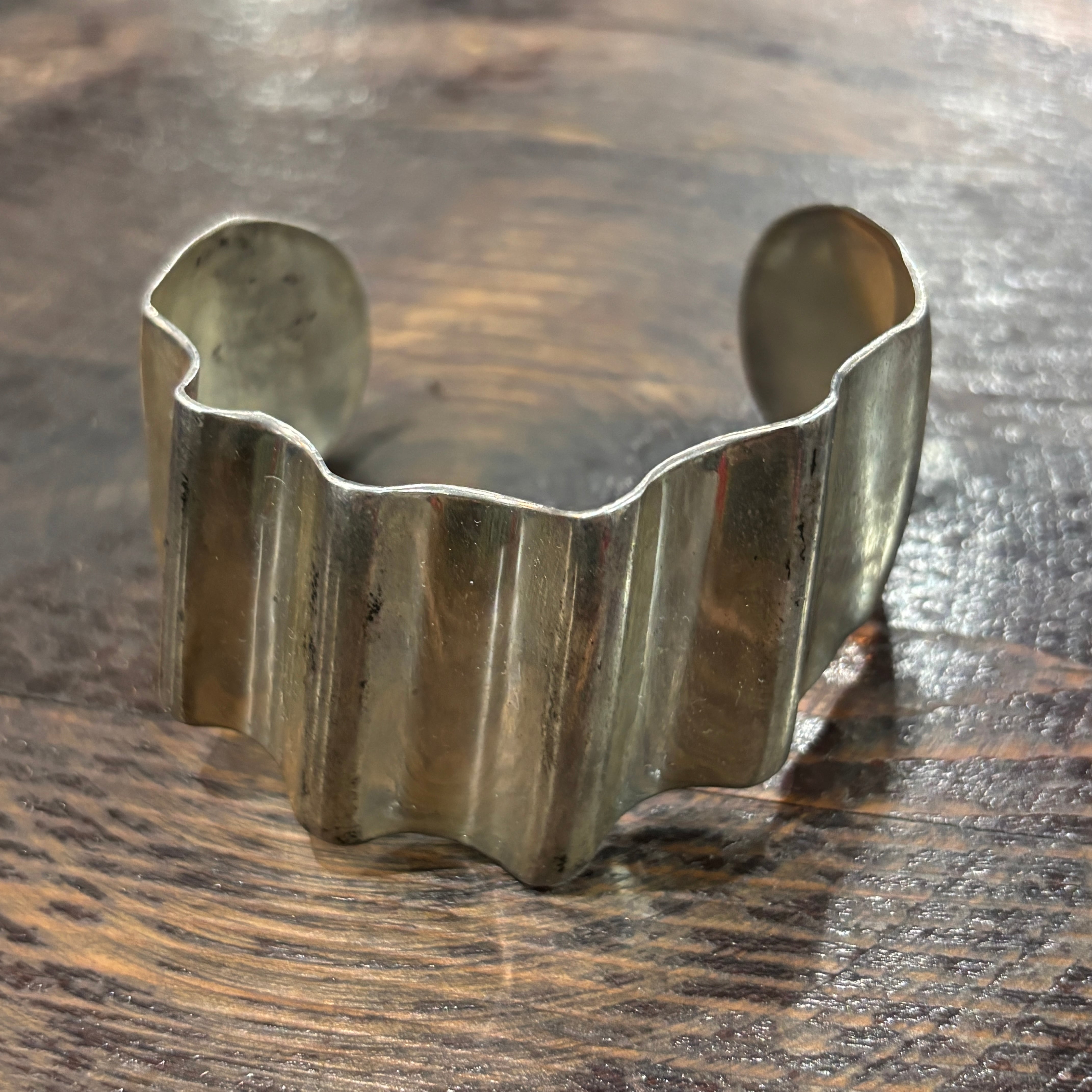 大ぶりなシルバーバングルで、一本つけるだけで存在感抜群の個体です。