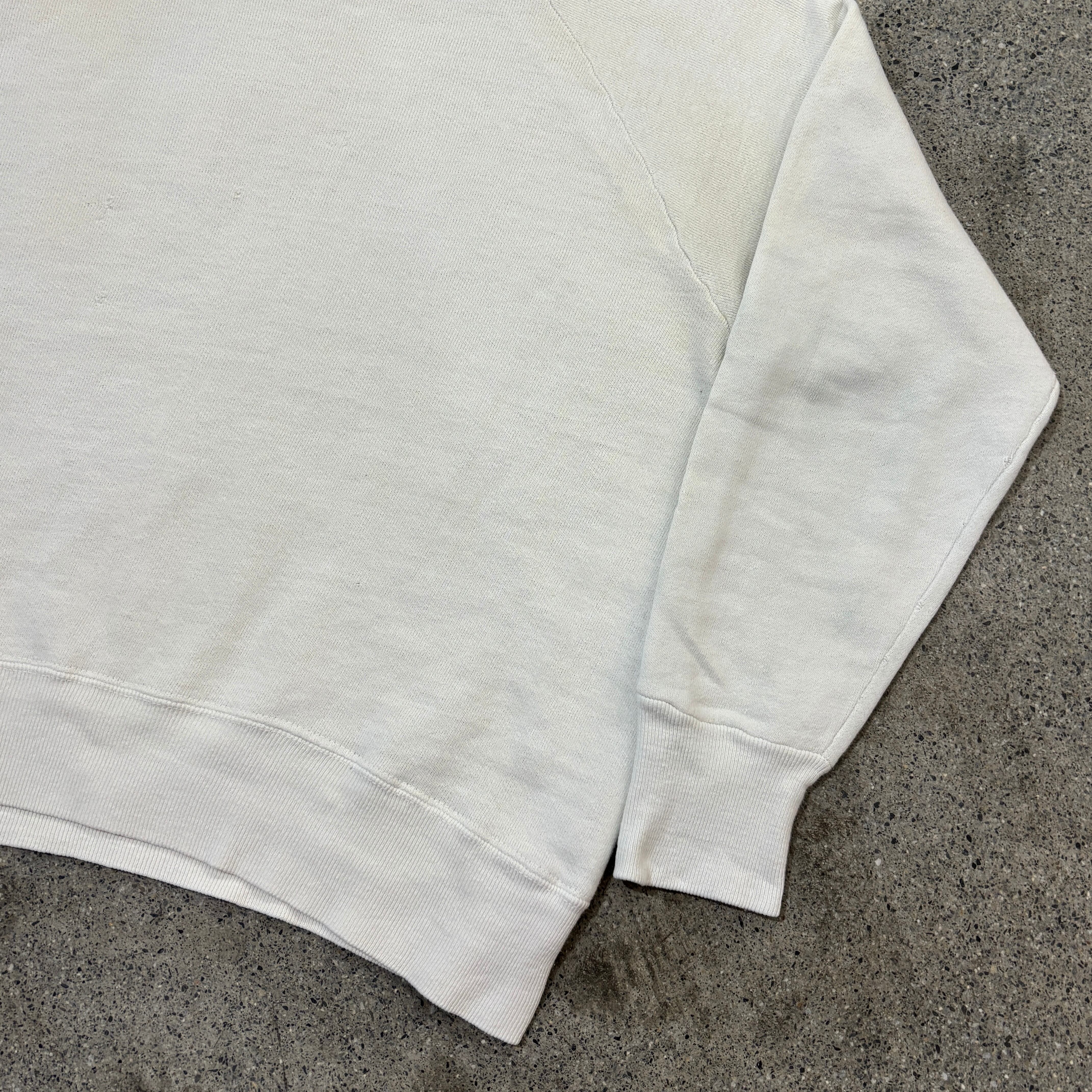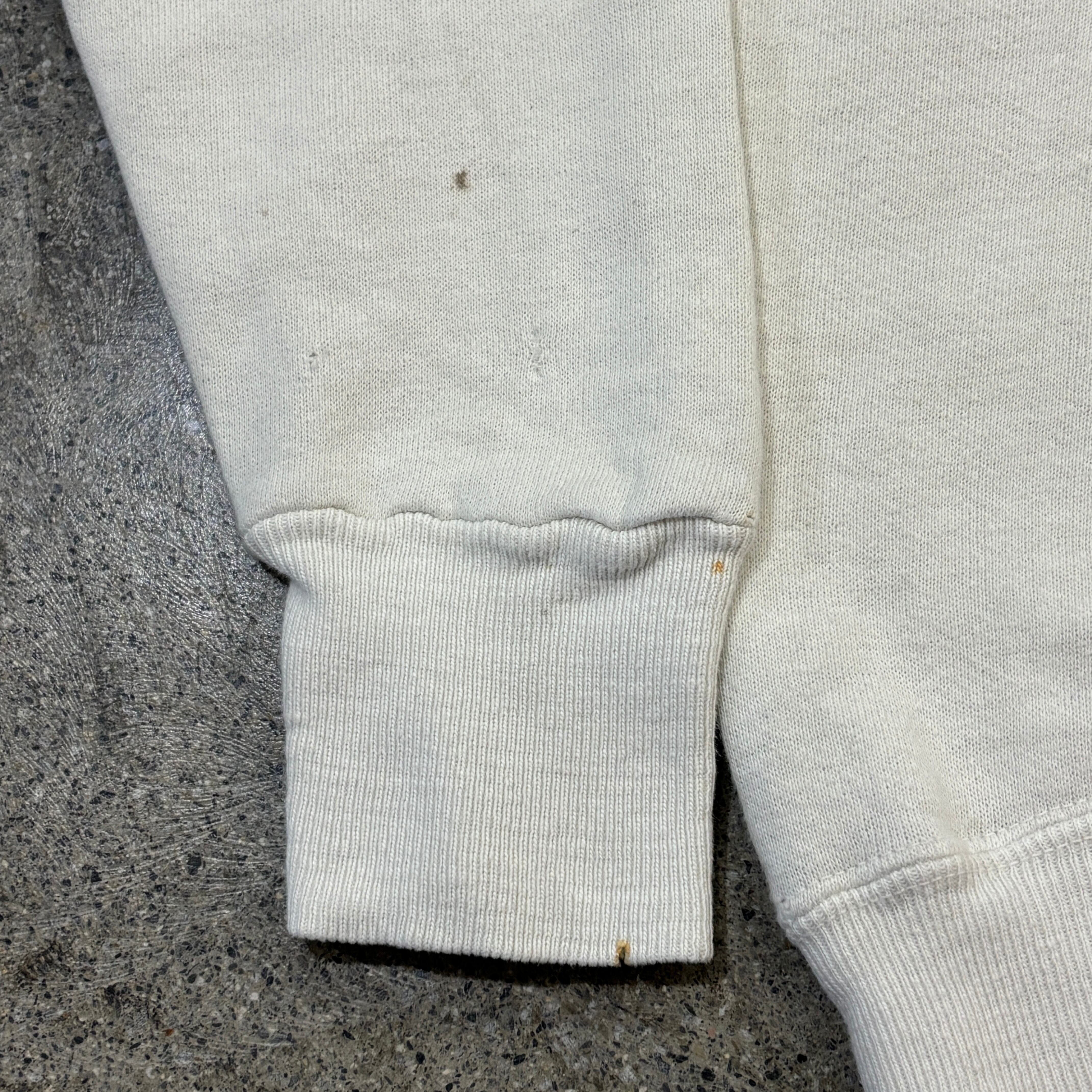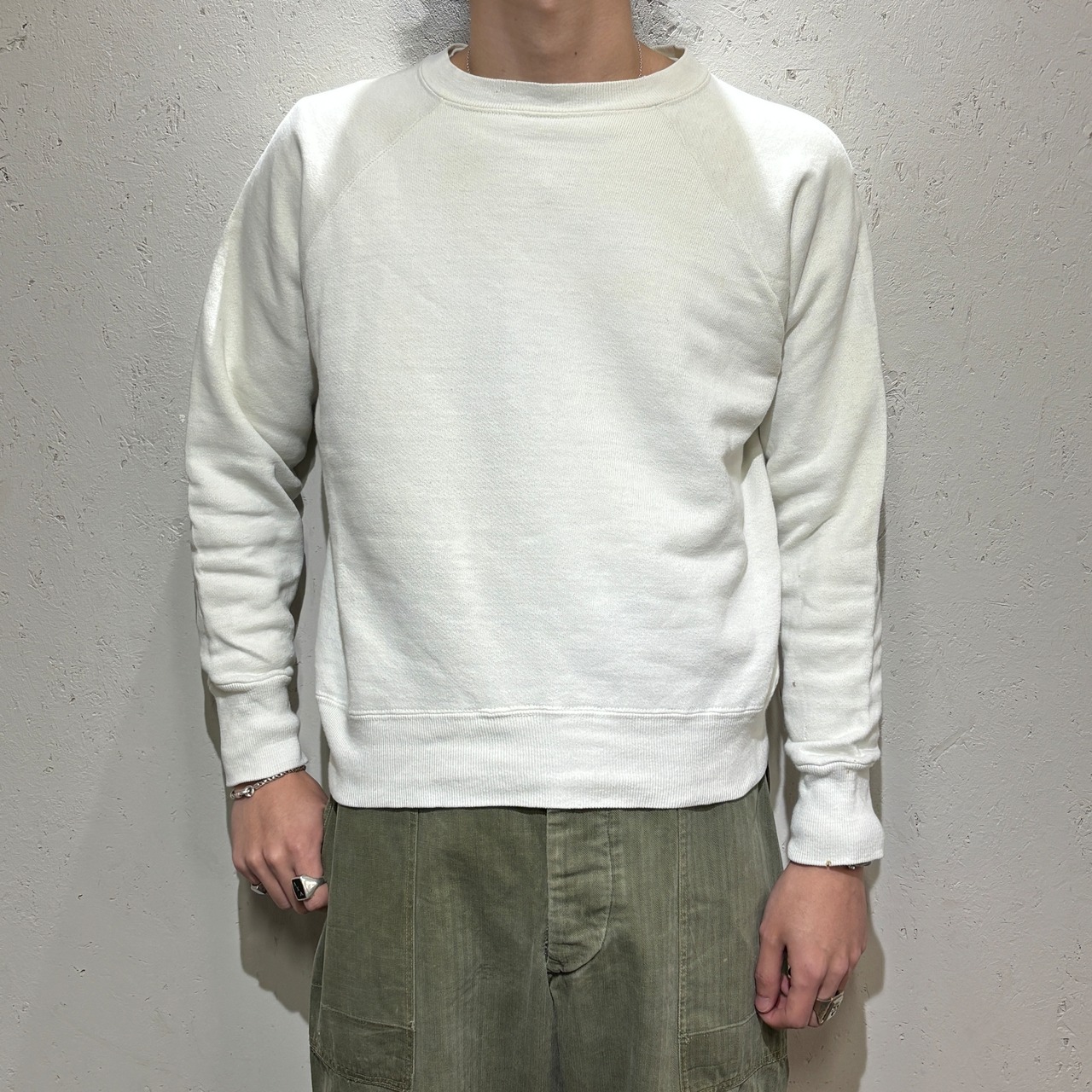 この年代のスウェットと言えば小さい個体が多いのですが、身幅55.5㎝程度あるグッドサイズの個体になります。