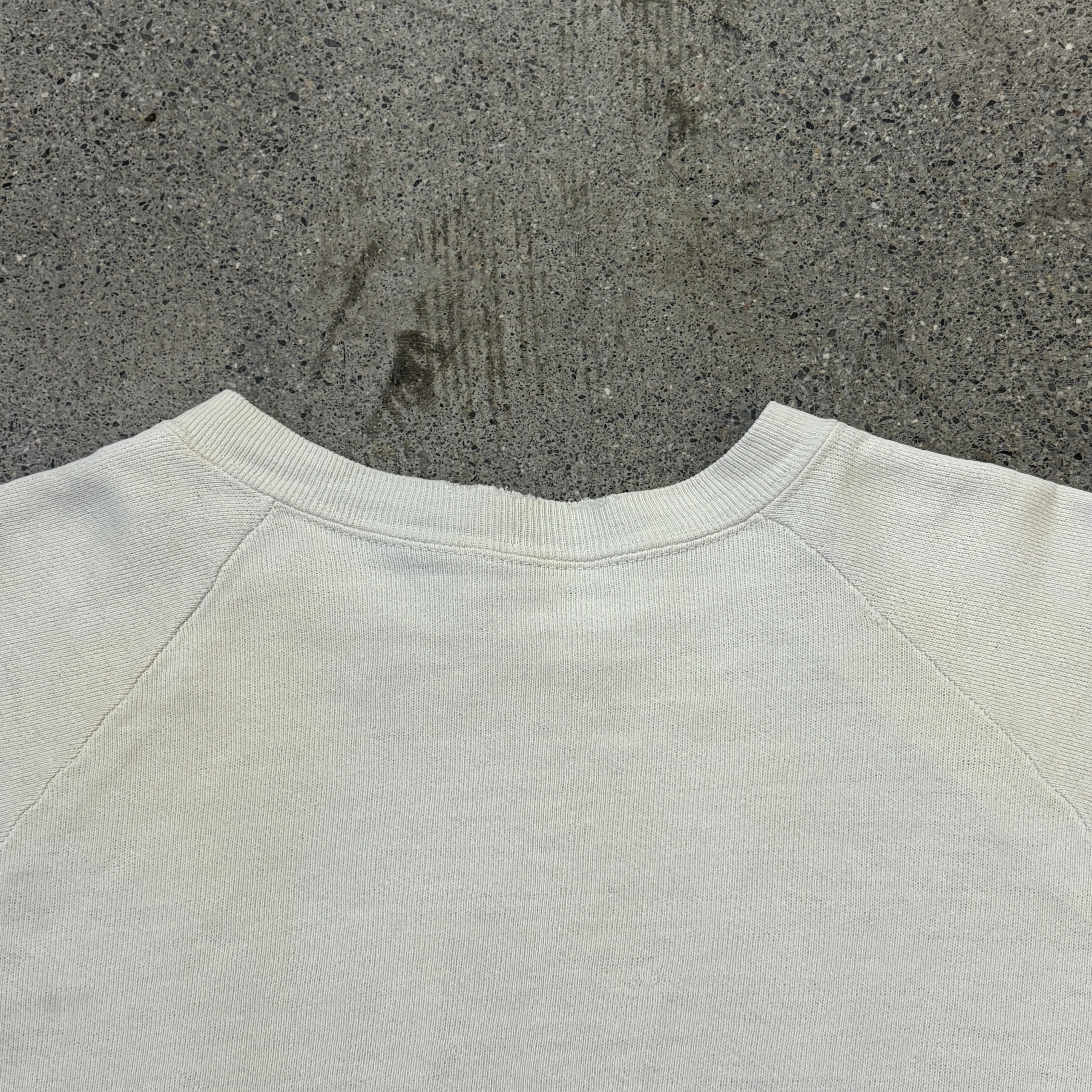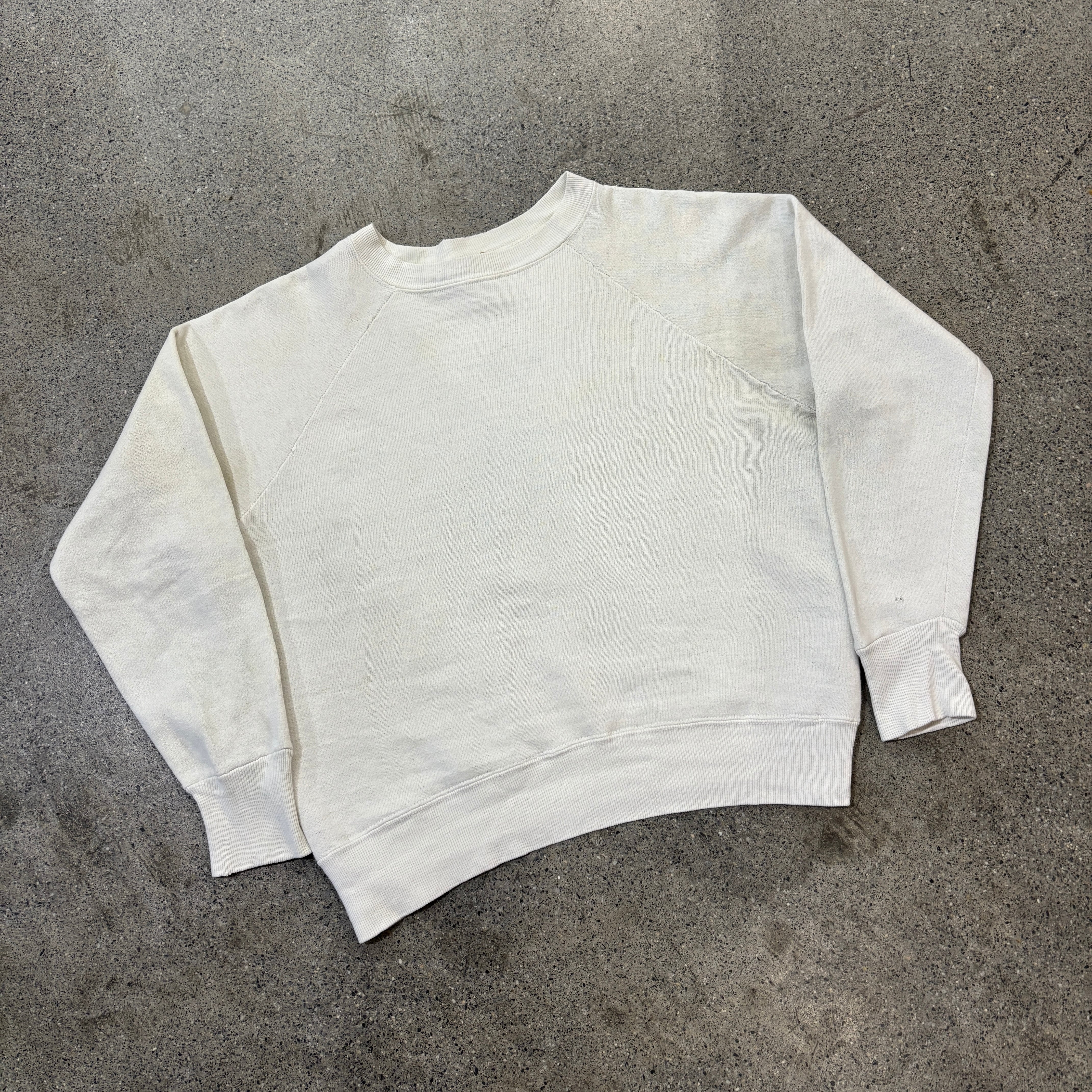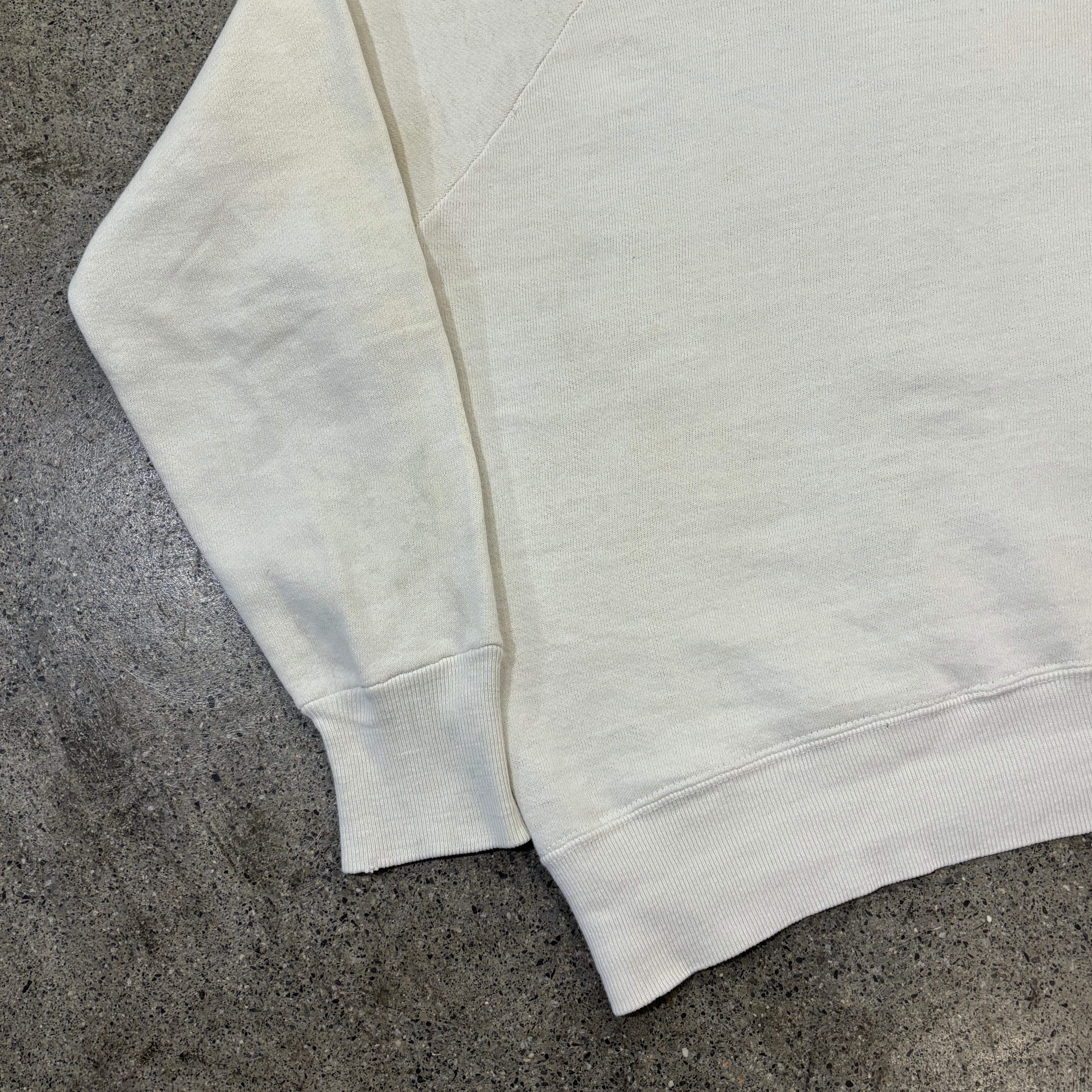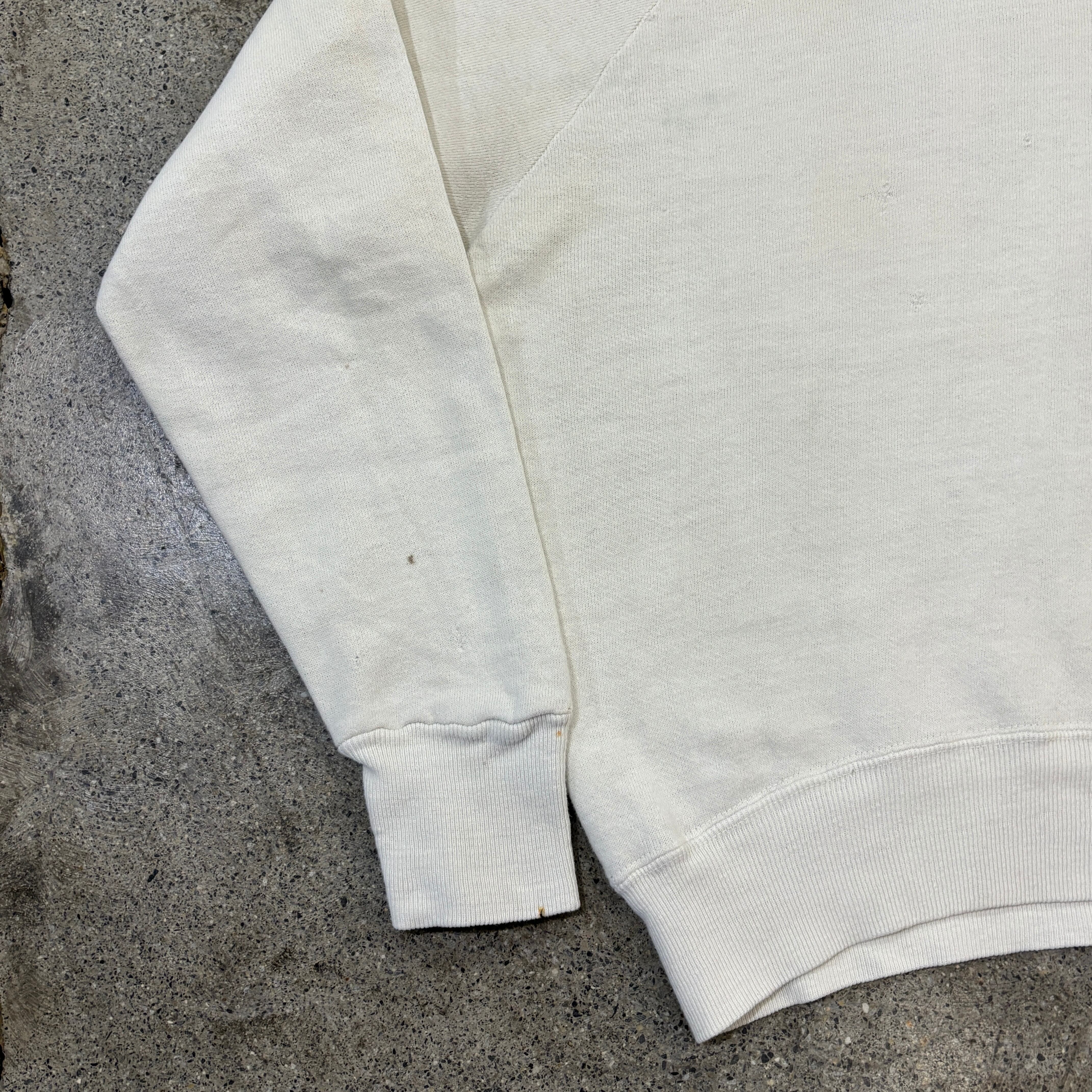 この年代のスウェットと言えば小さい個体が多いのですが、身幅55.5㎝程度あるグッドサイズの個体になります。