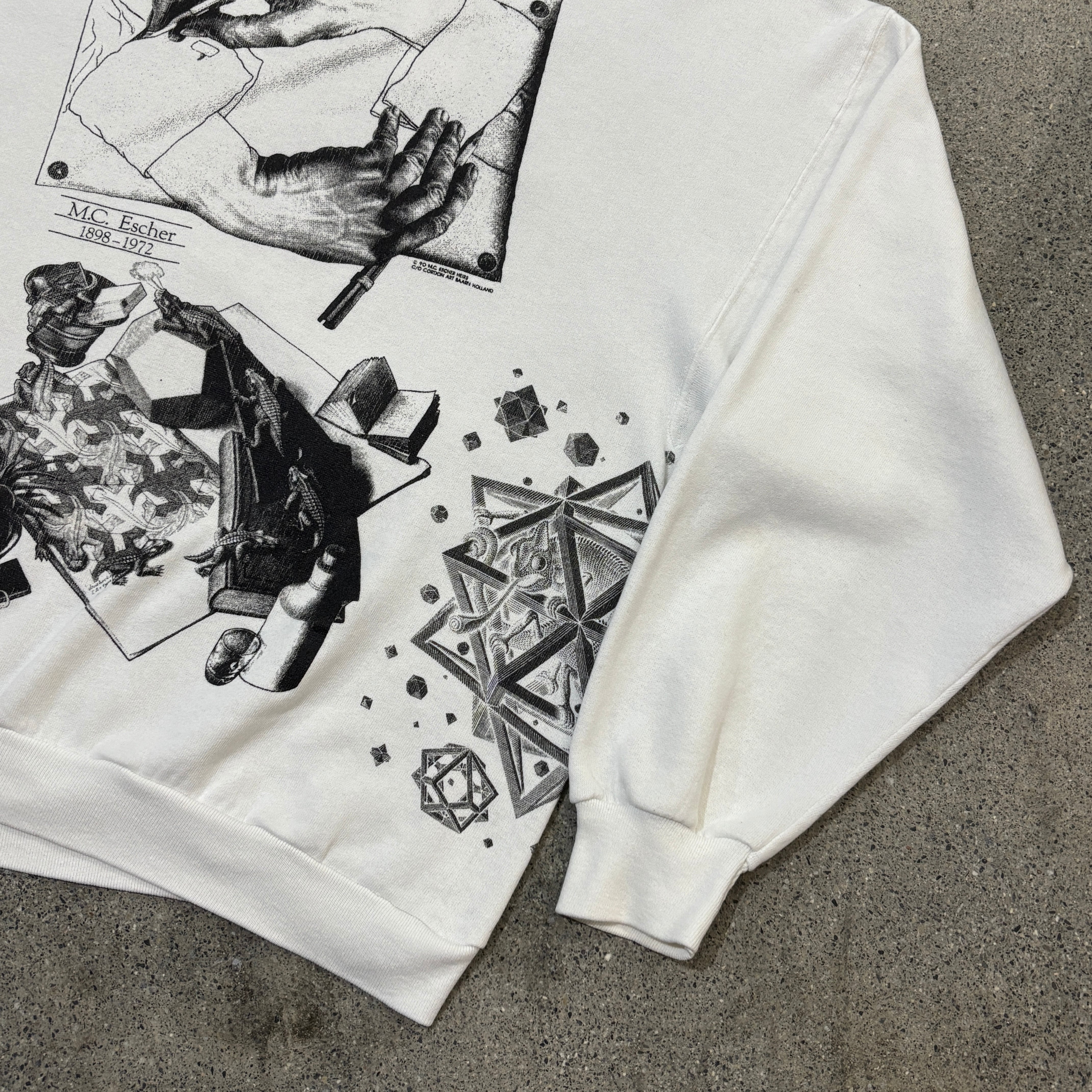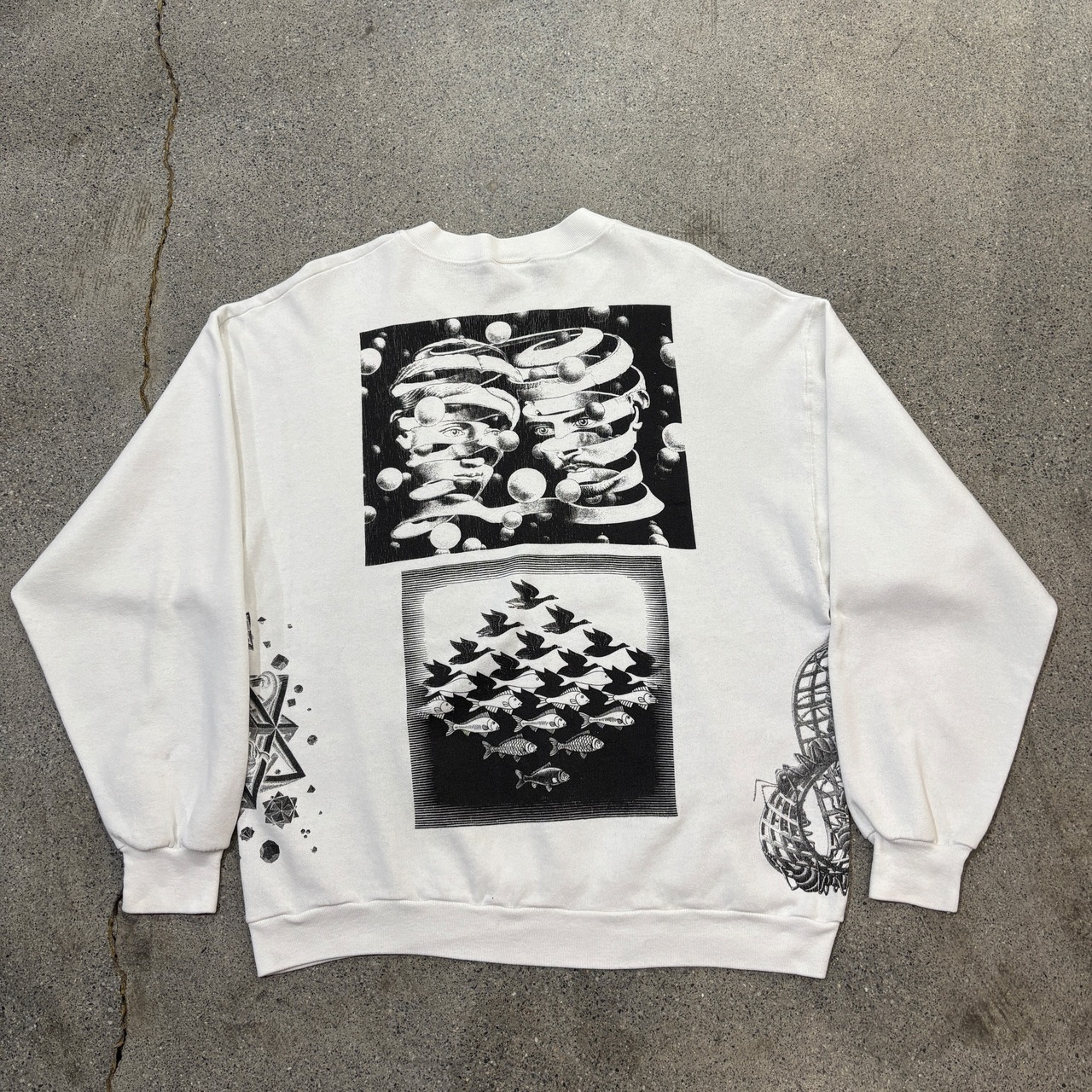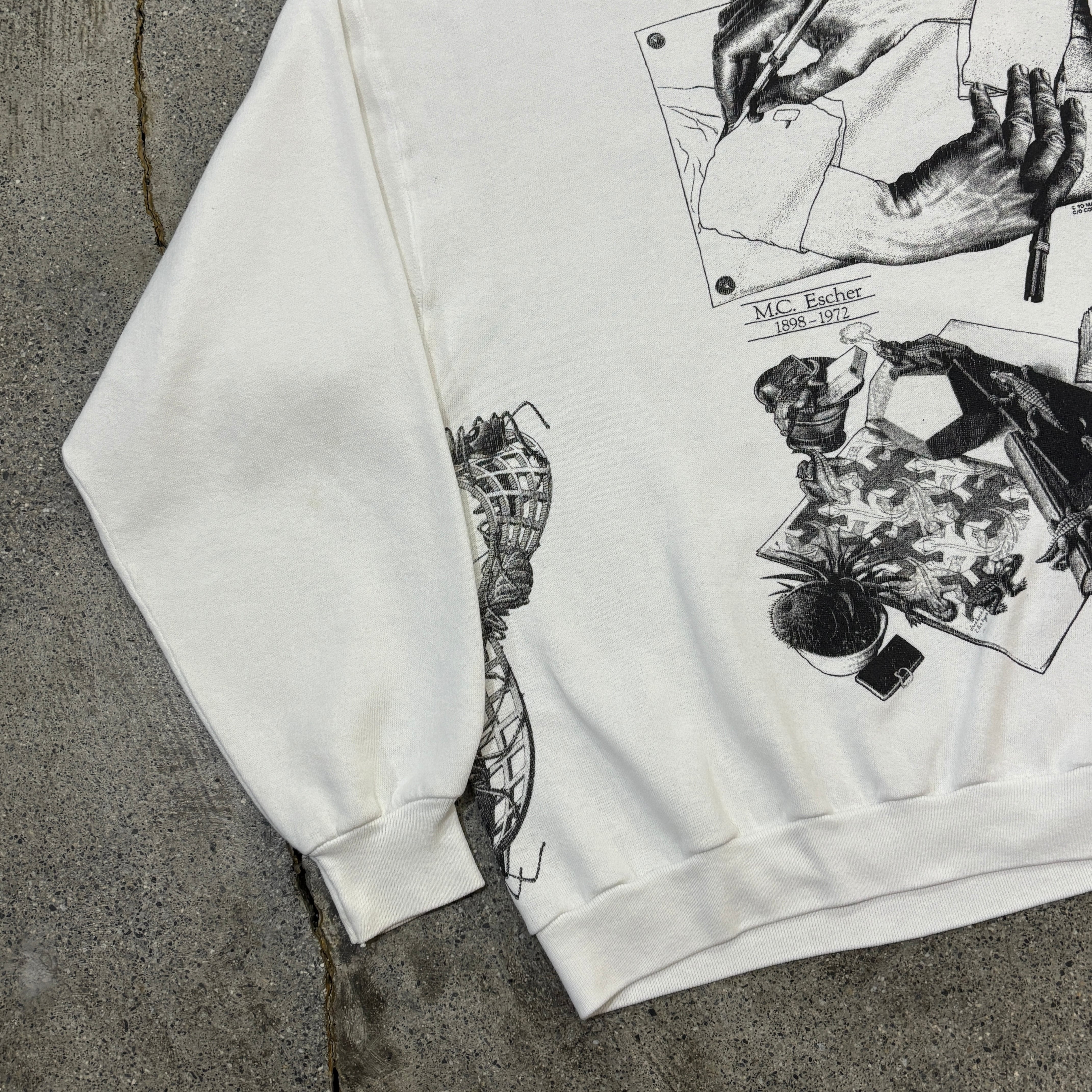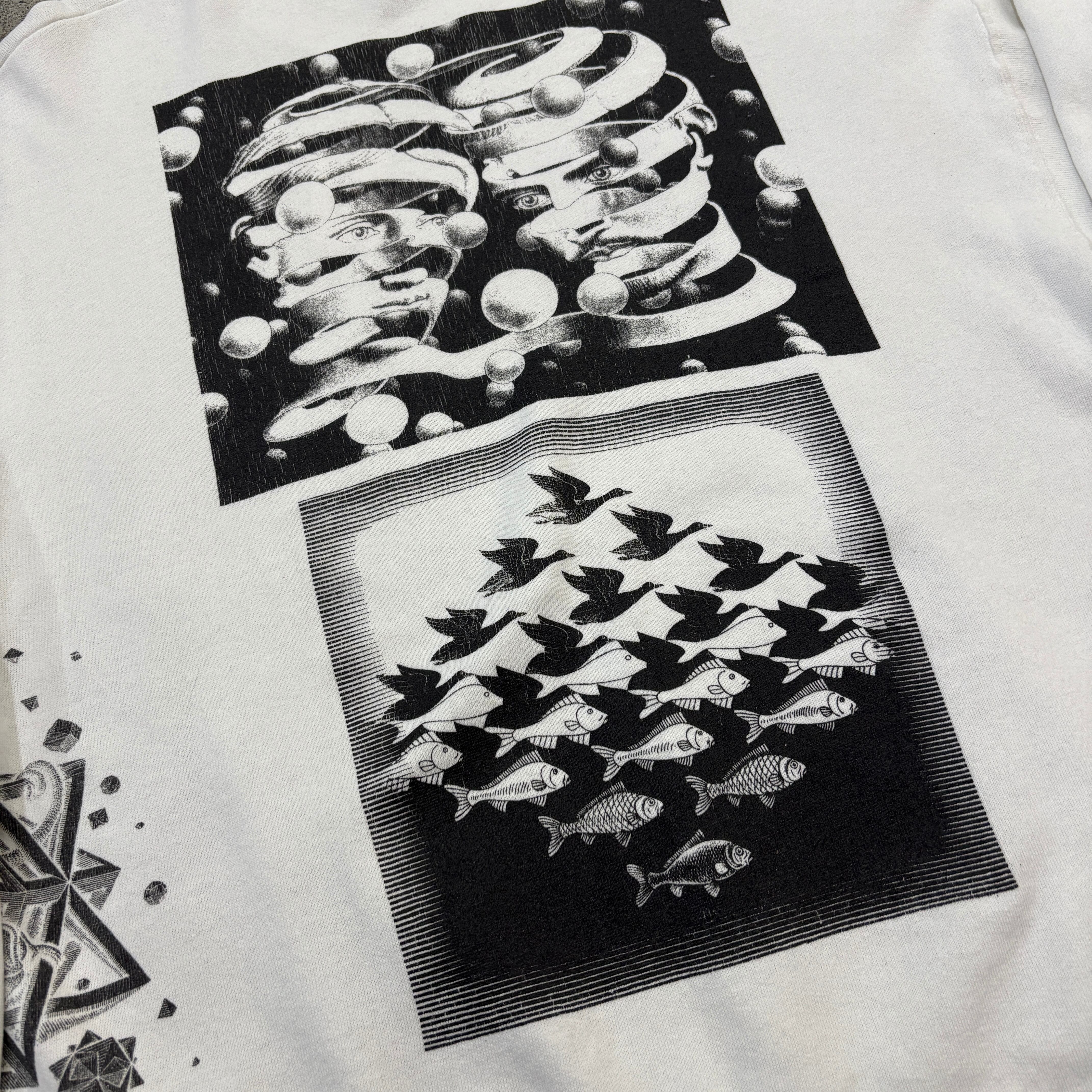 90年、エッシャーの総柄のスウェットです。