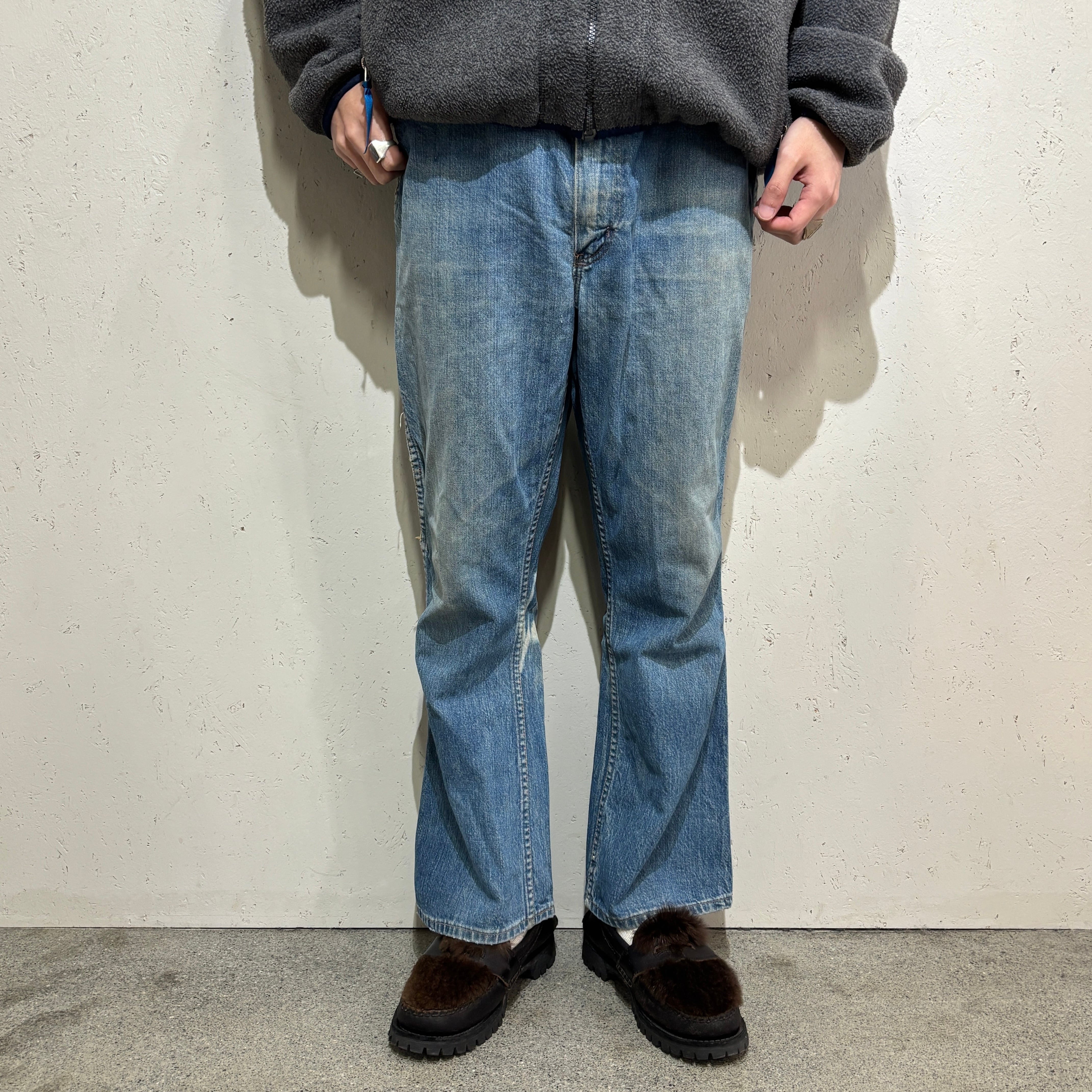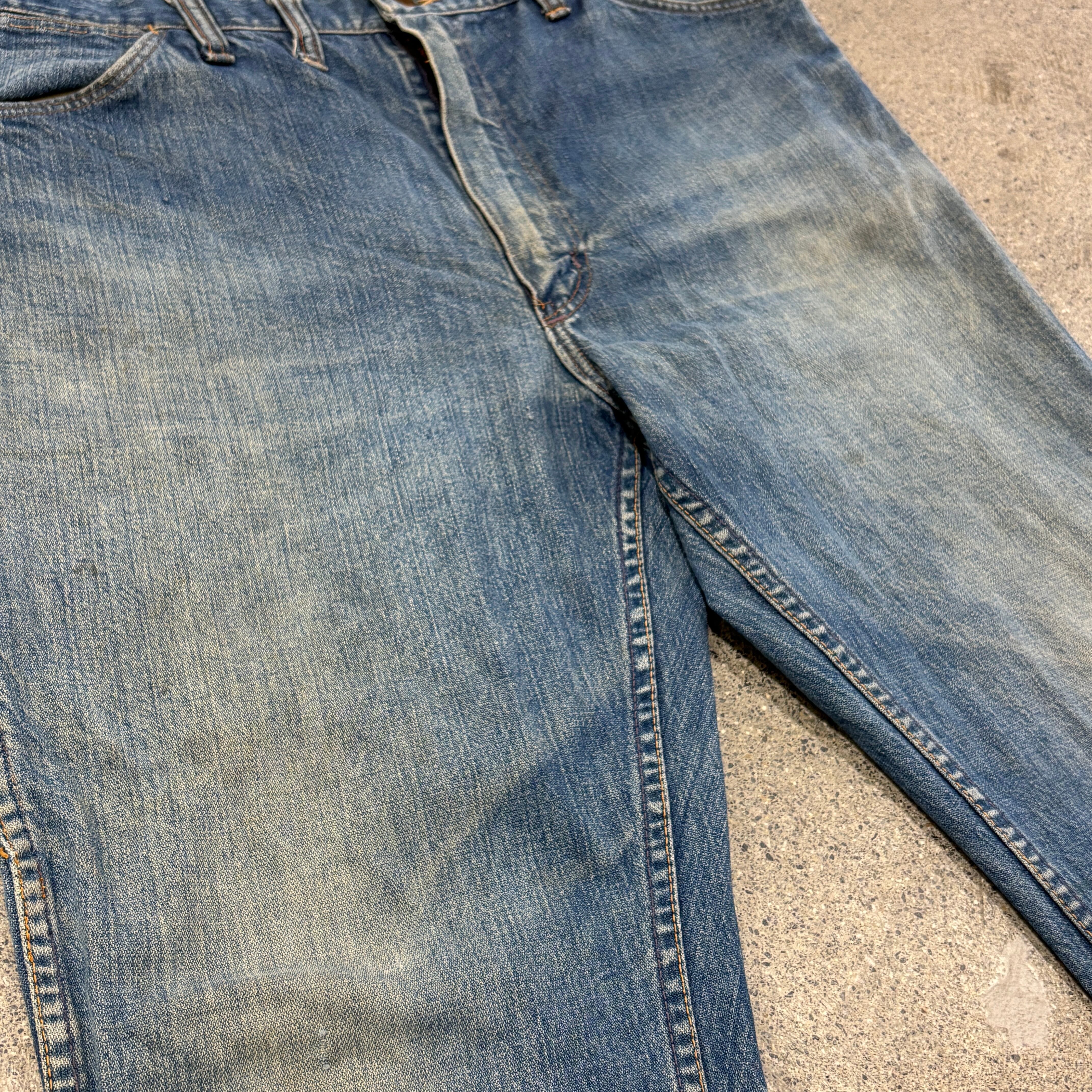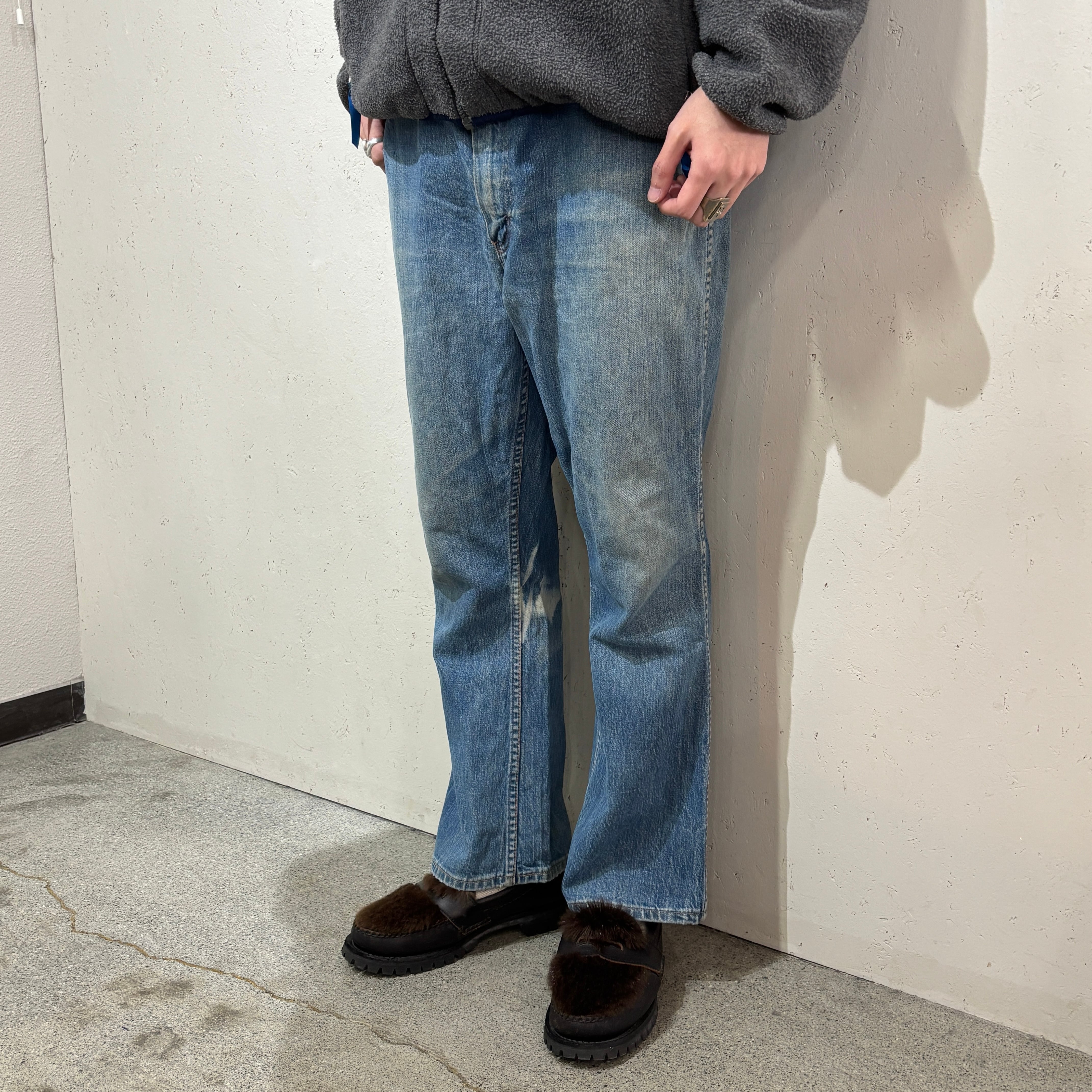 サイズ表記W38 L29と抜群のサイズ感で、フレアも程良く、少しシェイプされたワタリのおかげで非常に綺麗なシルエットで着用できる個体です。