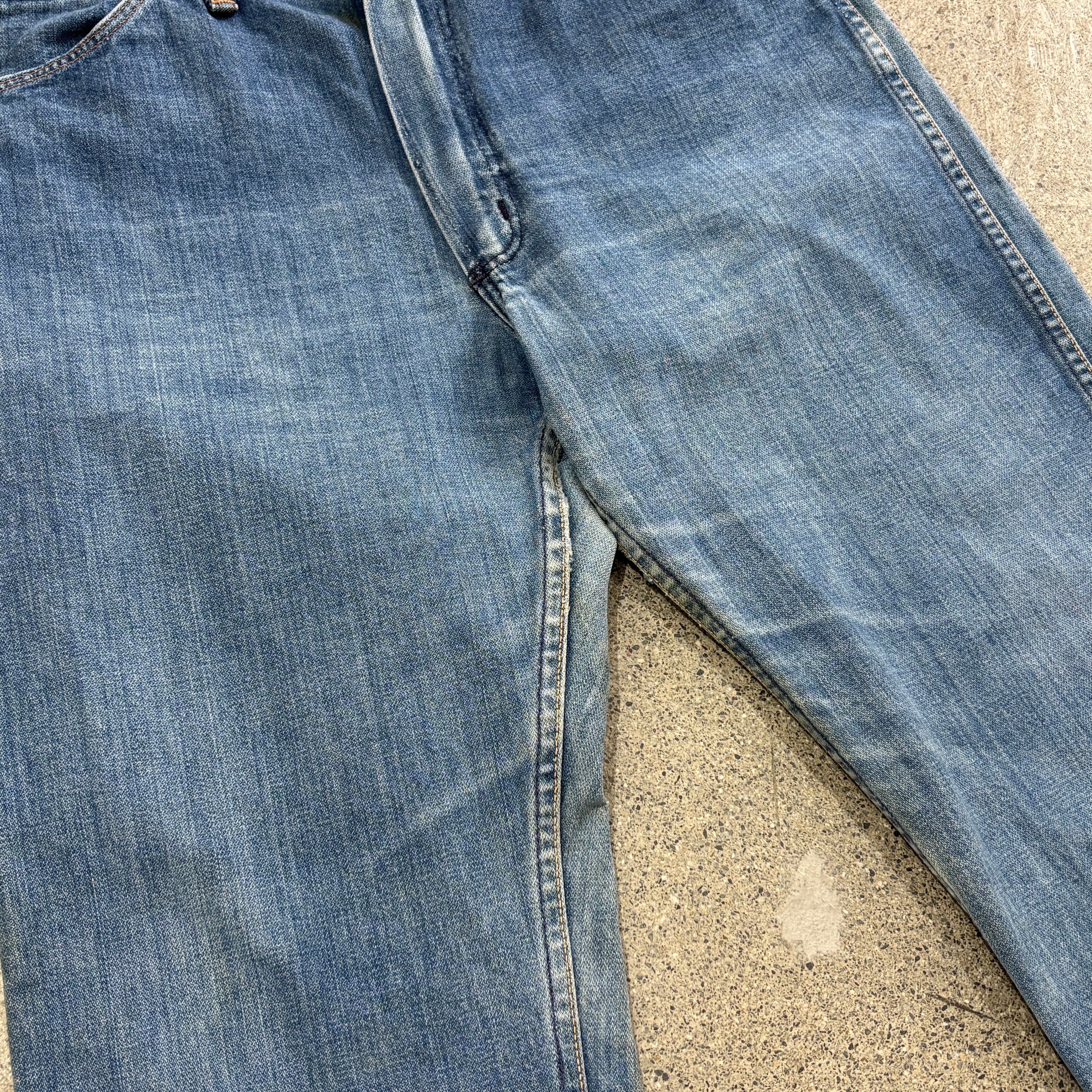 ブロークンデニム自体、色落ちが良い個体は少ない印象なのですが、こちらの個体は、色落ちの良い個体で、淡いインディゴのカラーリングですのでオールシーズン履けるのも特徴的です。