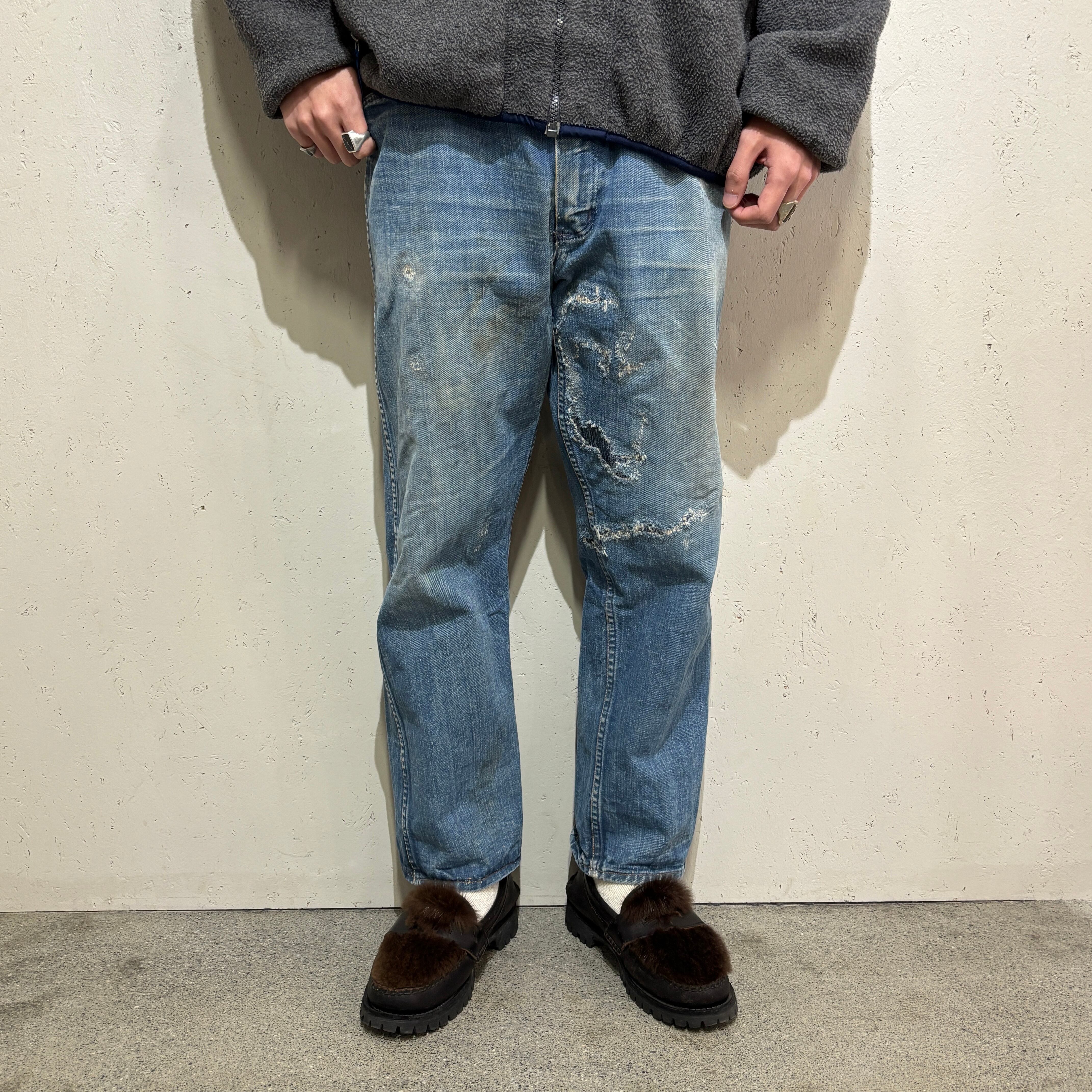 荒々しいリペアの雰囲気、ヒゲの出方や縦落ちの雰囲気は抜群です。