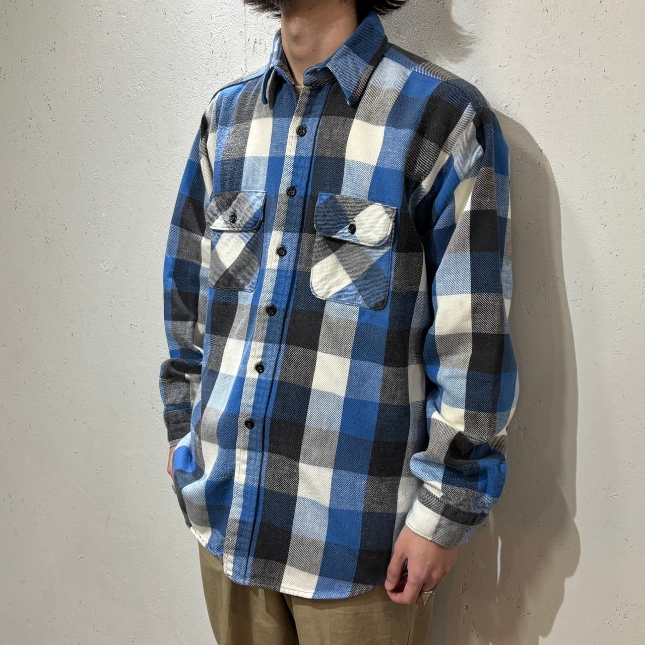 【Five Brother】70~80s Heavy Flannel Shirt L-TALL "Block Check"