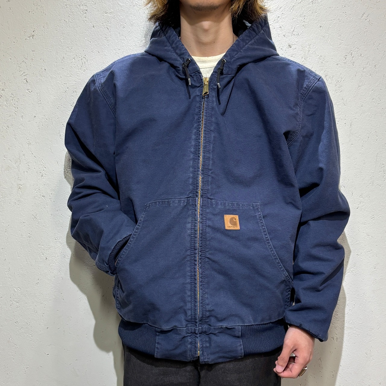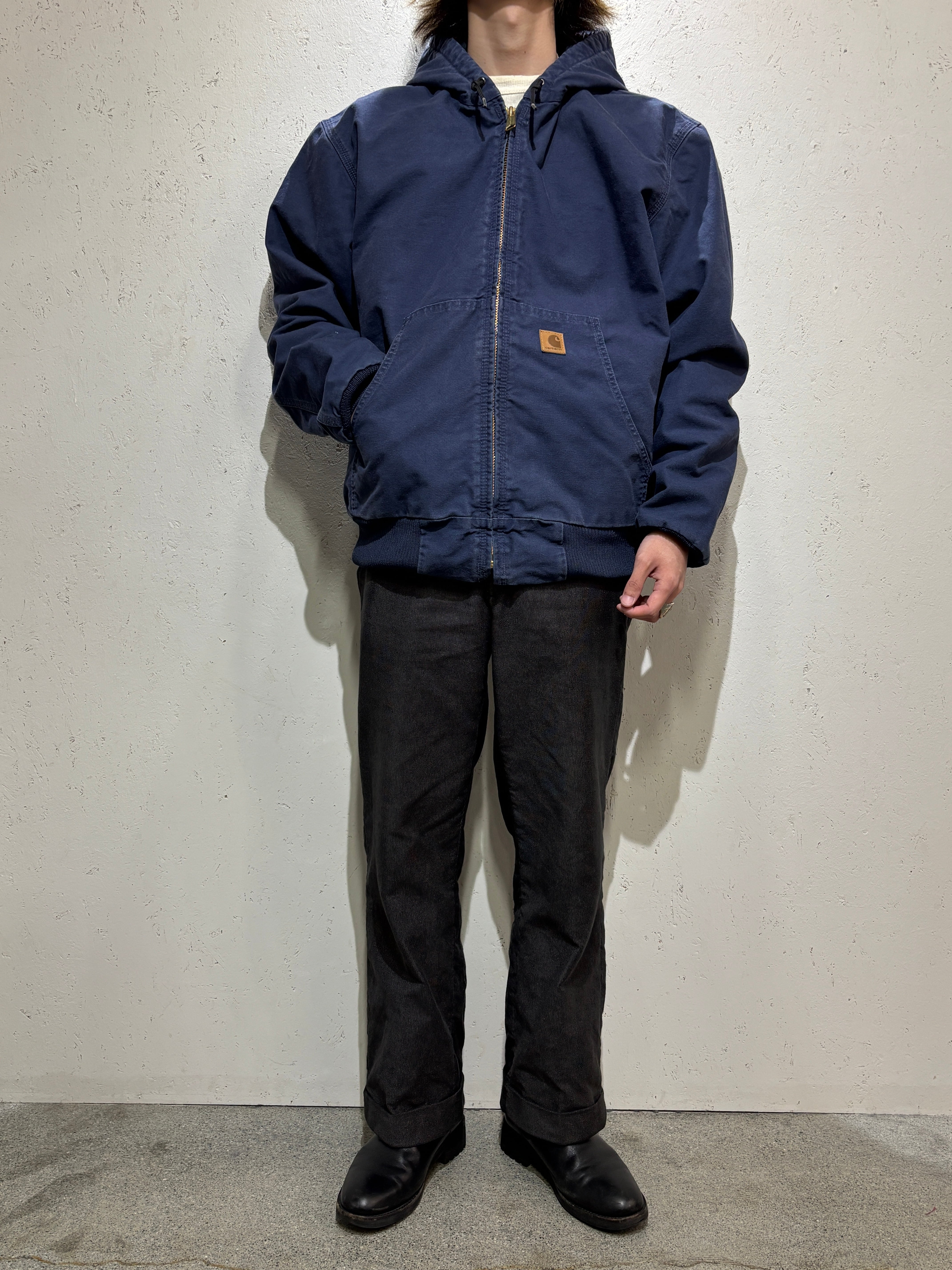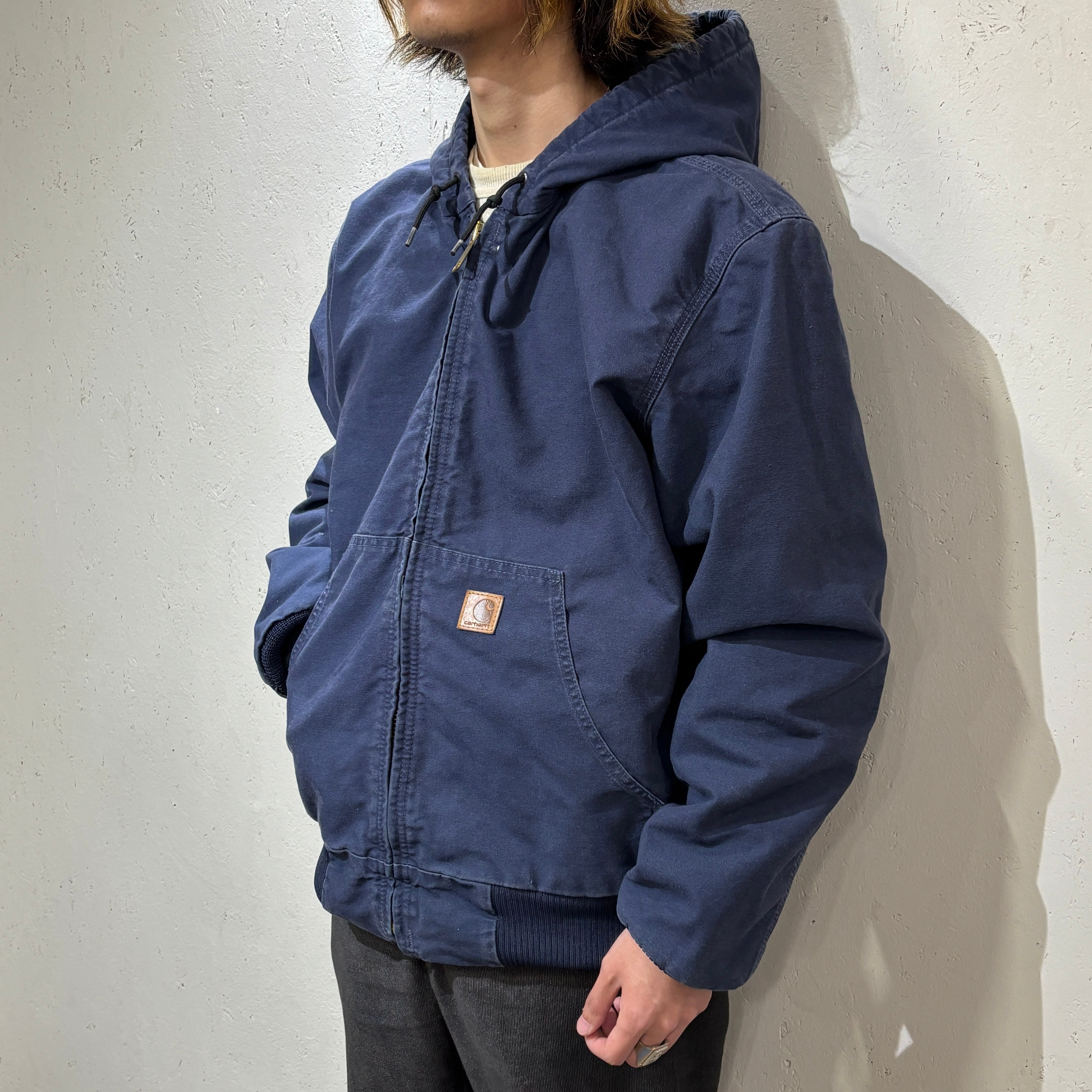 アクティブジャケットはカーハートの定番アイテムではありますが、こちらのネイビーカラー