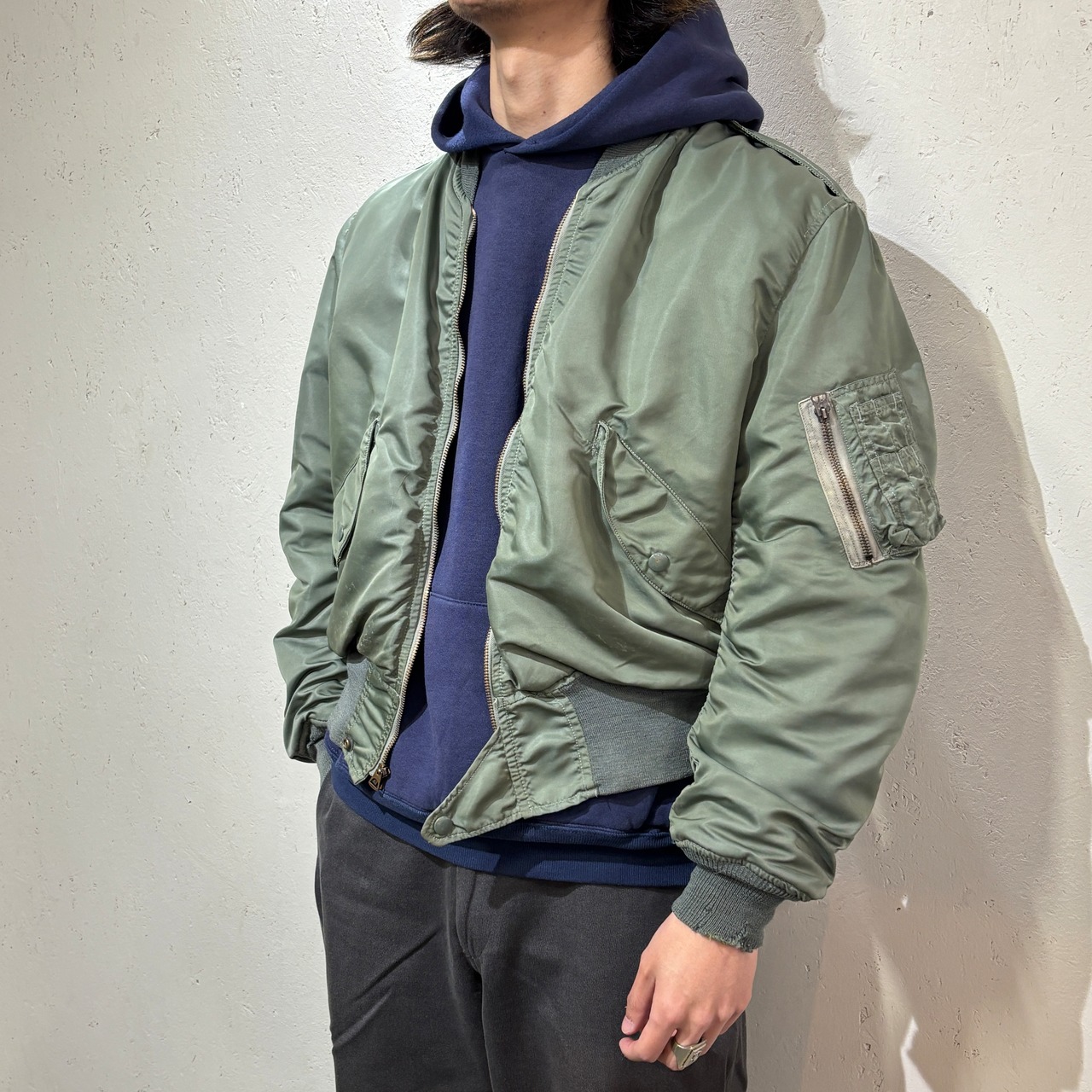 丈感はヴィンテージのフライトジャケットらしい短丈で、短丈がお好みの方には良い一着ではないでしょうか。