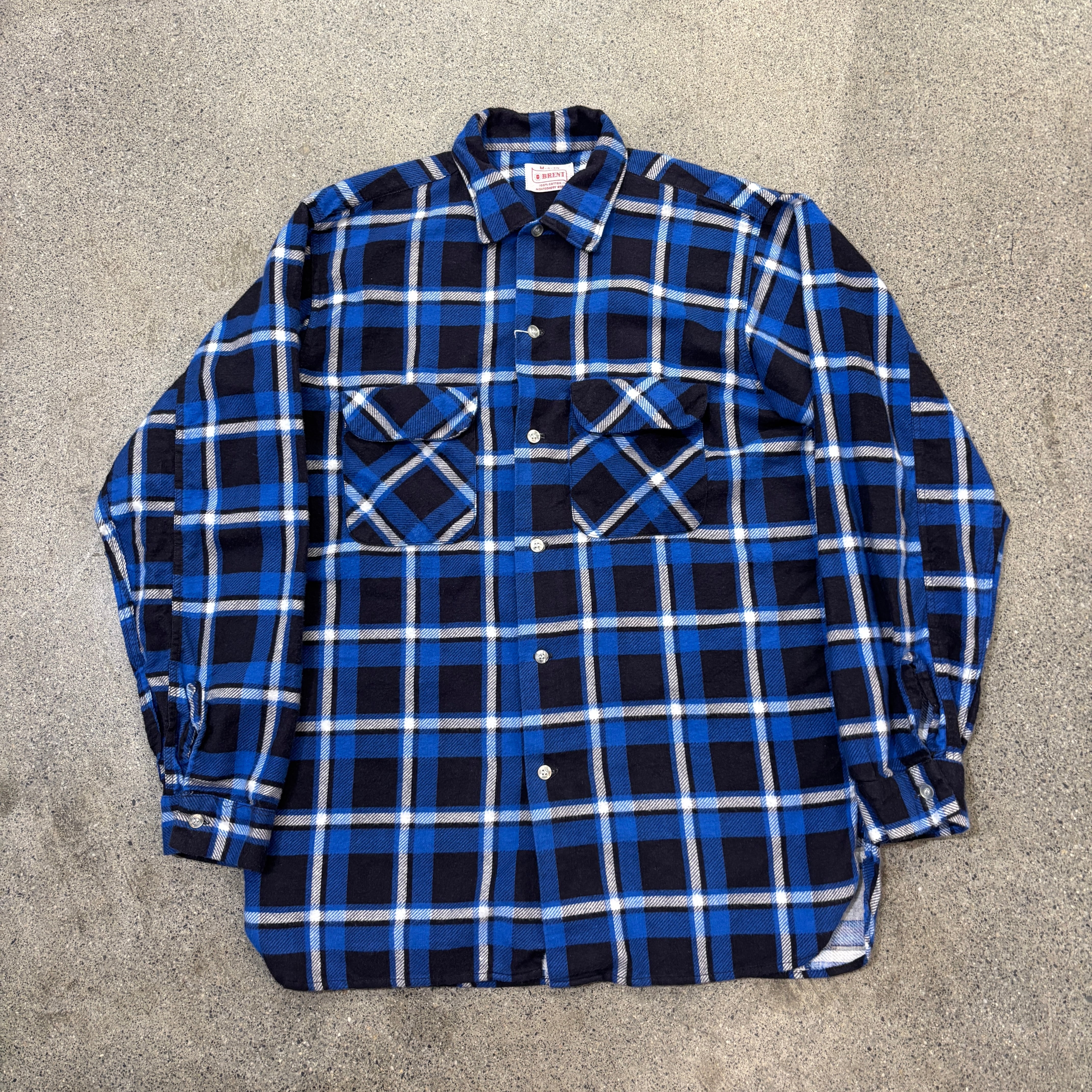 【Brent】~60s Dead Stock Print Flannel Shirt M "マチ付き"