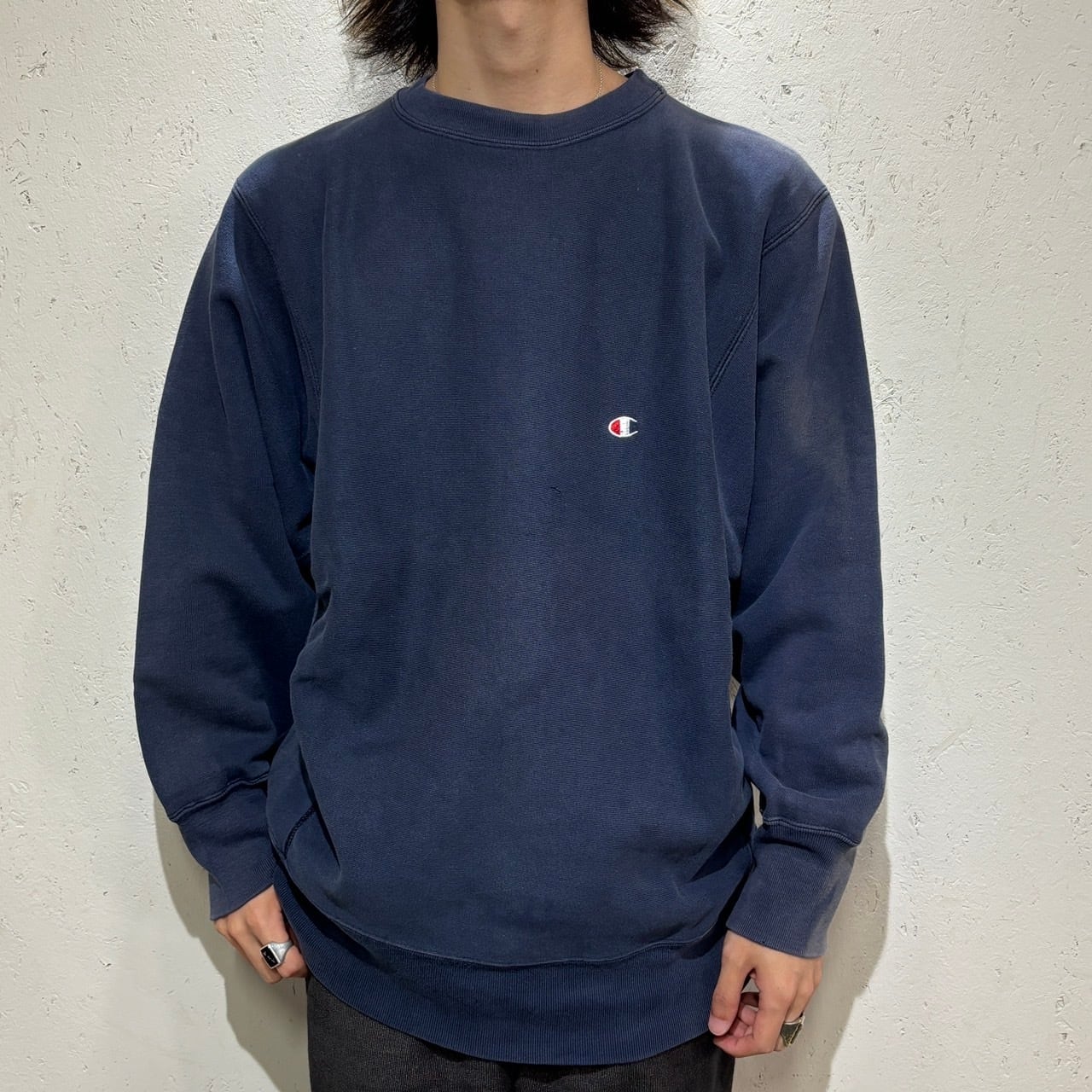 【Champion】80s Reverse Weave Faded Navy X-Large "C Logo"