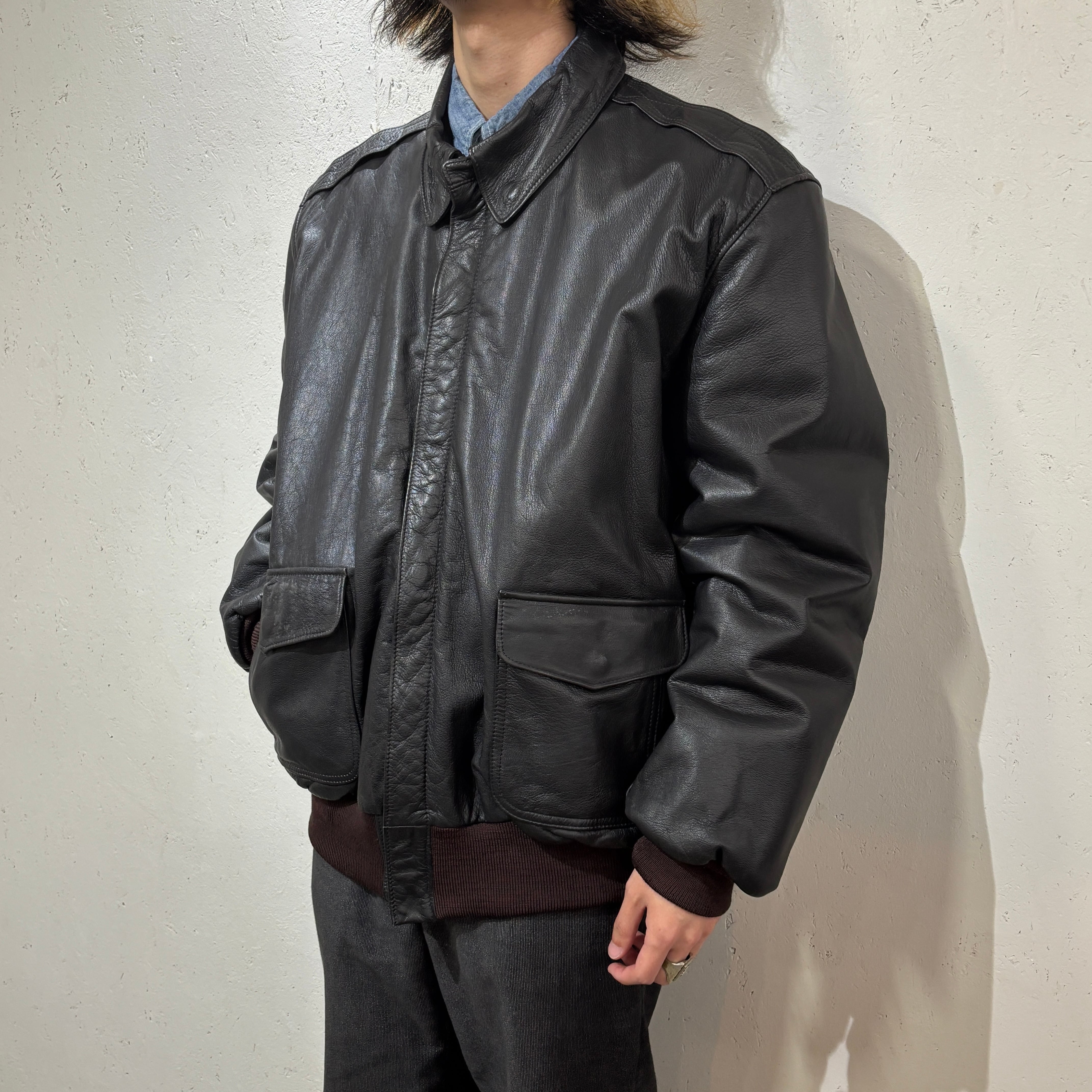 【L.L.Bean】80s A-2 Leather Jacket Size46 Long "Dark Brown Color"