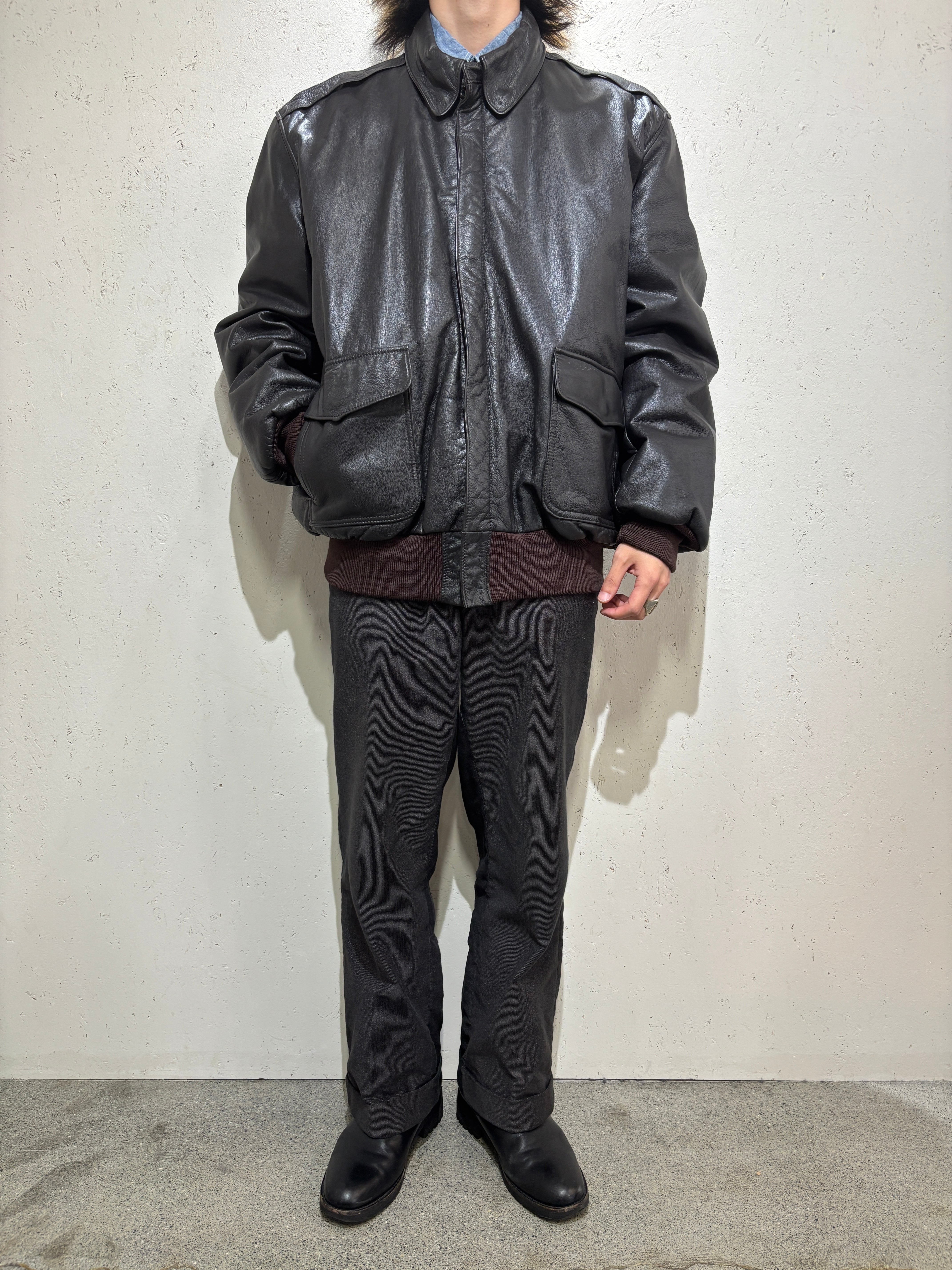 A-2レザージャケットといえば第二次世界大戦までUnited States Army Air Corps(アメリカ陸軍航空隊)で使用されていたフライトジャケットになりまして、それをL.L.Beanが80年代に復刻した個体になります。