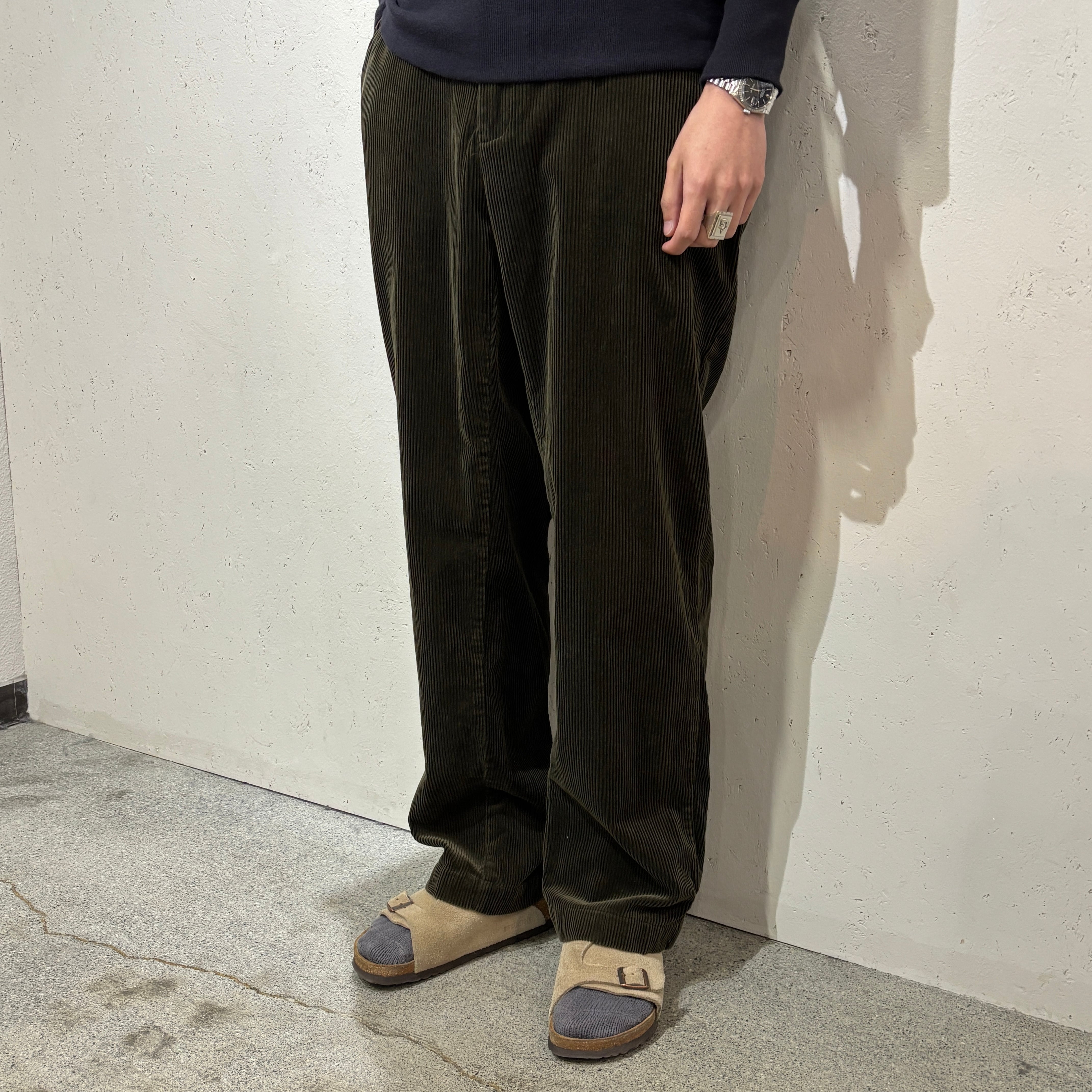 ラルフのコーデュロイパンツといえば、腰回りがゆったりしており裾幅も太めのディテールになります。