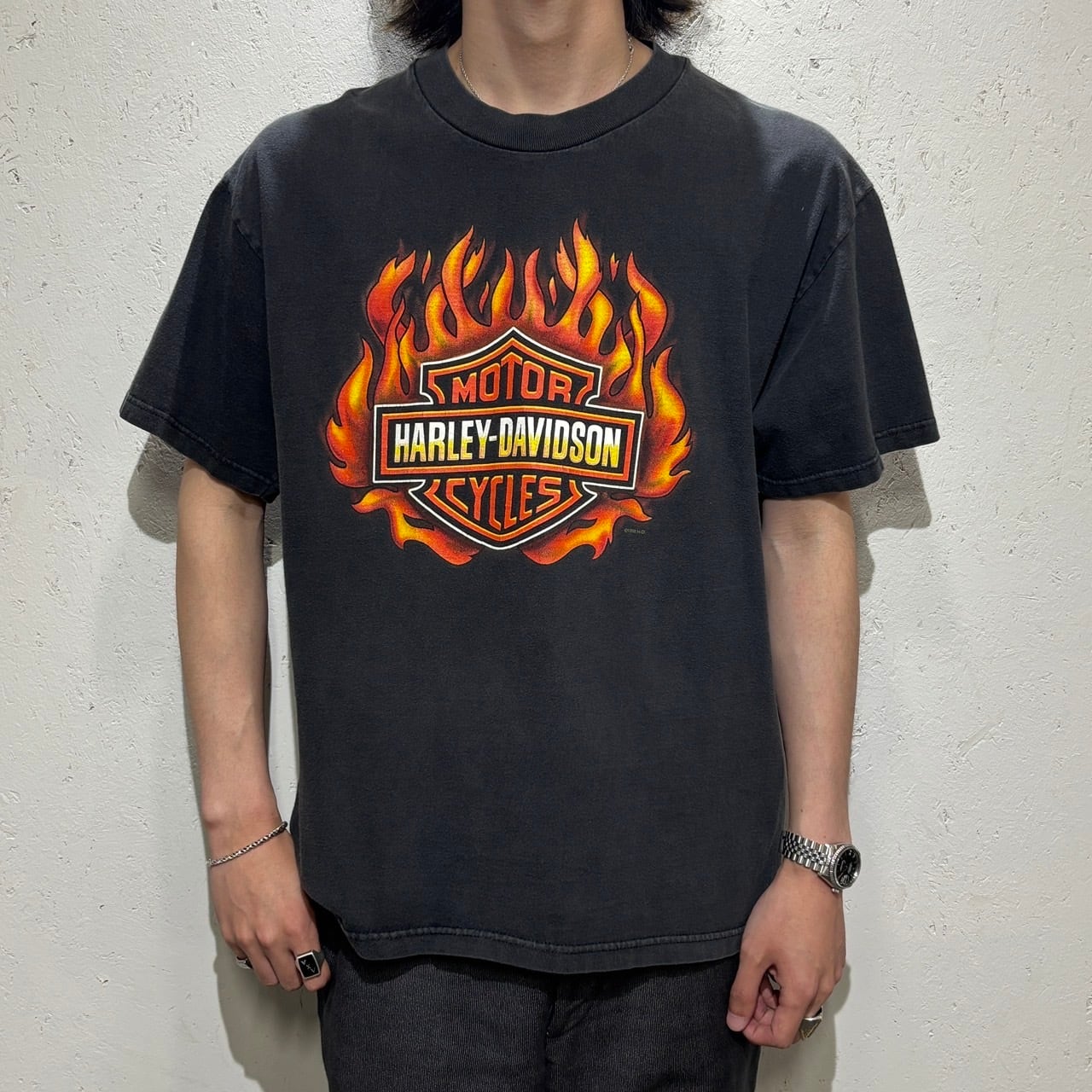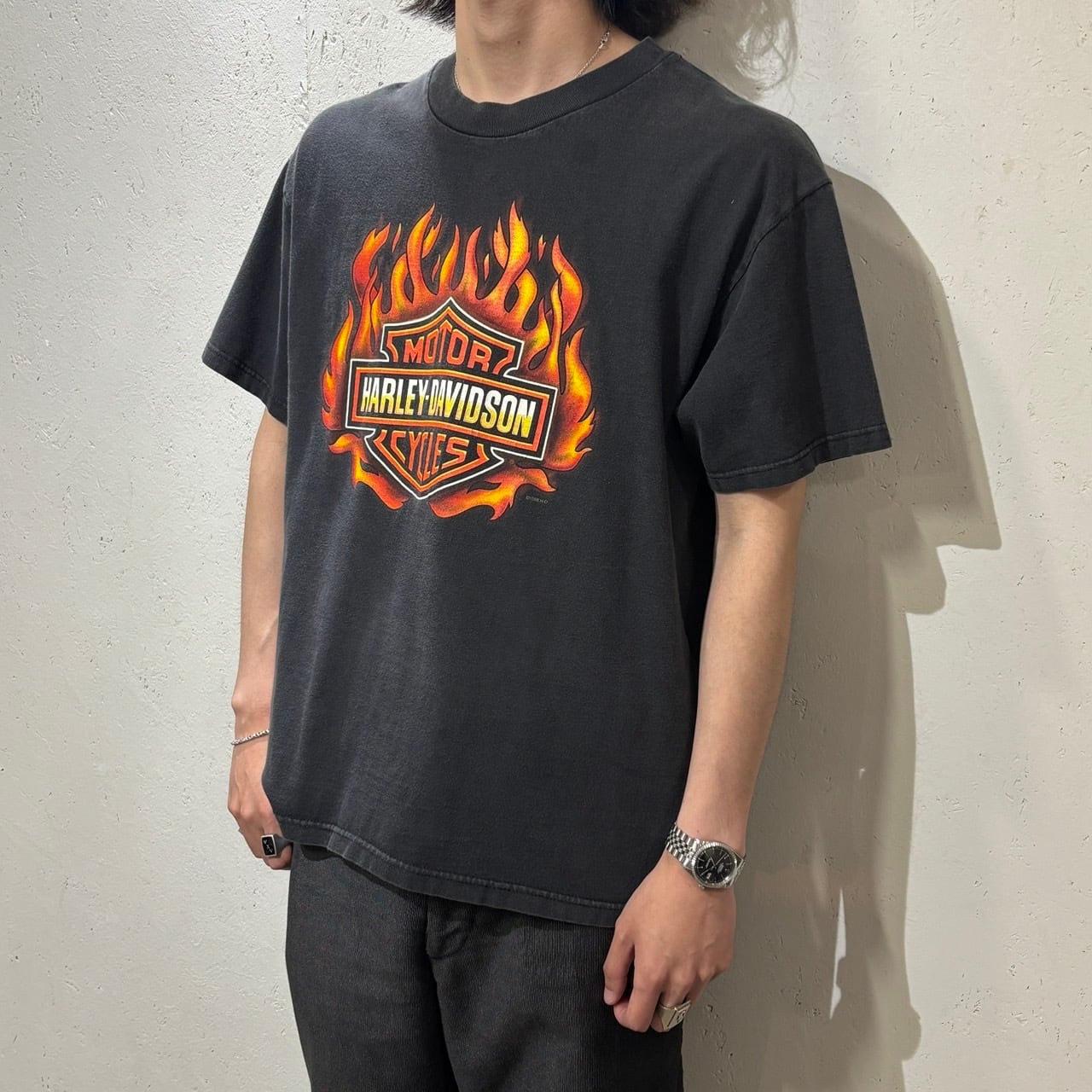 【Harley Davidson】90s〜 Printed T-Shirt L "Flames Pattern"