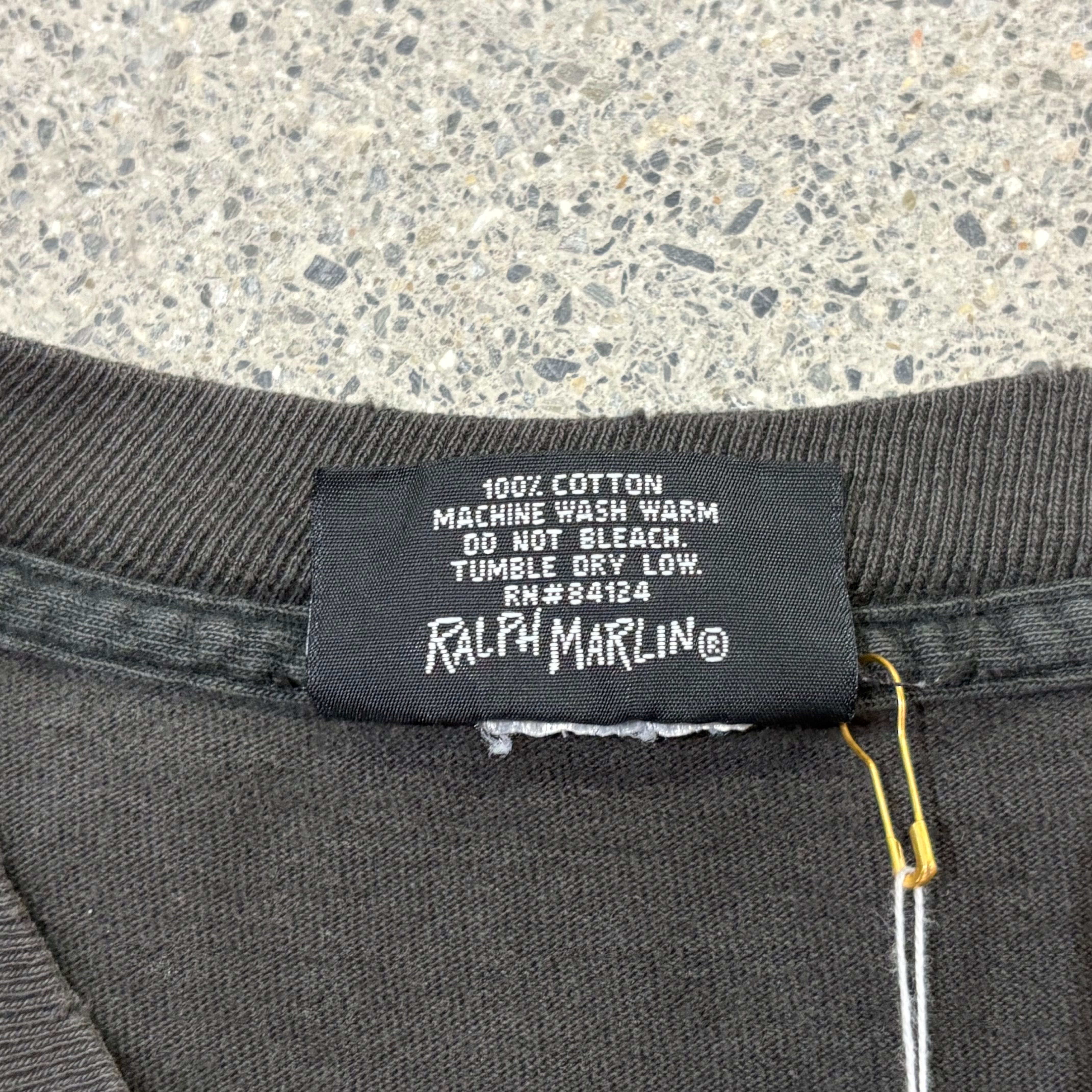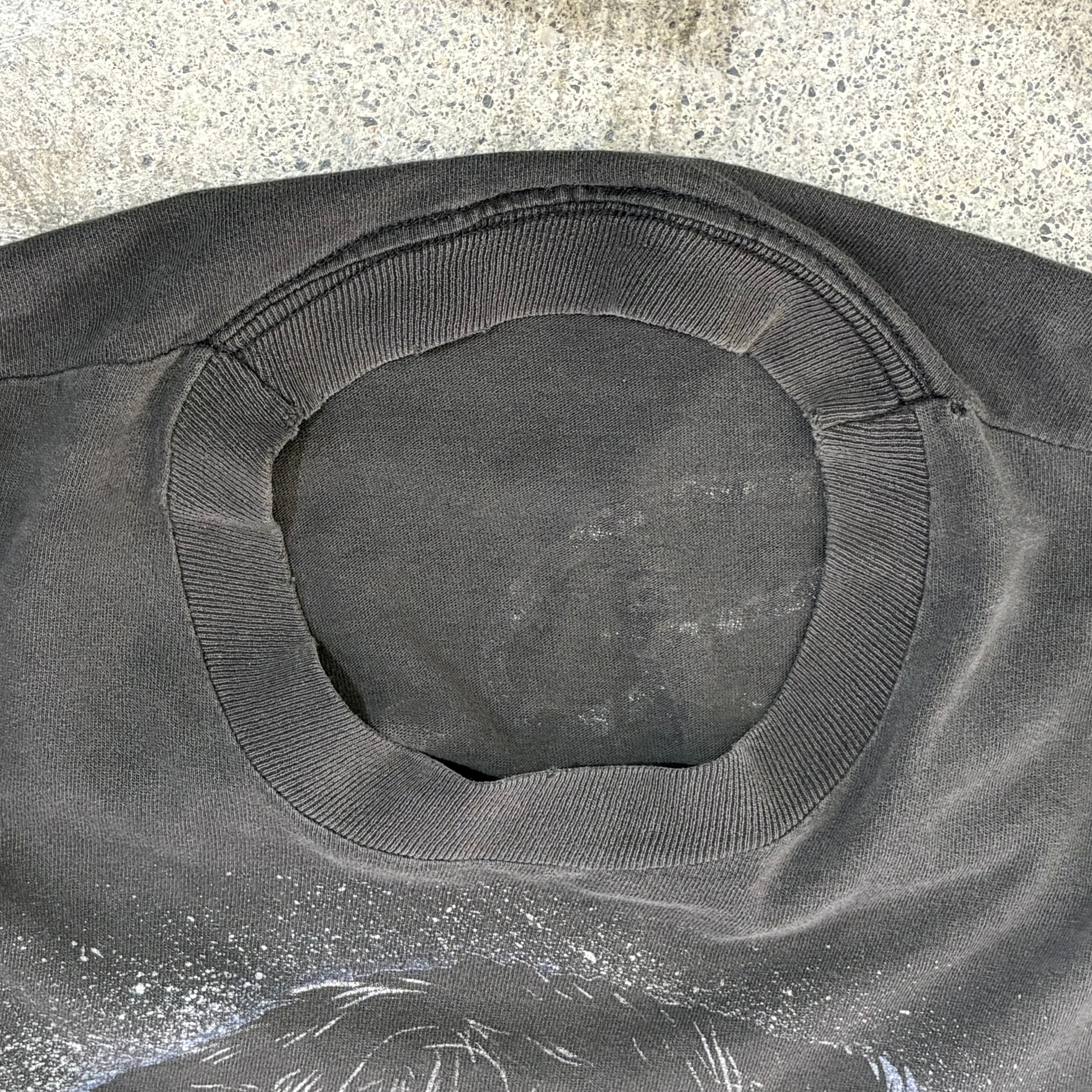 こちらは、フロントのジェームスディーンのプリントに、左袖にロッキーマウンテンのスカルモチーフのプリントが施された珍しい組み合わせの1点です。